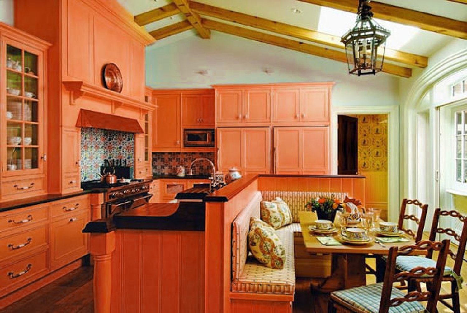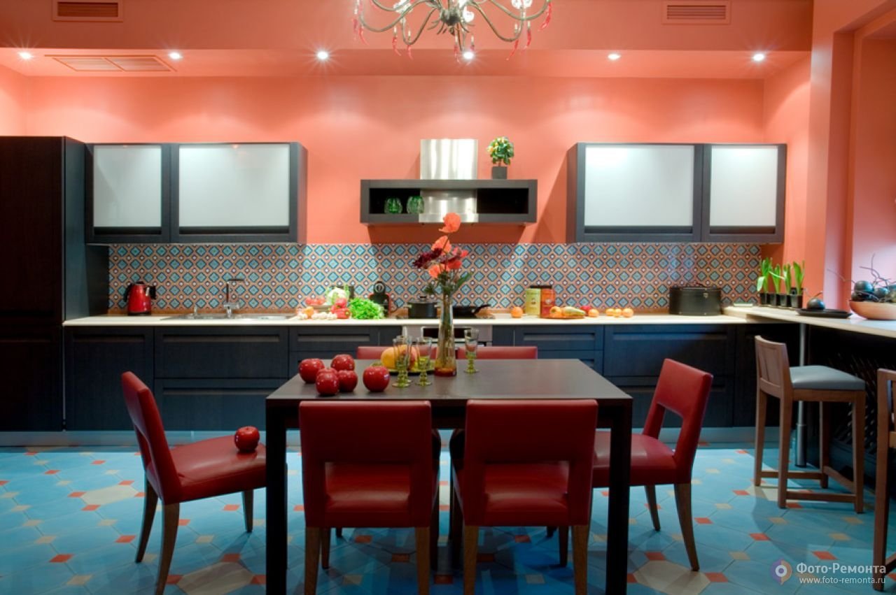 Коралловый цвет в интерьере кухни