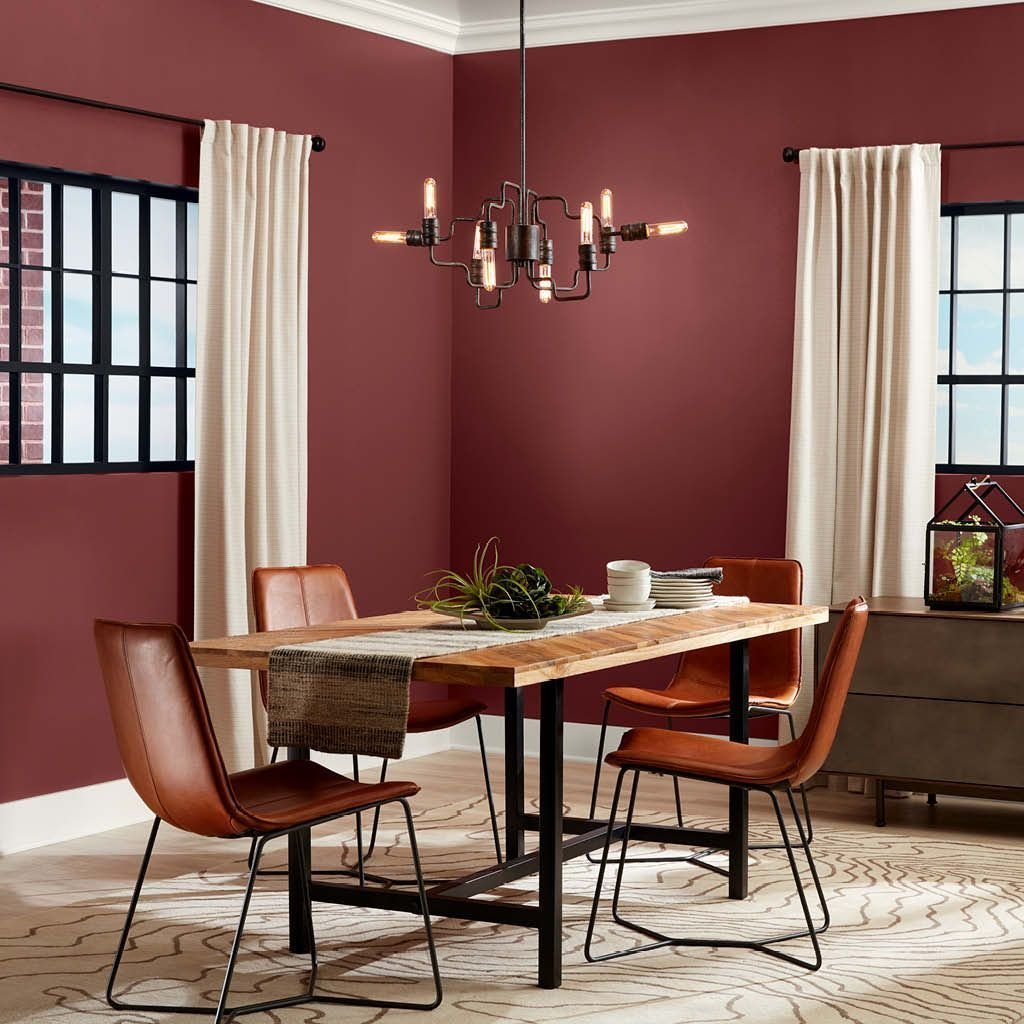 Красный стол стулья шторы с какими обоями гармонично смотрятся
