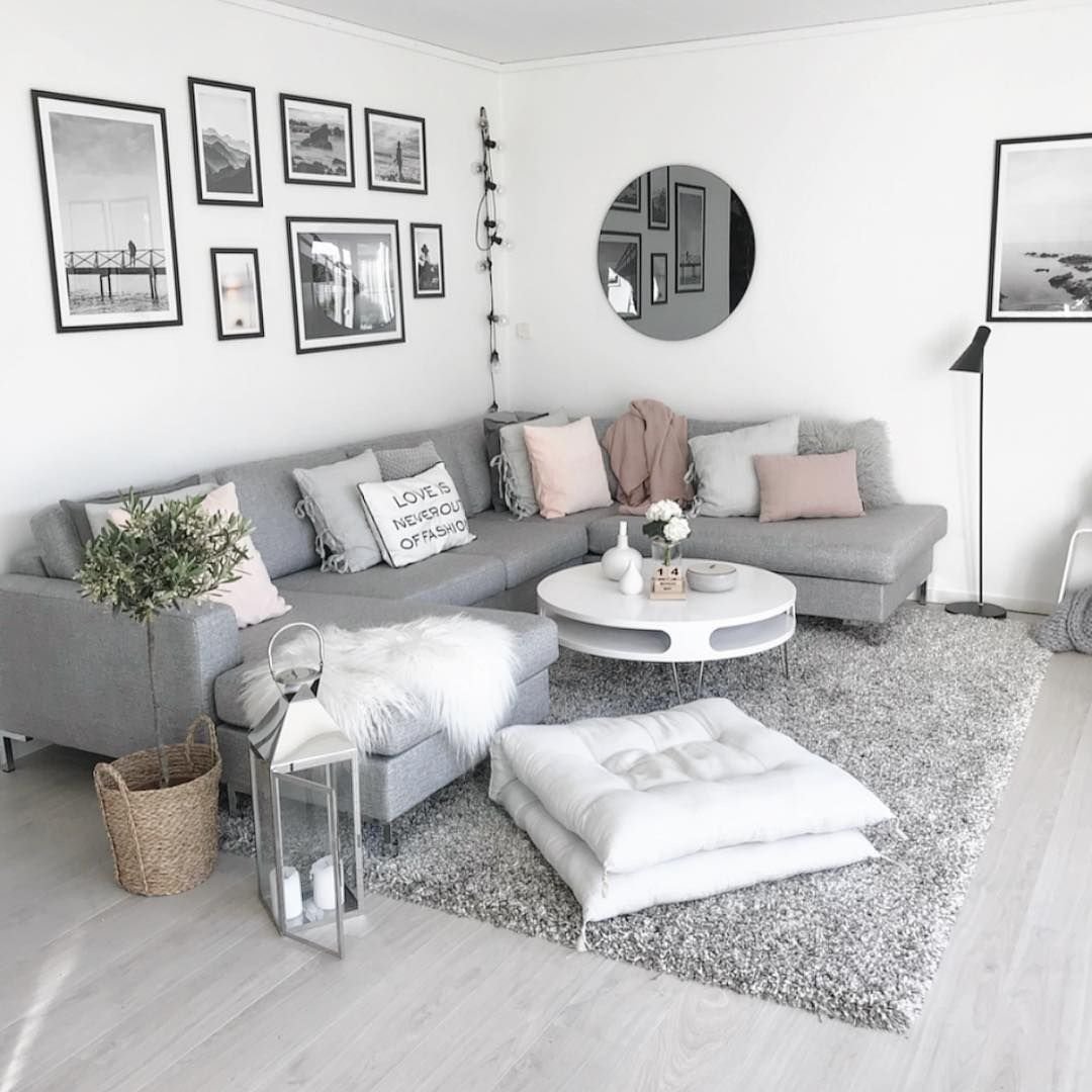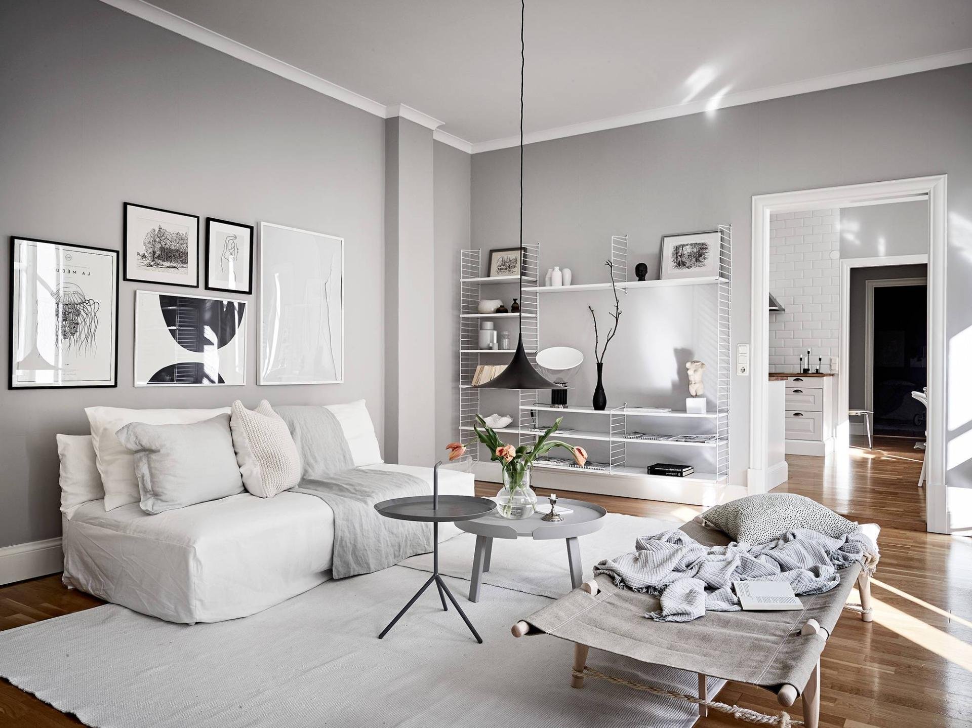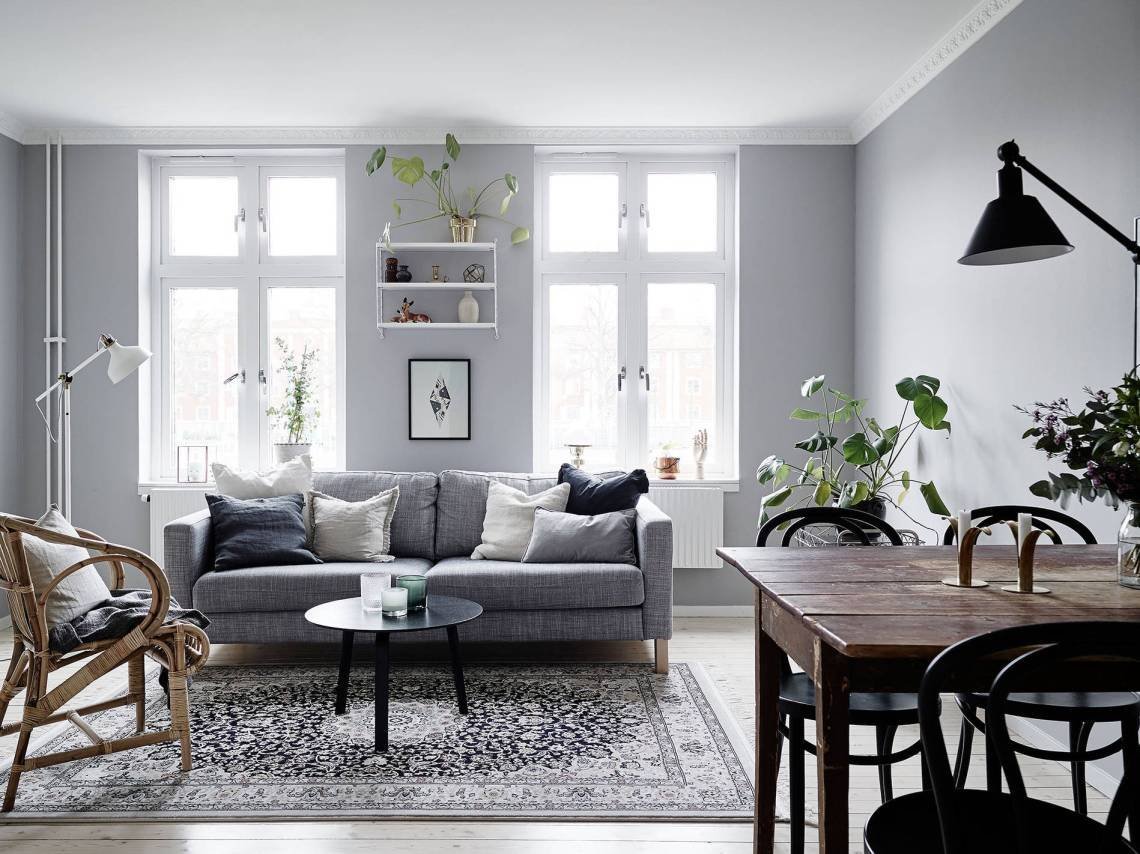 Серая гостиная в скандинавском стиле