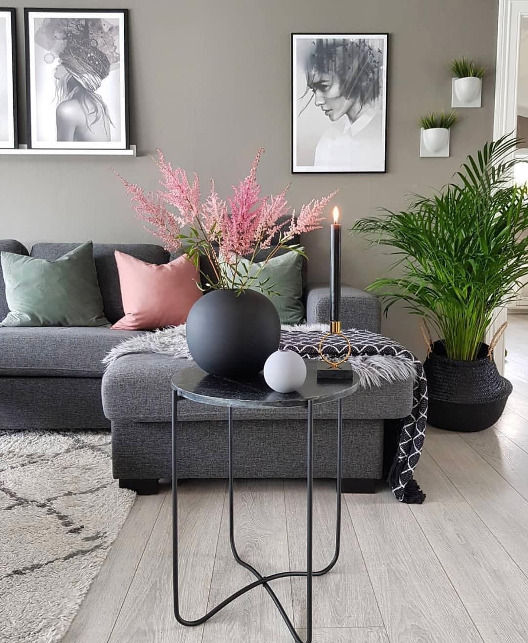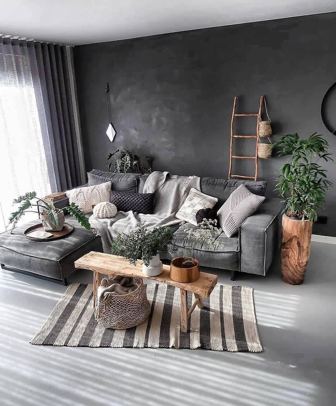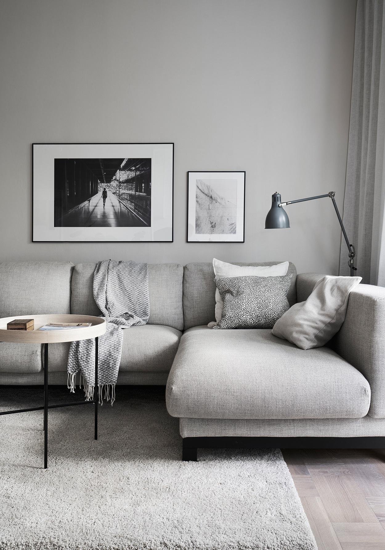 Серая гостиная в скандинавском стиле