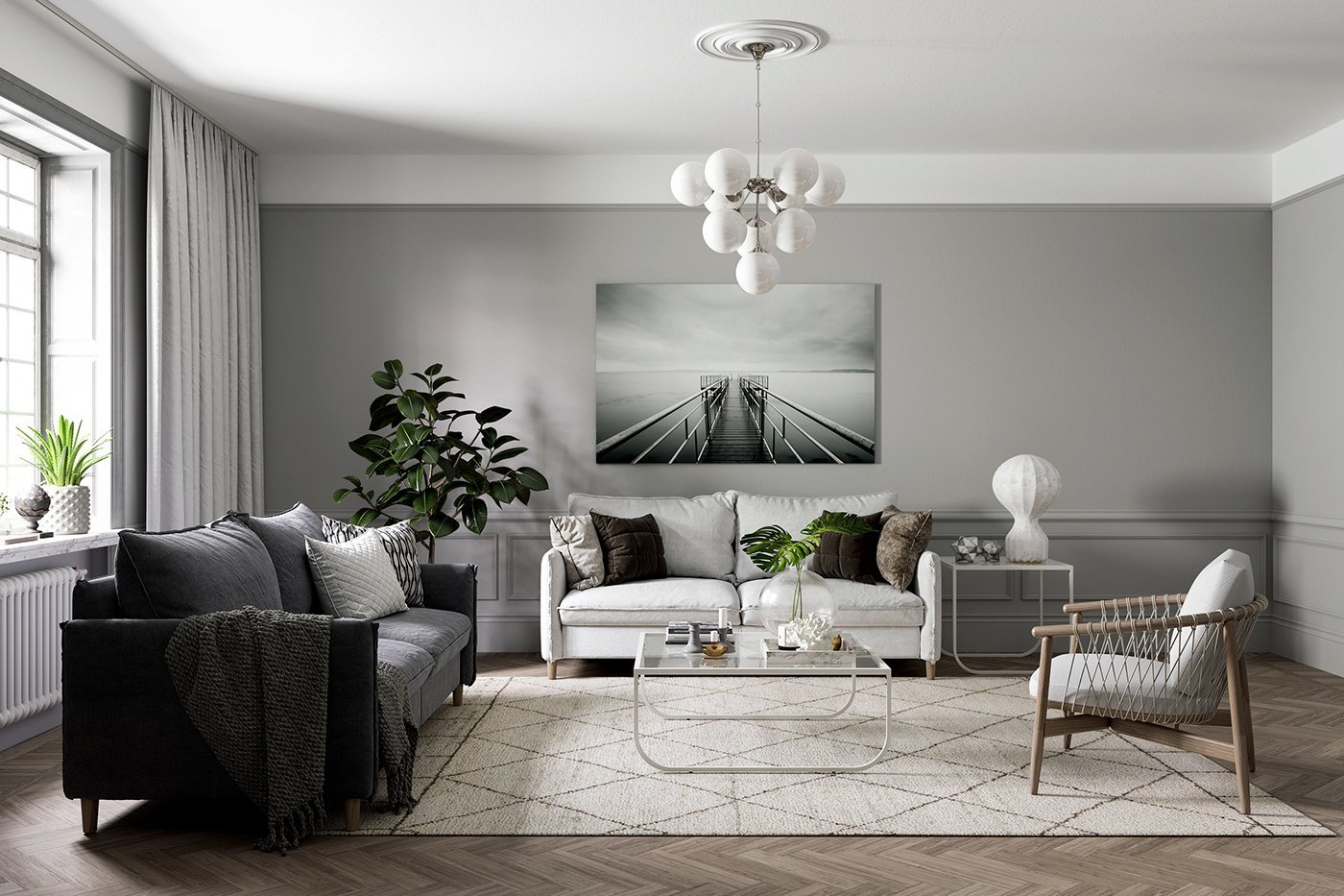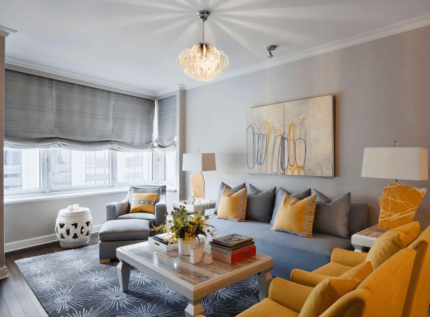 Люстра интерьер гостиной в серых тонах