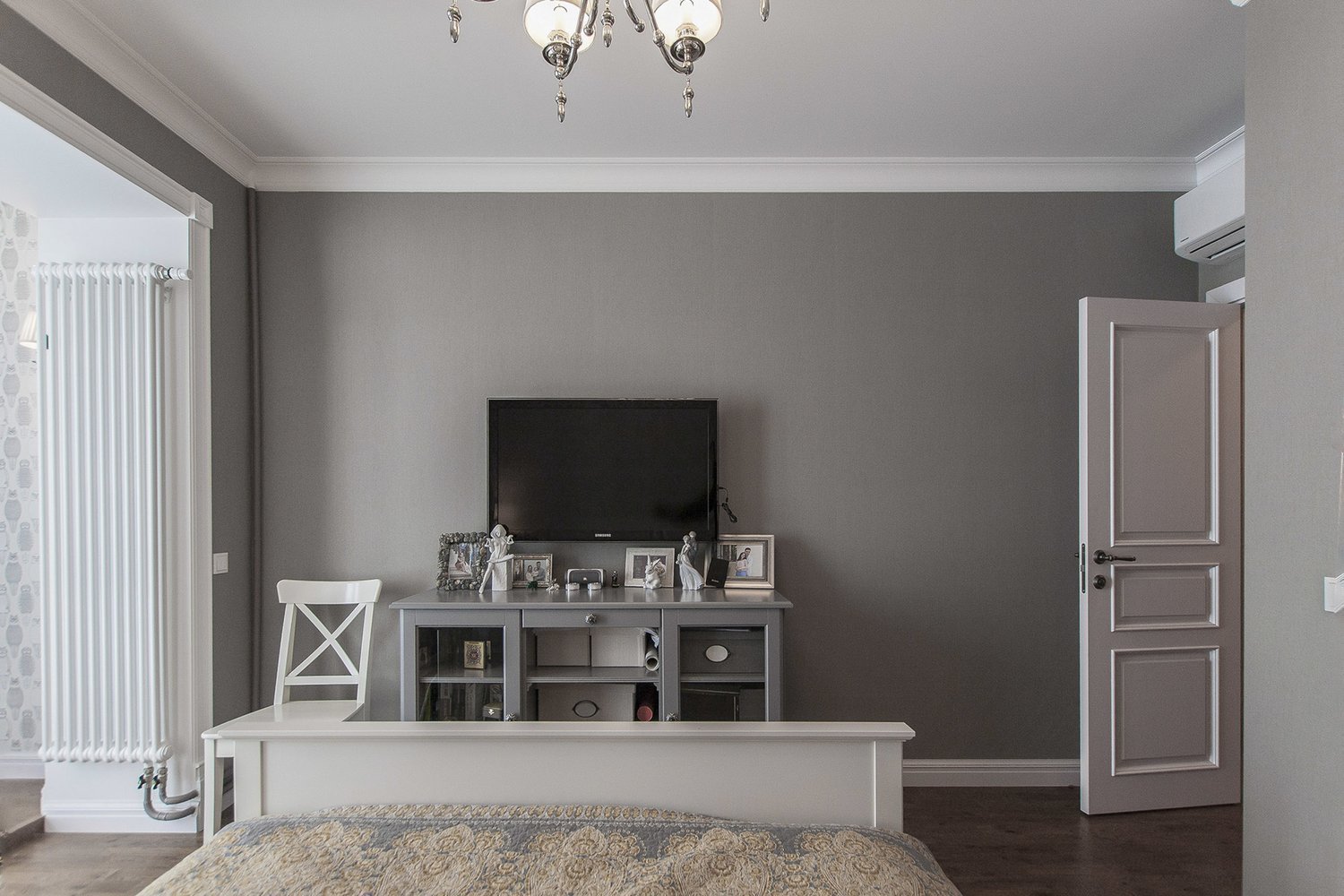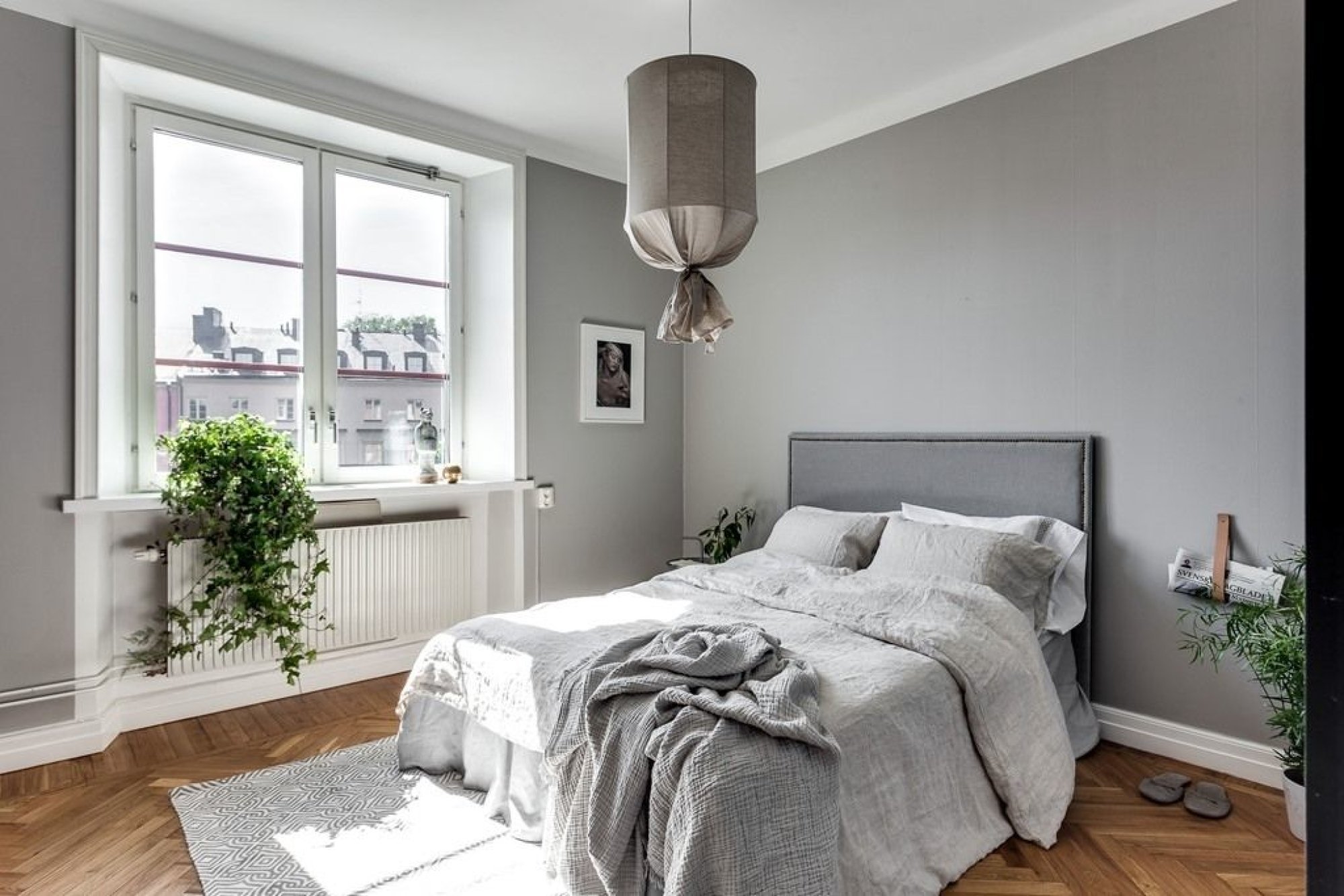 Серая краска в спальне