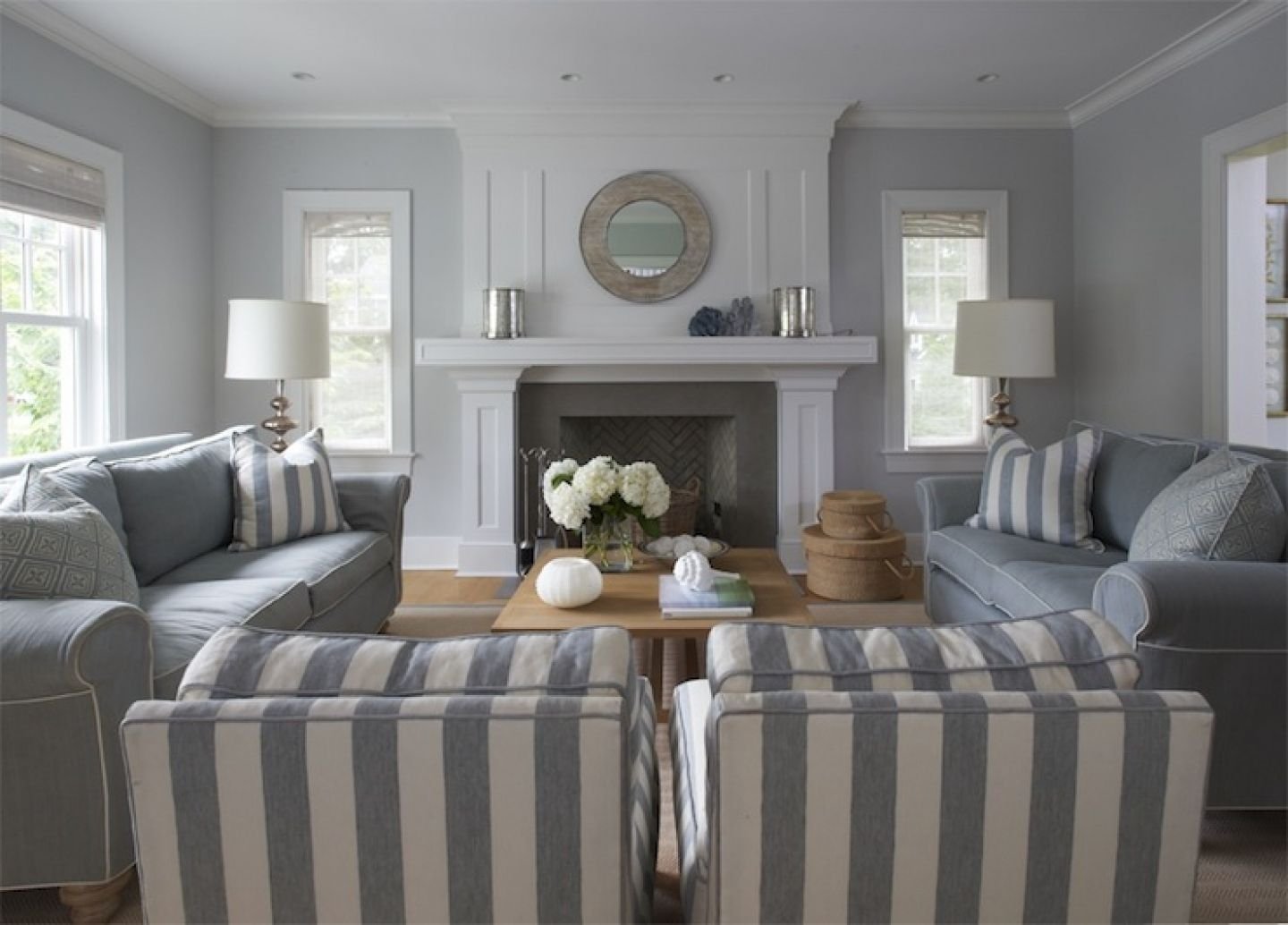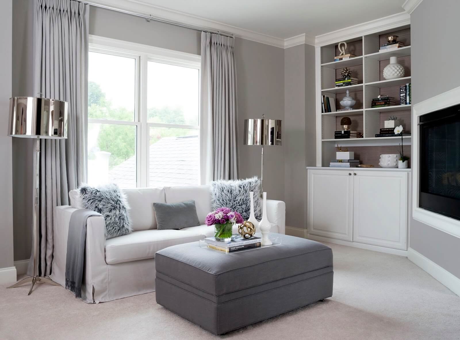 Гостиная с серыми стенами