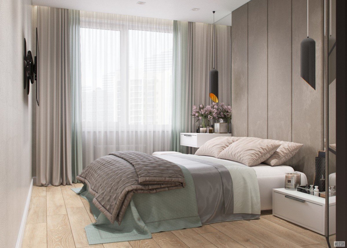 Серо бежевая спальня