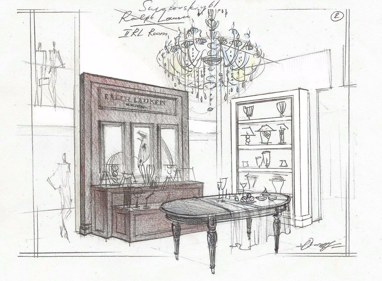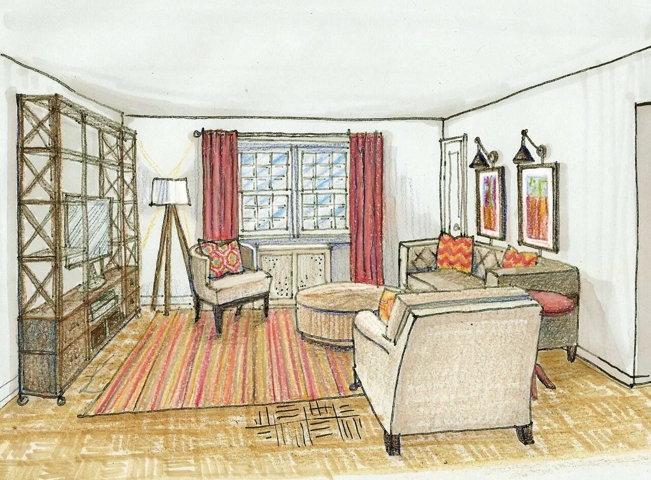 Скетч интерьера фронтальная перспектива