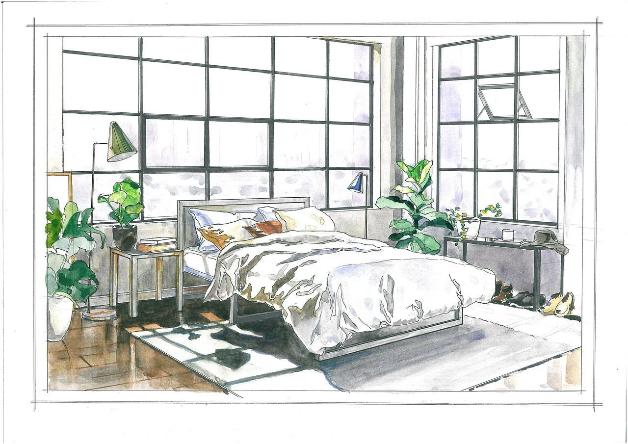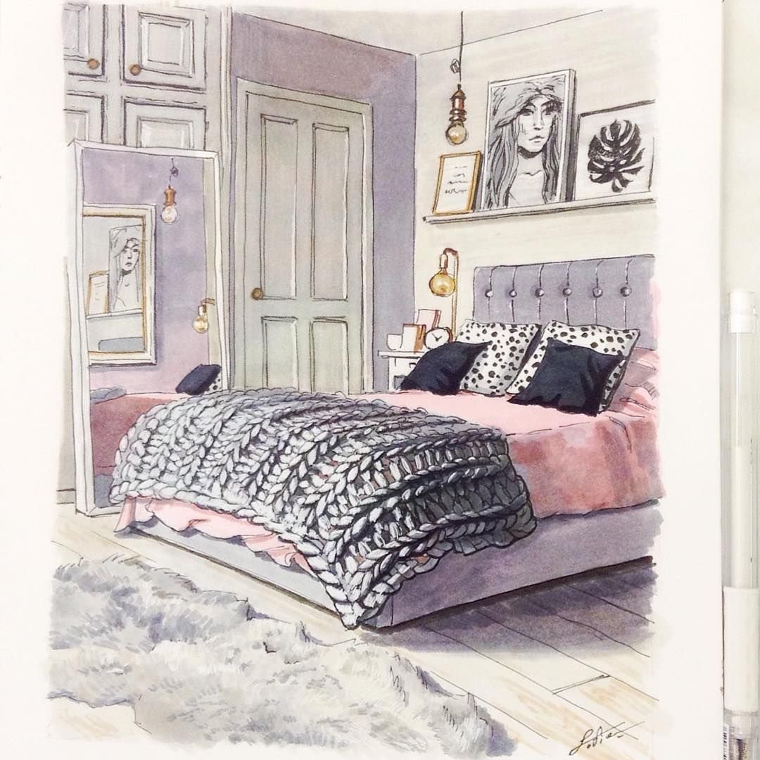 Интерьерные скетчи акварелью