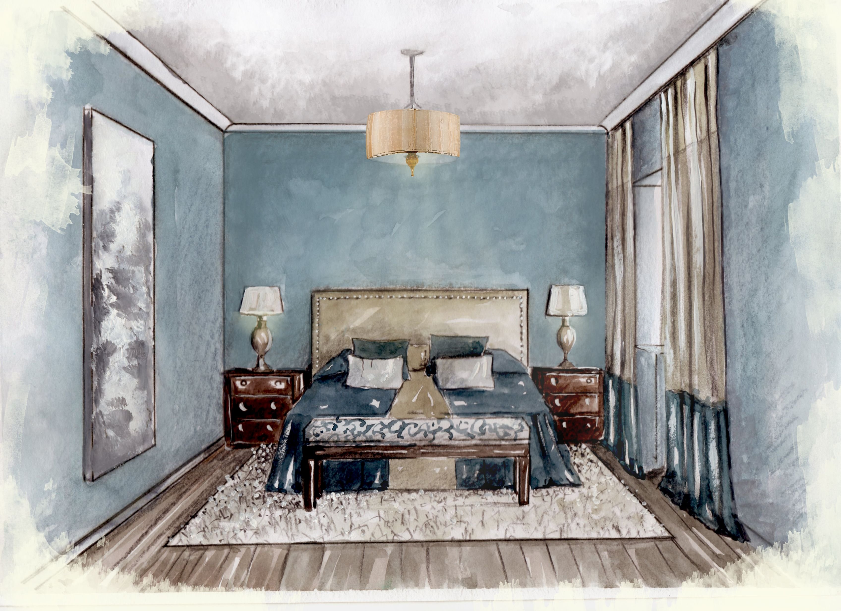 Акварельные скетчи интерьеров