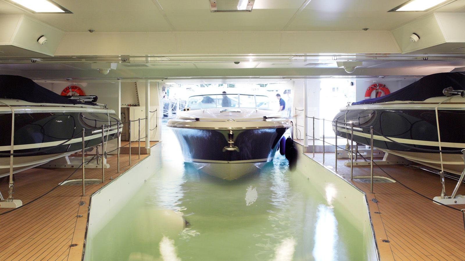 Яхта с гаражом для гидроцикла