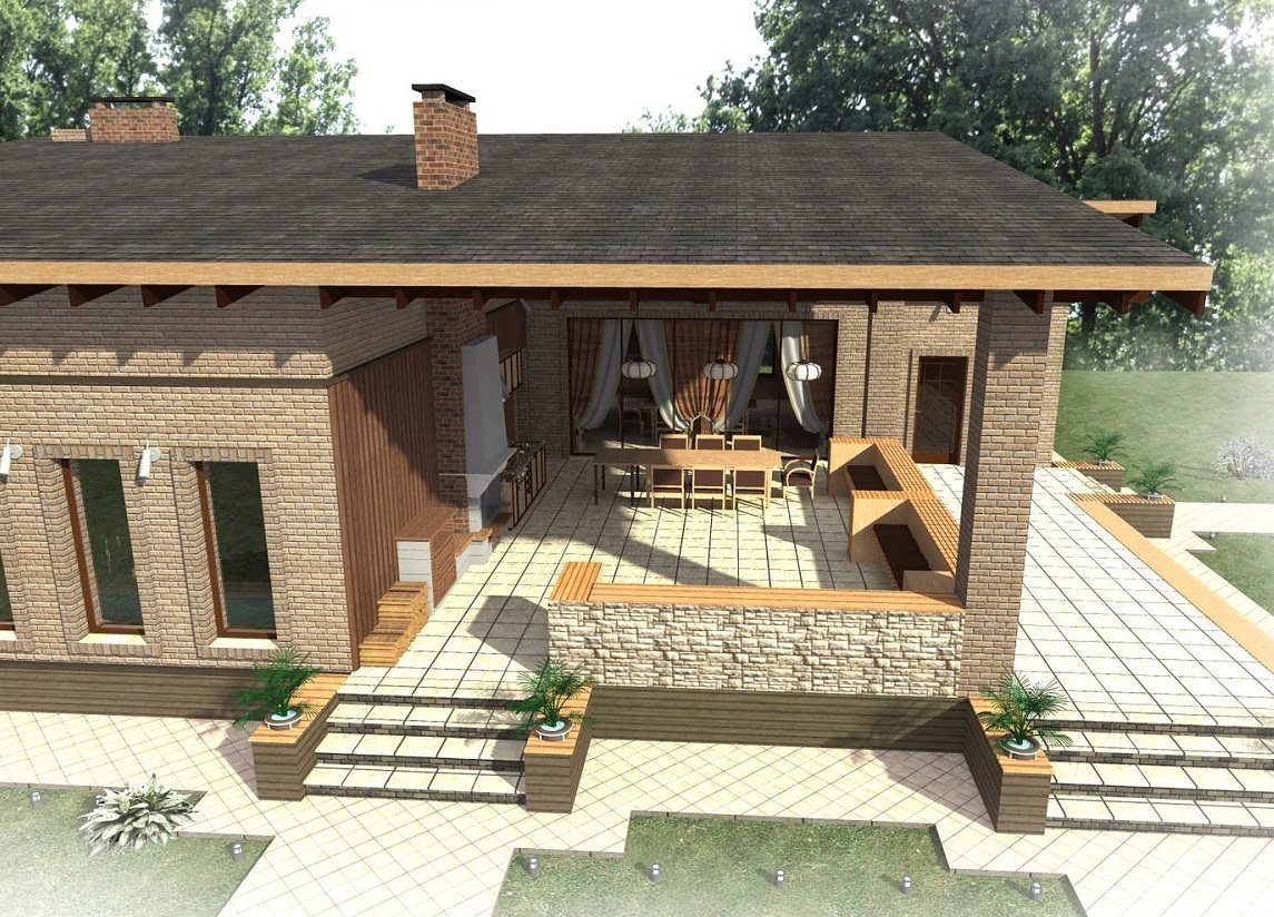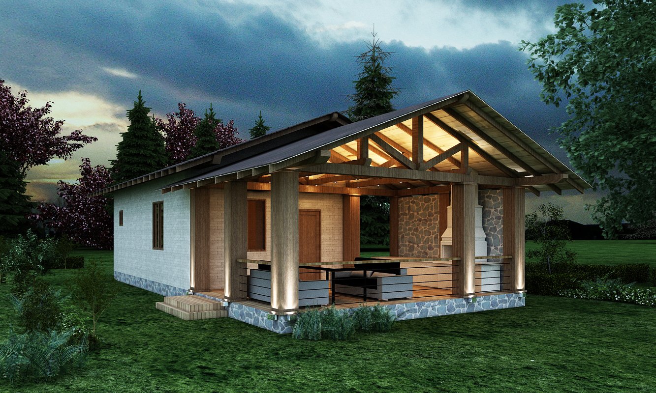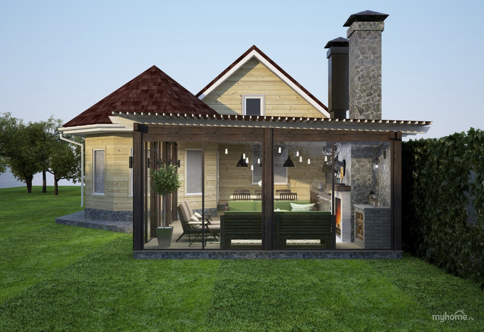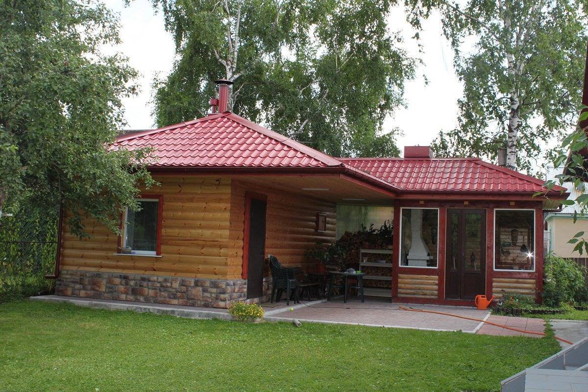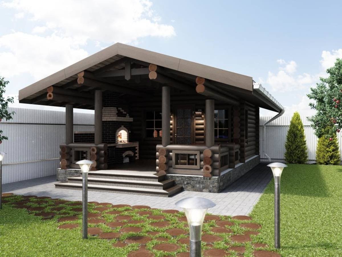 Баня с беседкой и барбекю под односкатной крышей проекты