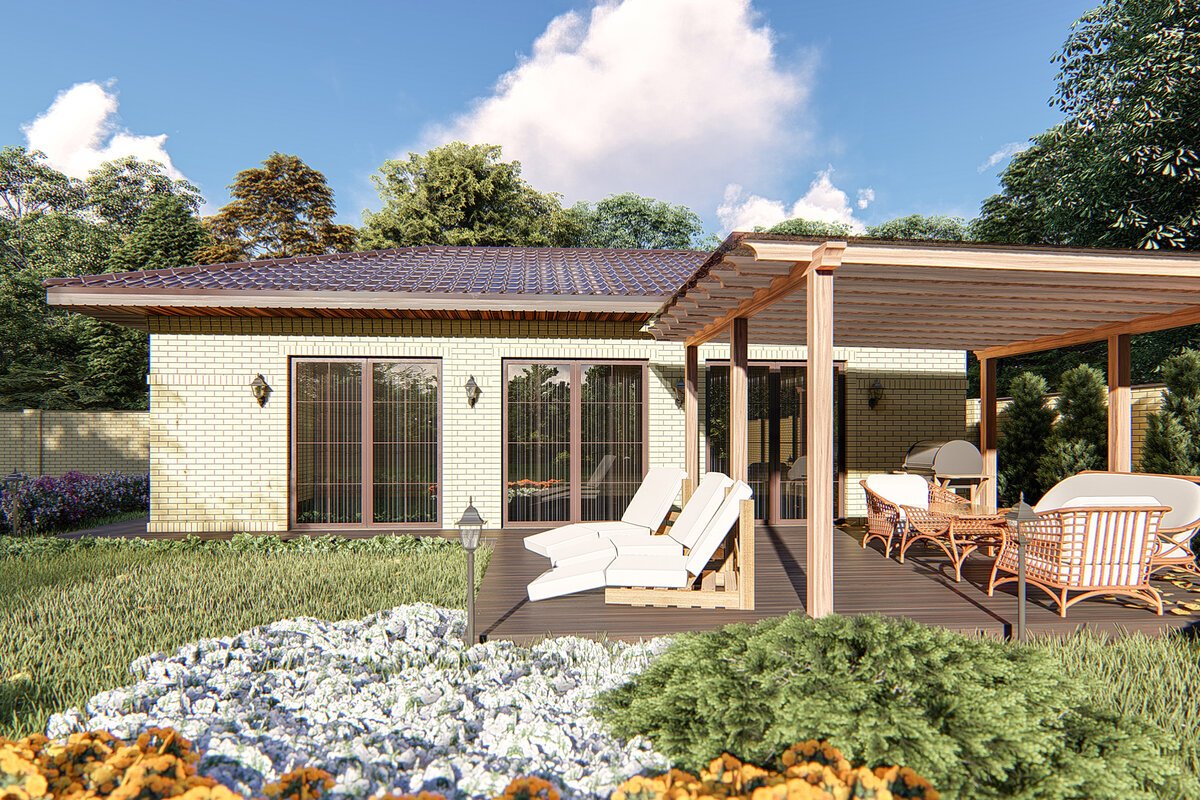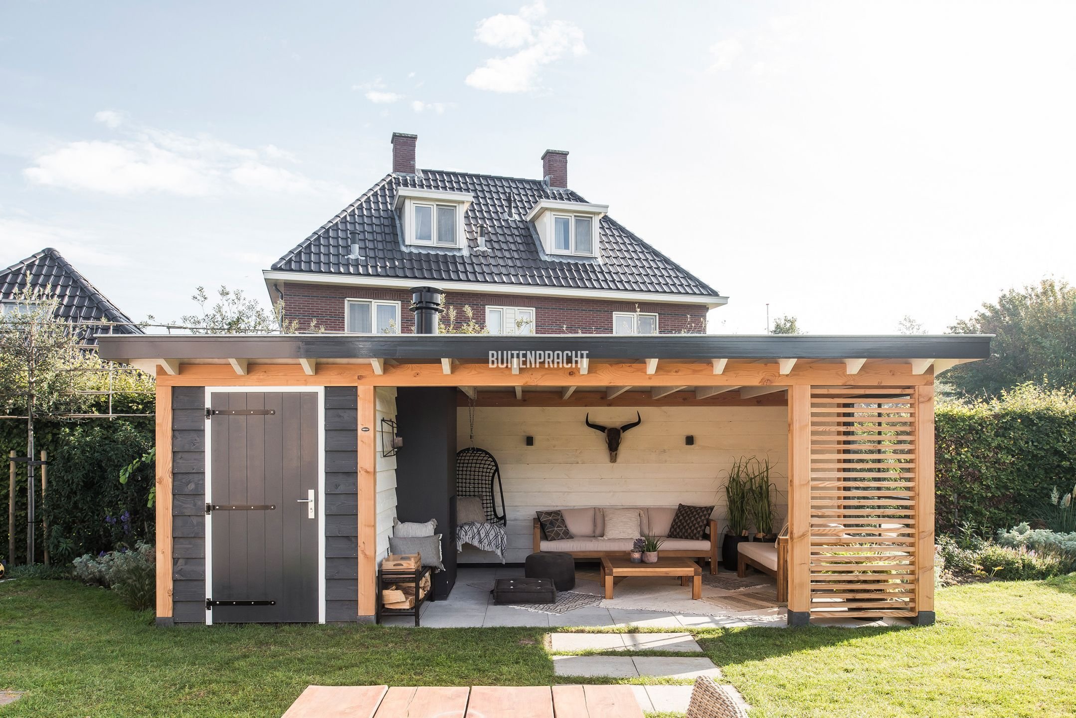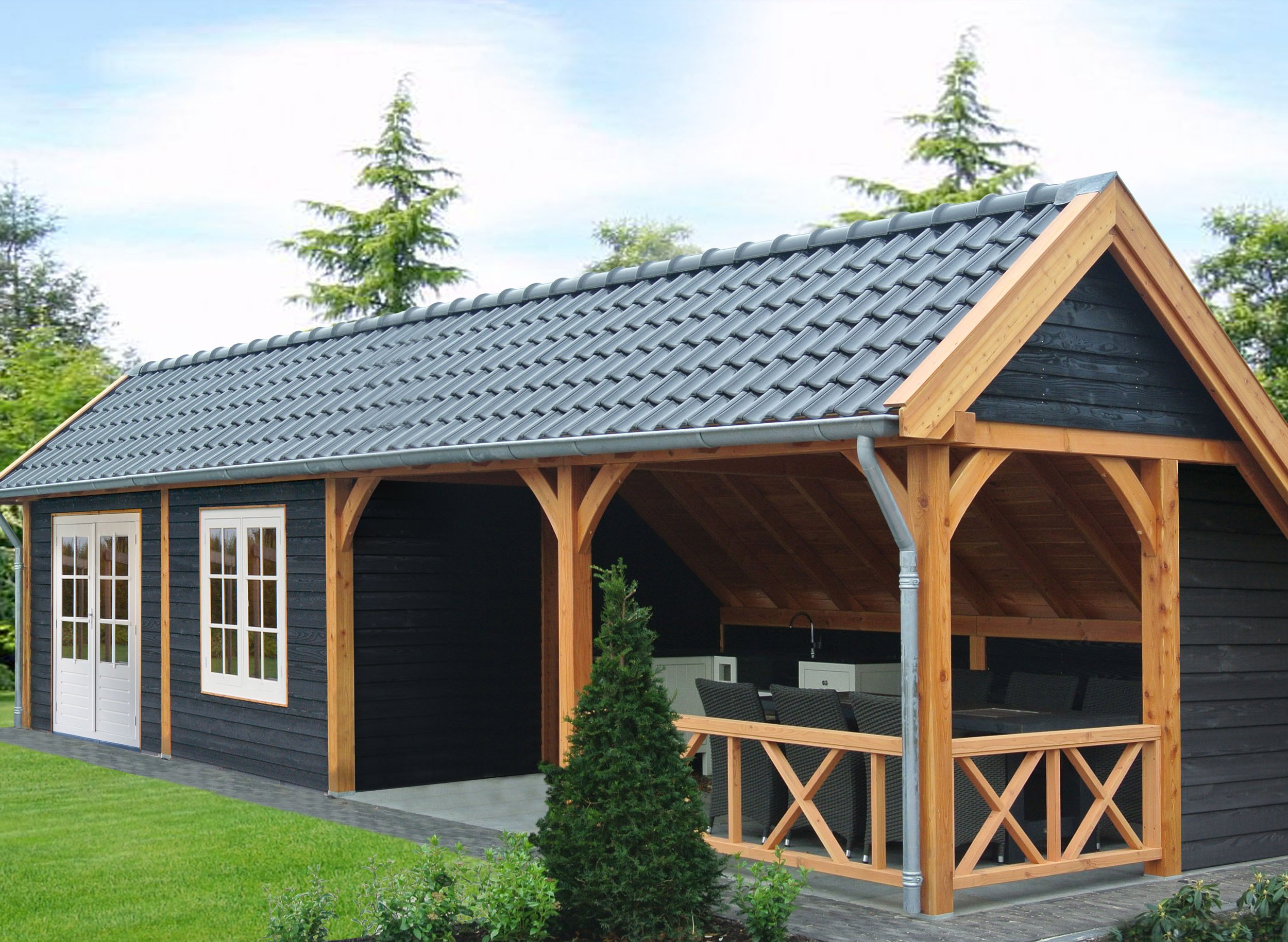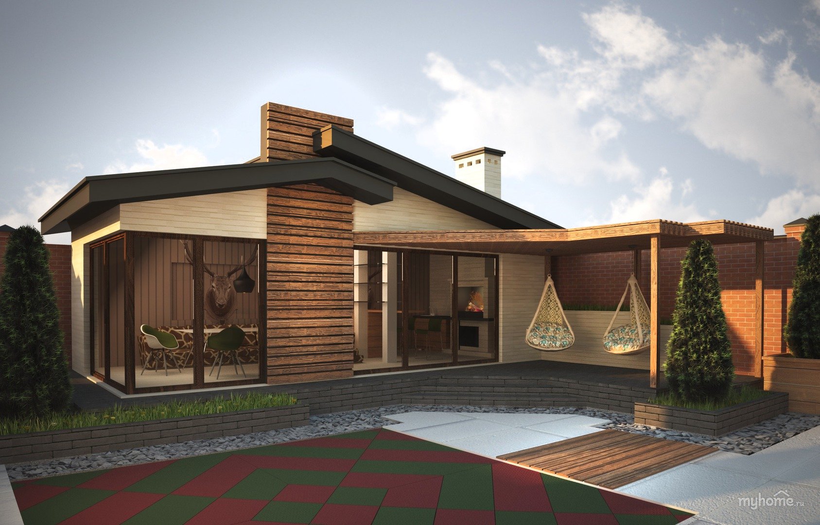 Баня с беседкой и барбекю под односкатной крышей проекты