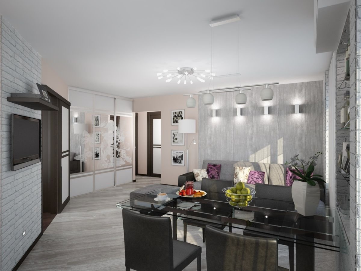 Гостиная в современном стиле хрущевка совмещенная с кухней