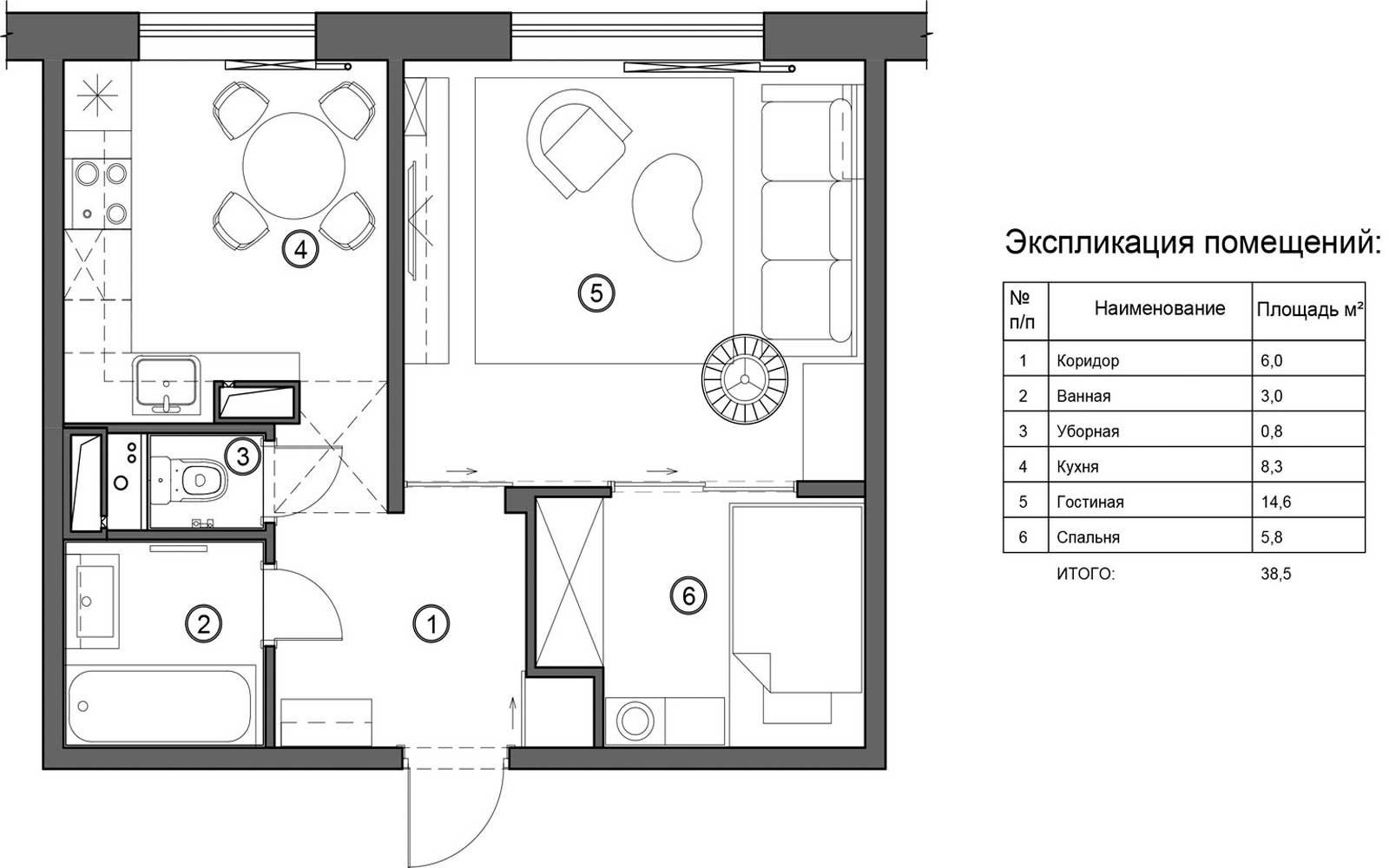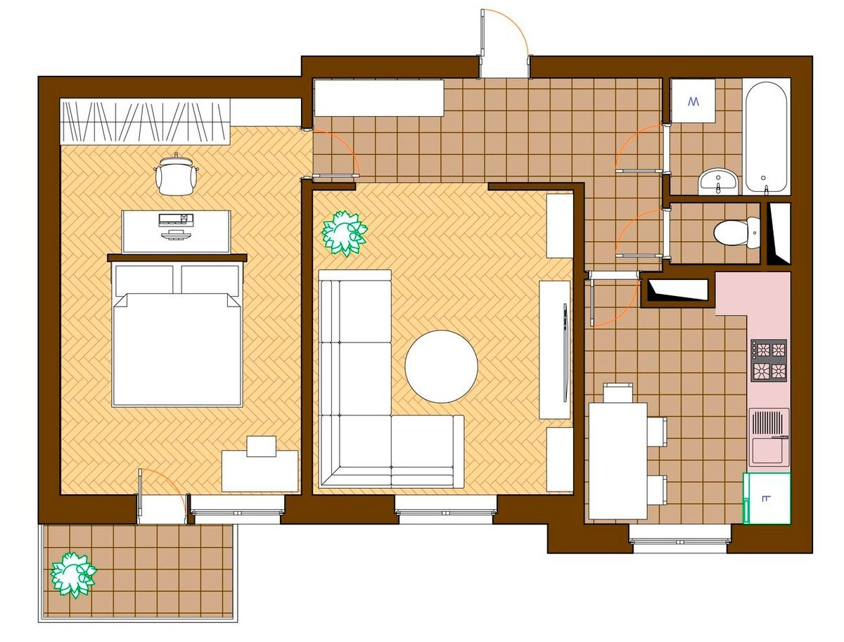 Планировка однушки 46 кв