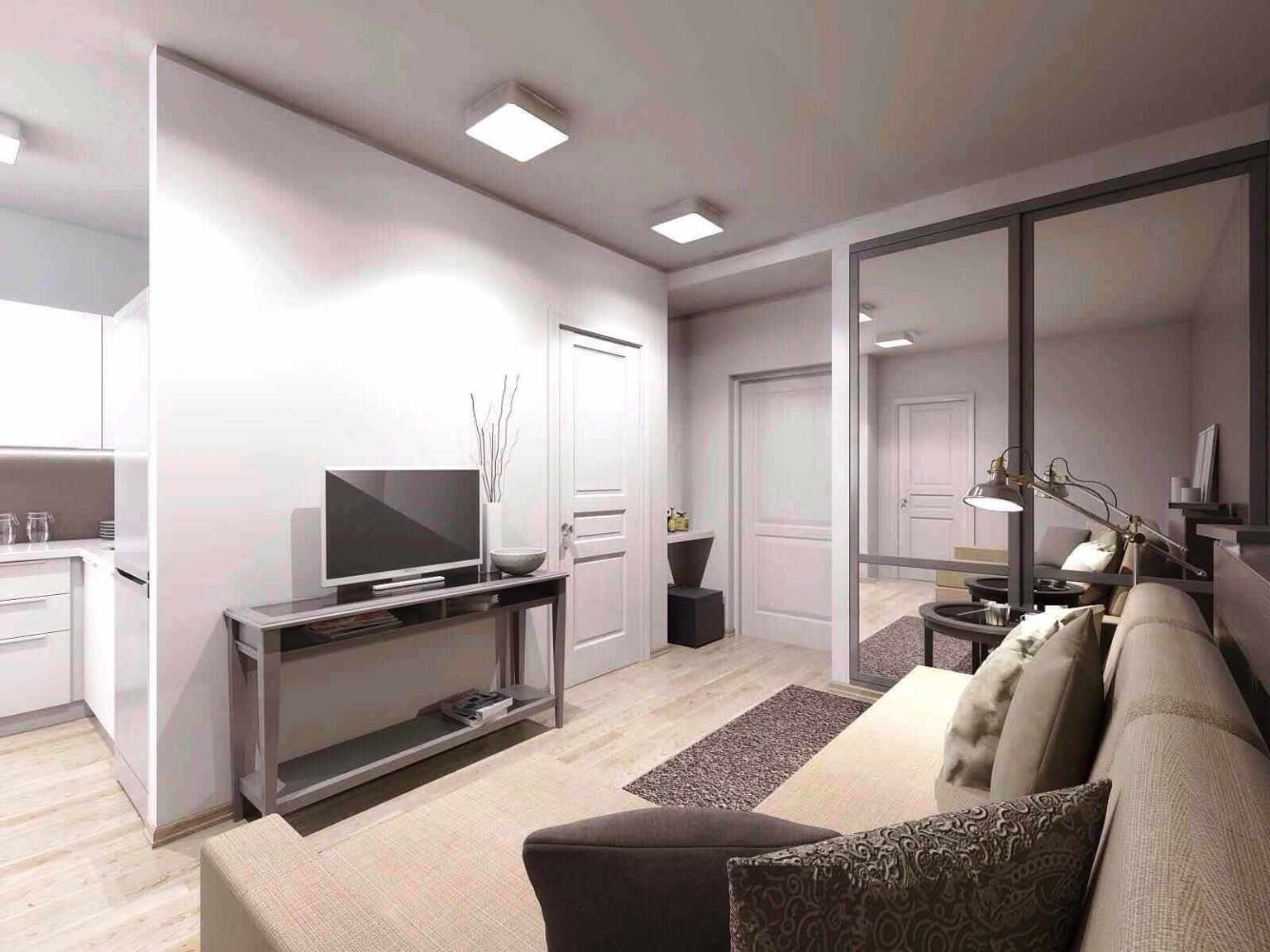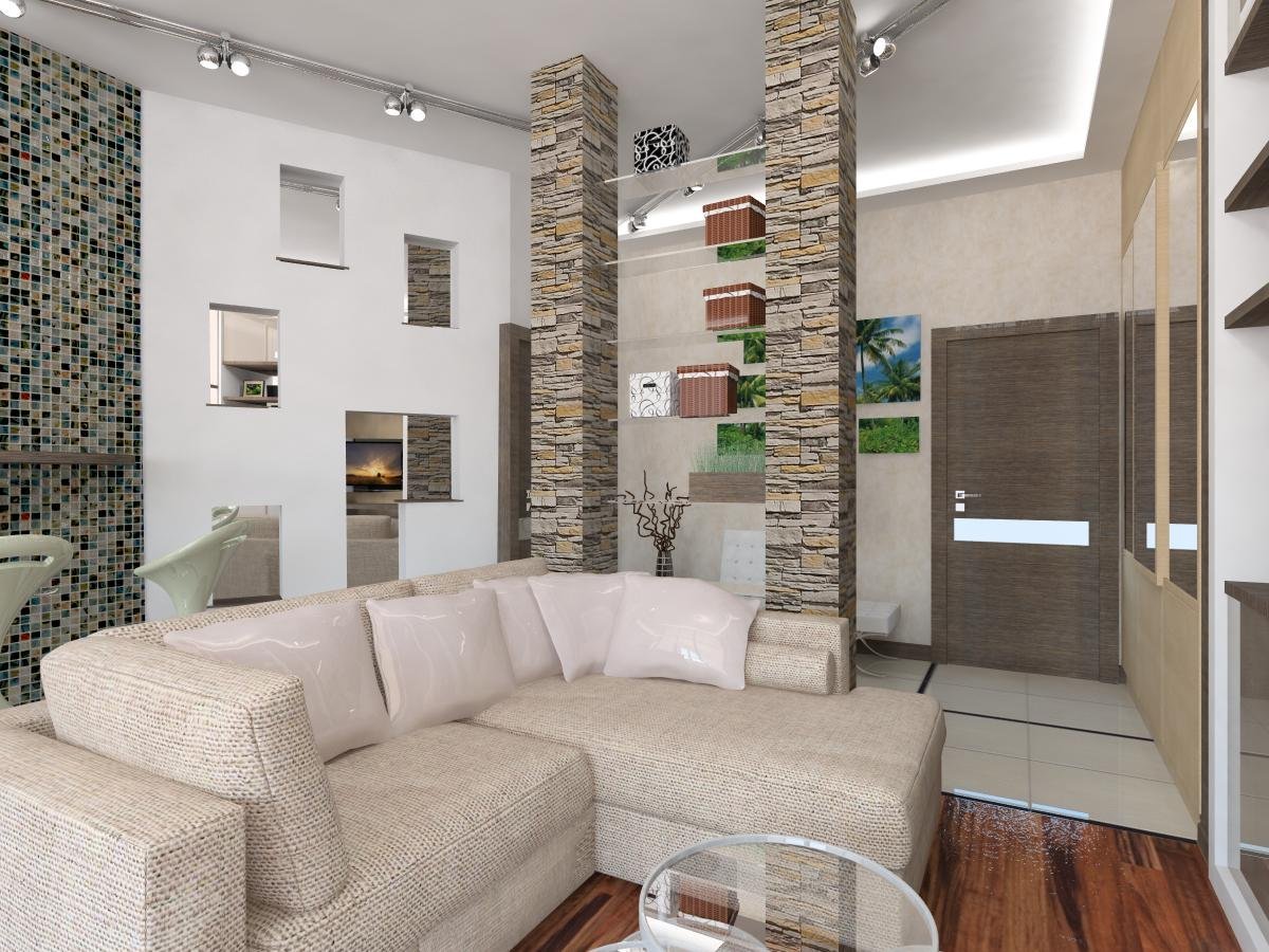 Прихожая гостиная в одной комнате