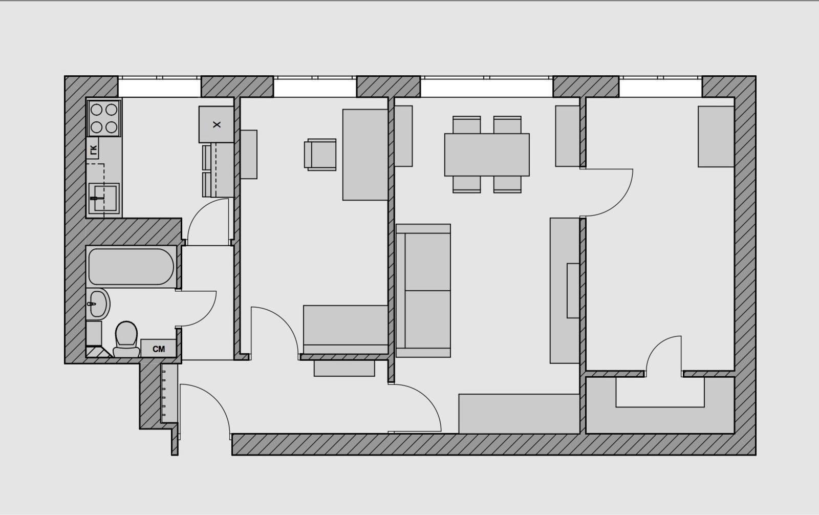 Перепланировка трехкомнатной квартиры п42
