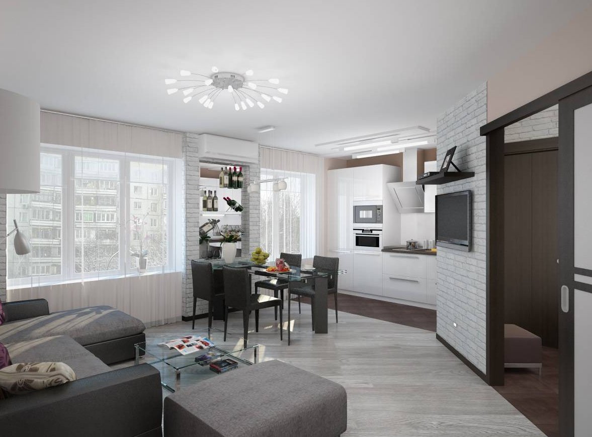 Кухня гостиная в трехкомнатной квартире