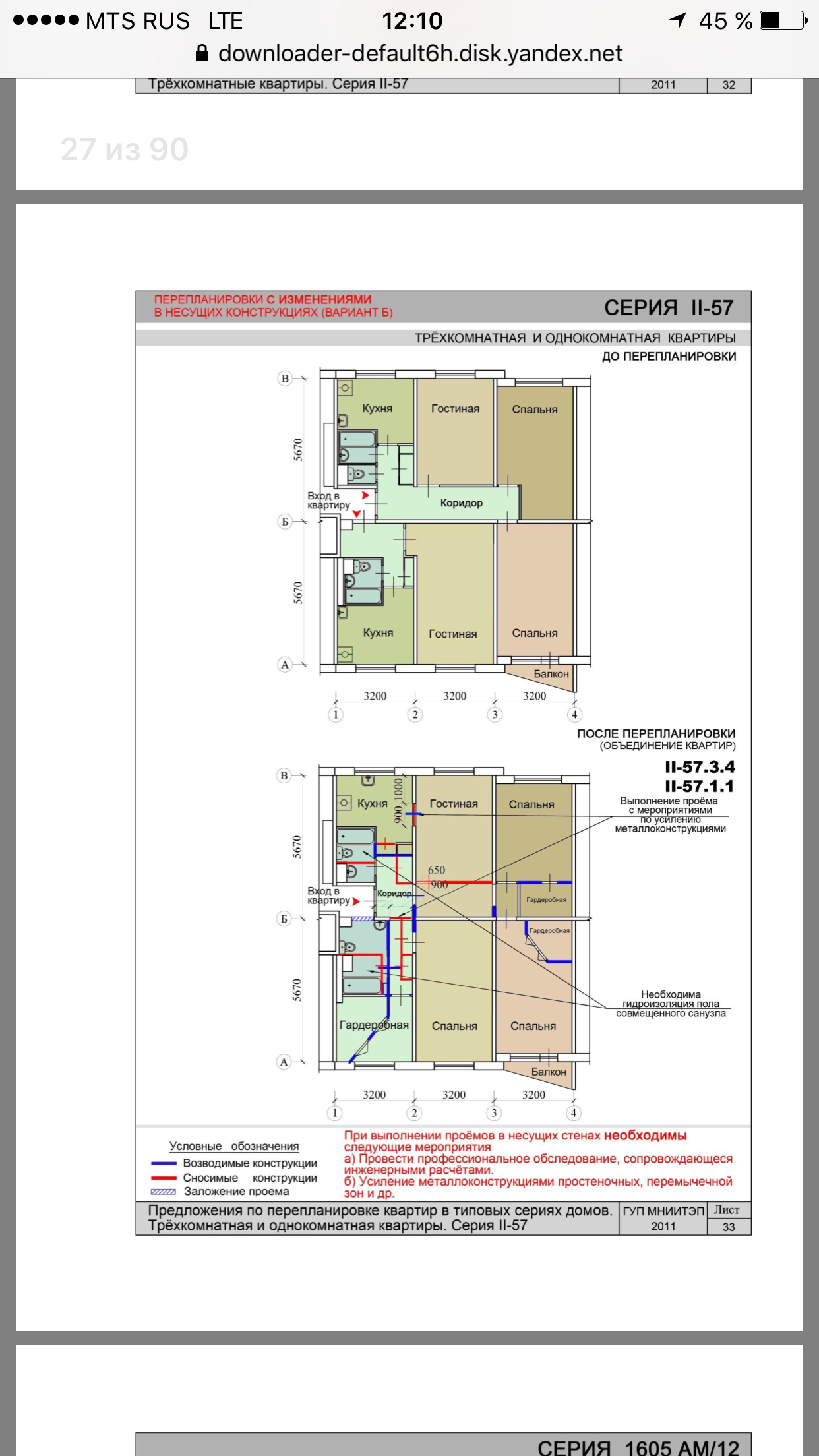 П-44 несущие стены в трехкомнатной квартире