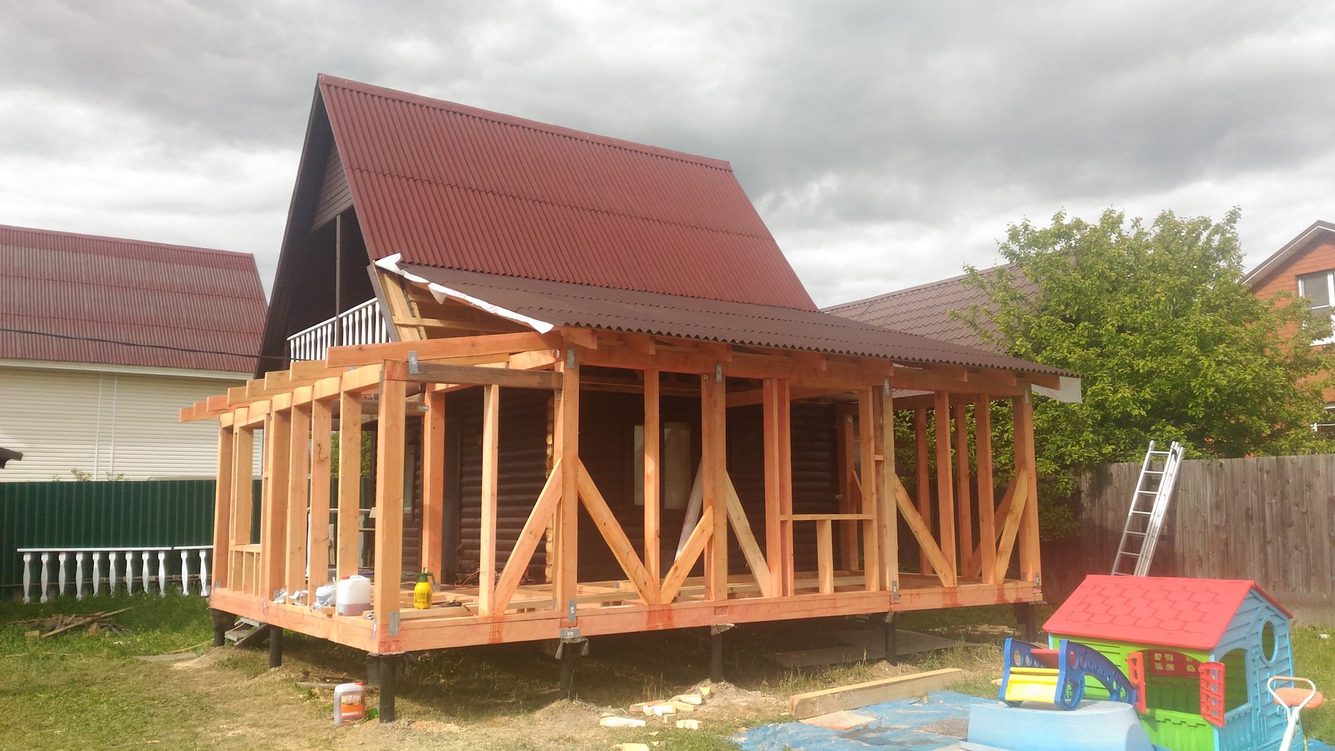 Комментируют Веранда с двухскатной крышей пристроенная к дому: