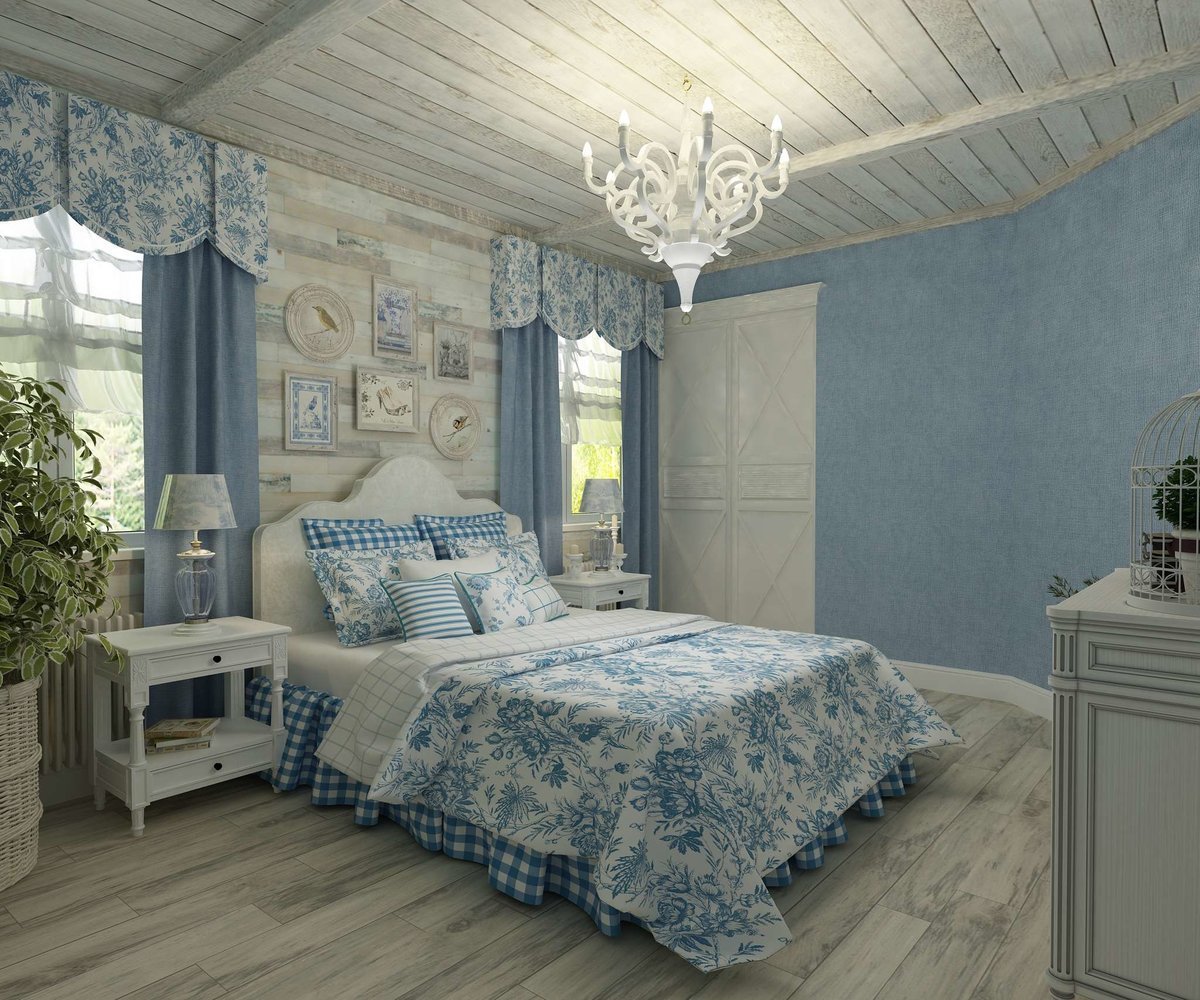 Спальня в бело голубых тонах в стиле Прованс