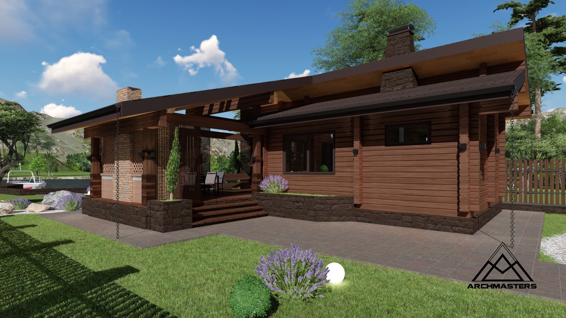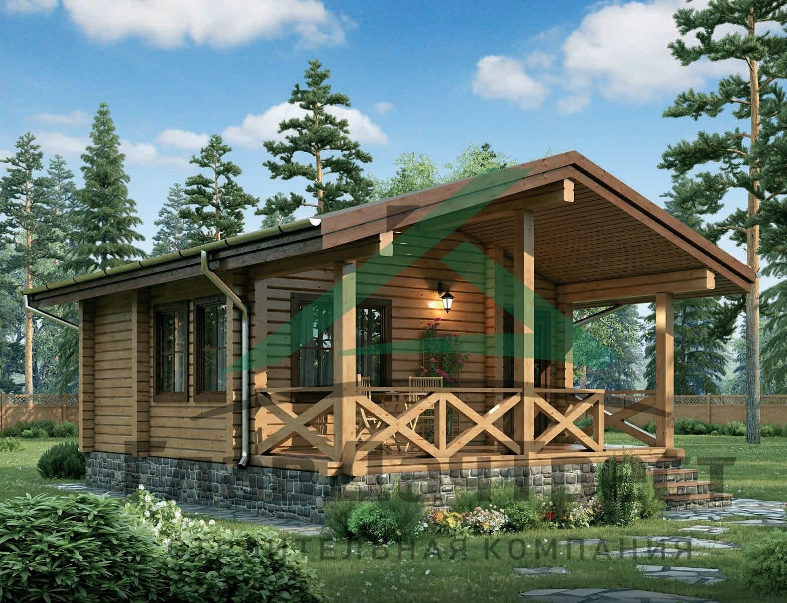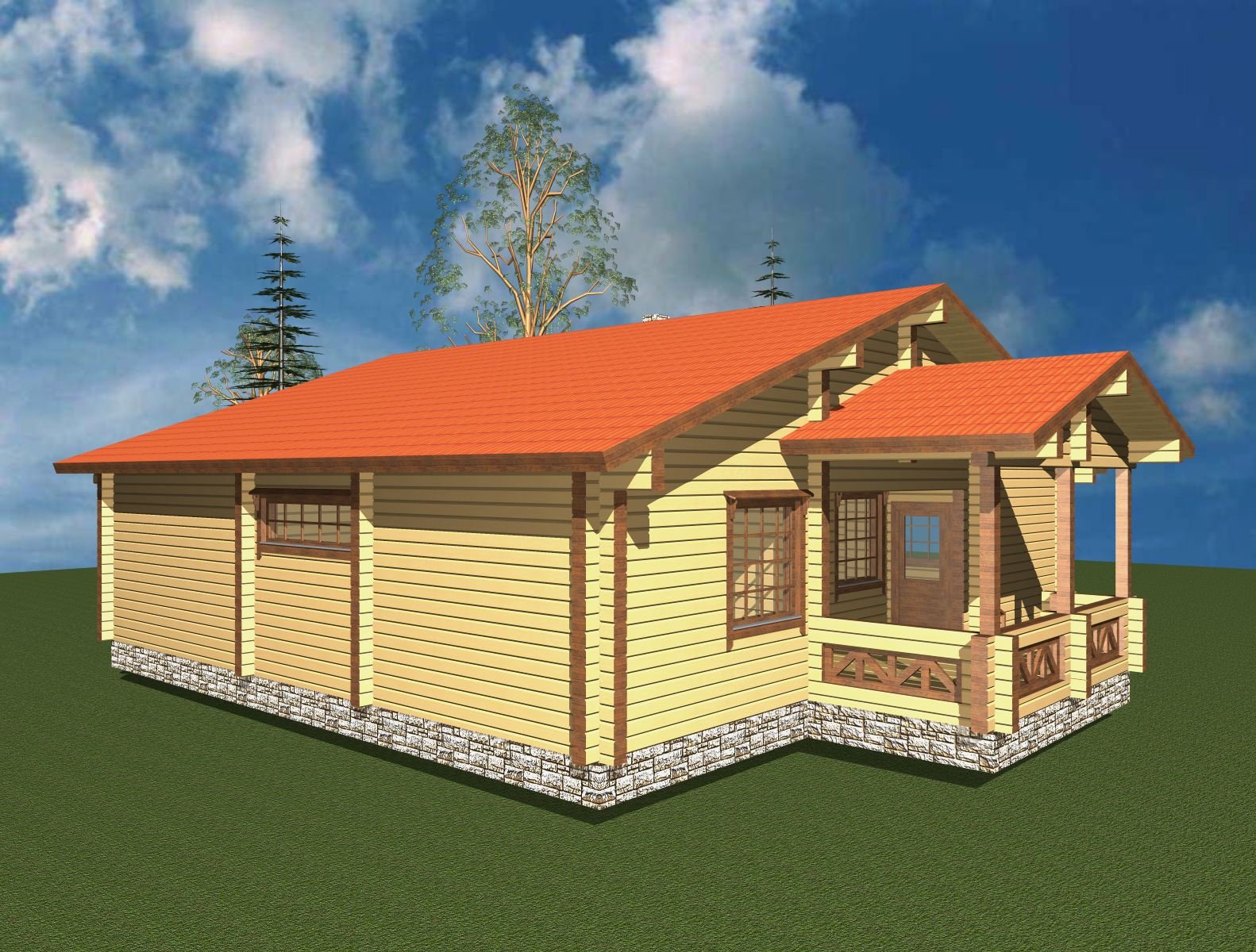 Деревянный дом одноэтажный с террасой 100кв