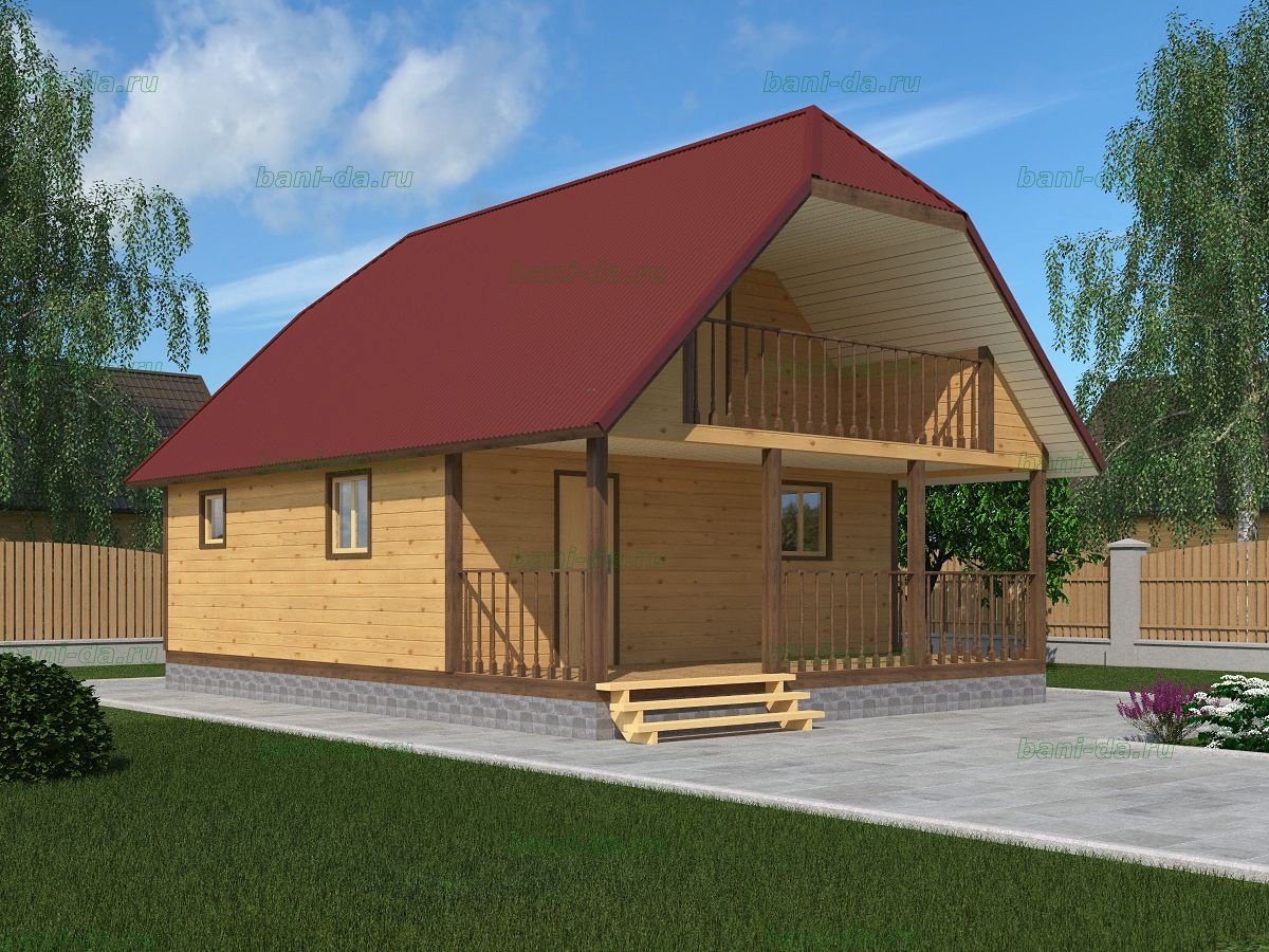 Баня из бруса 6х6 с мансардой и террасой
