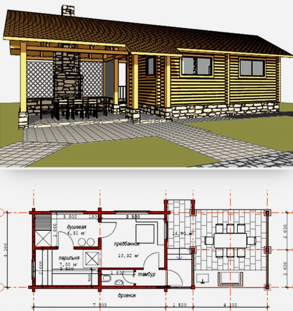 Баня с террасой под одной крышей проекты