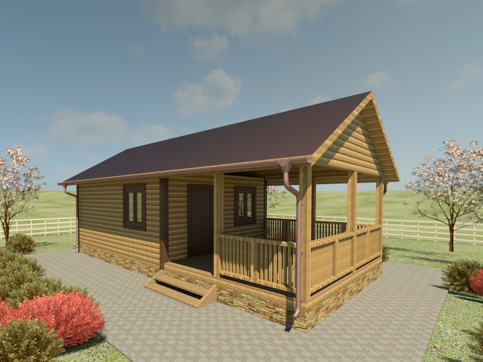 Баня с верандой под одной крышей