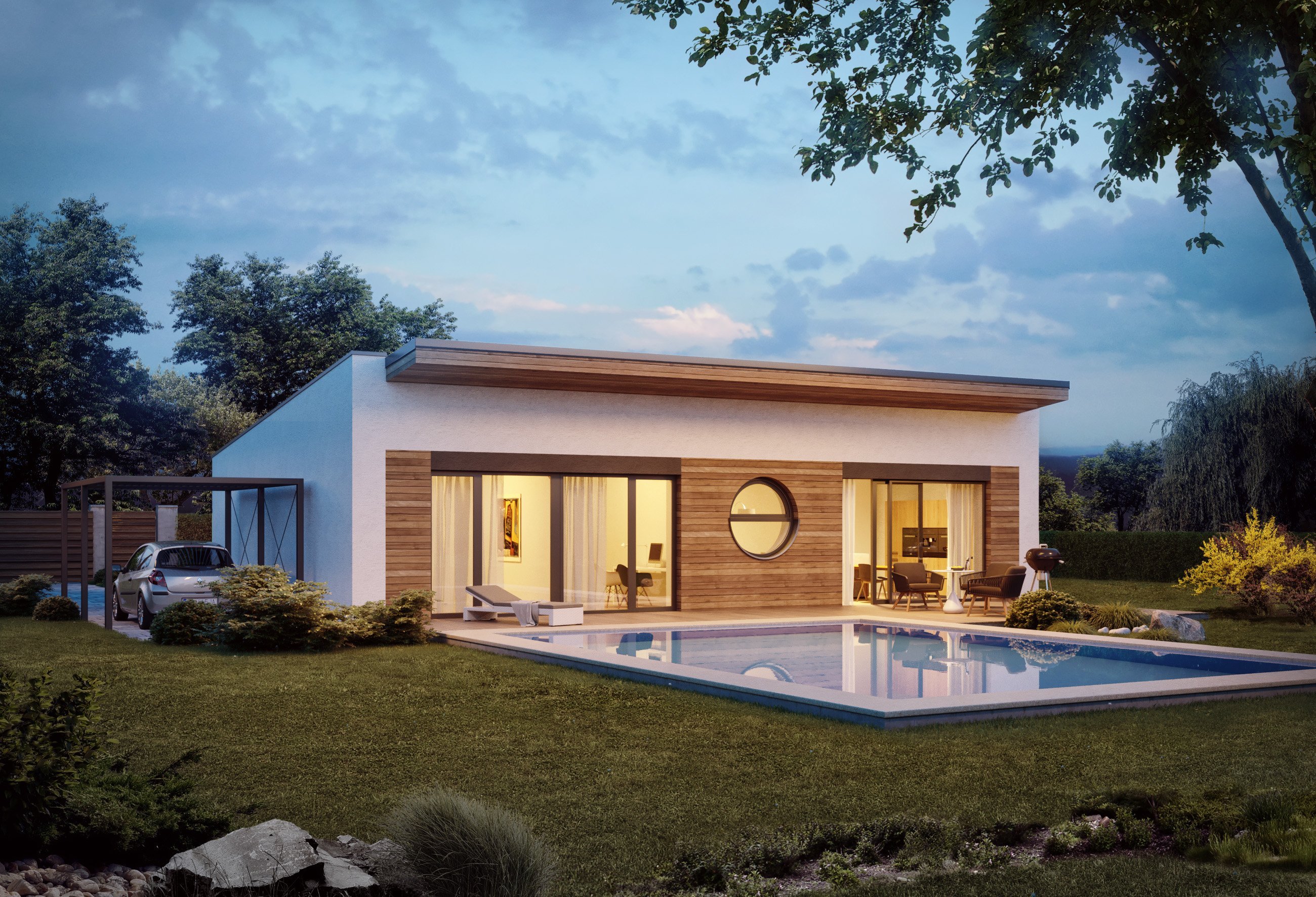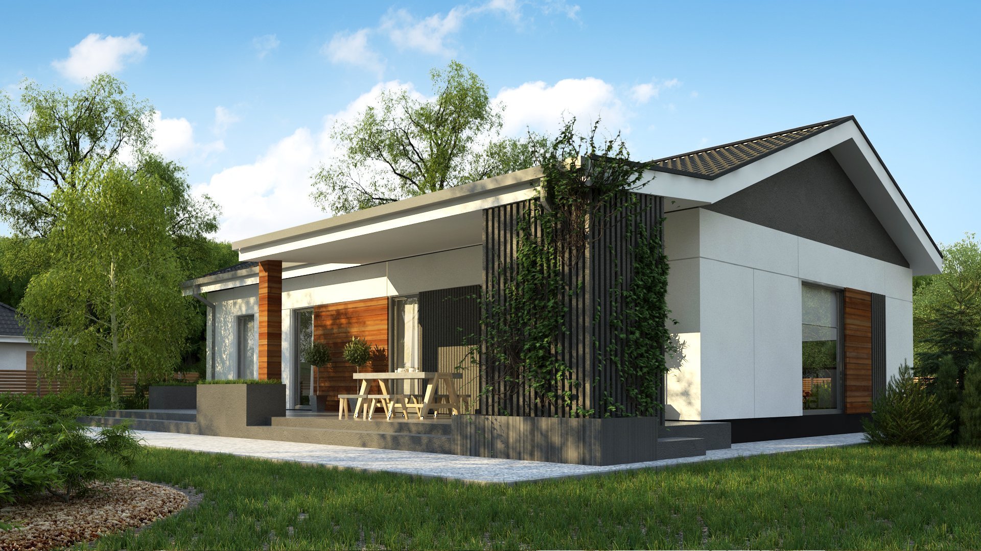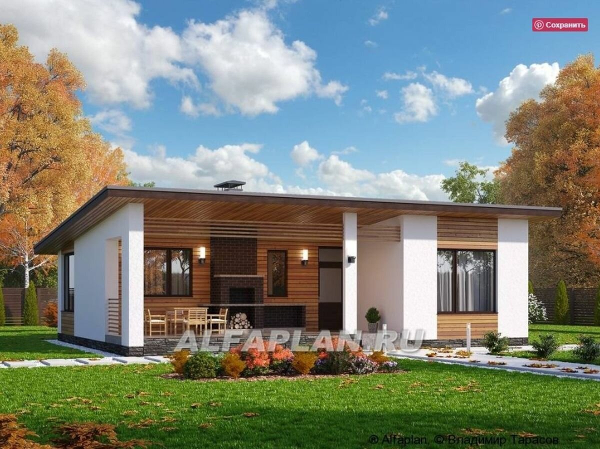 Дом из газобетона 85 кв м одноэтажный с односкатной крышей