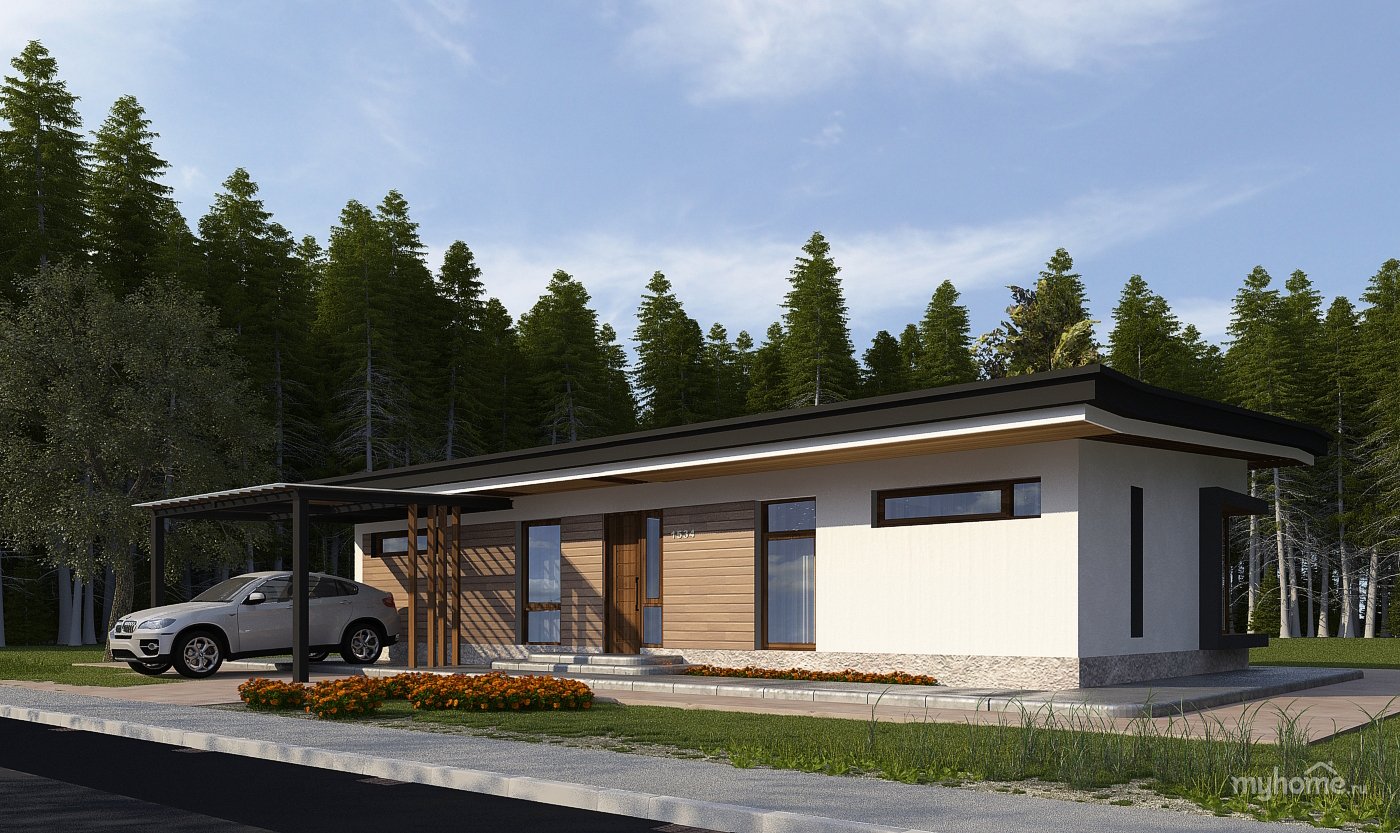 Дом в стиле лофт одноэтажный с односкатной крышей