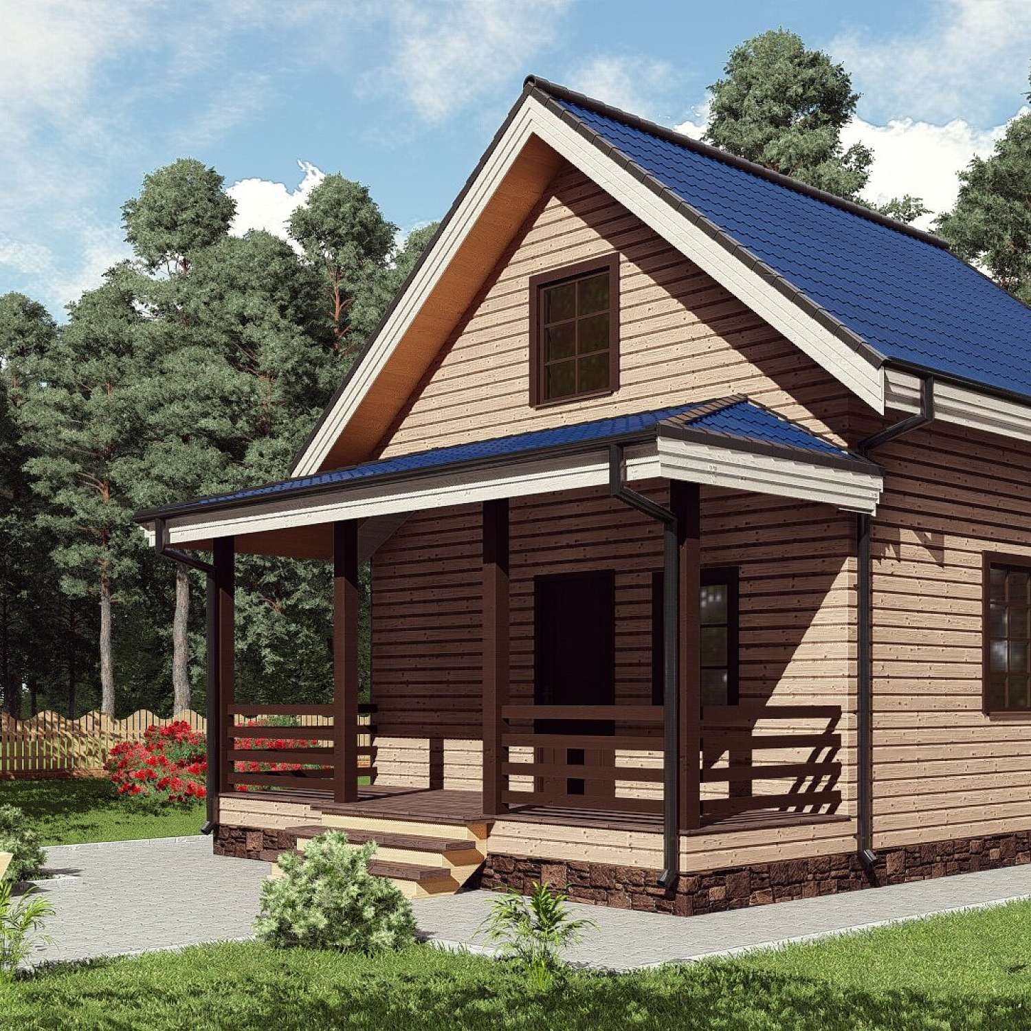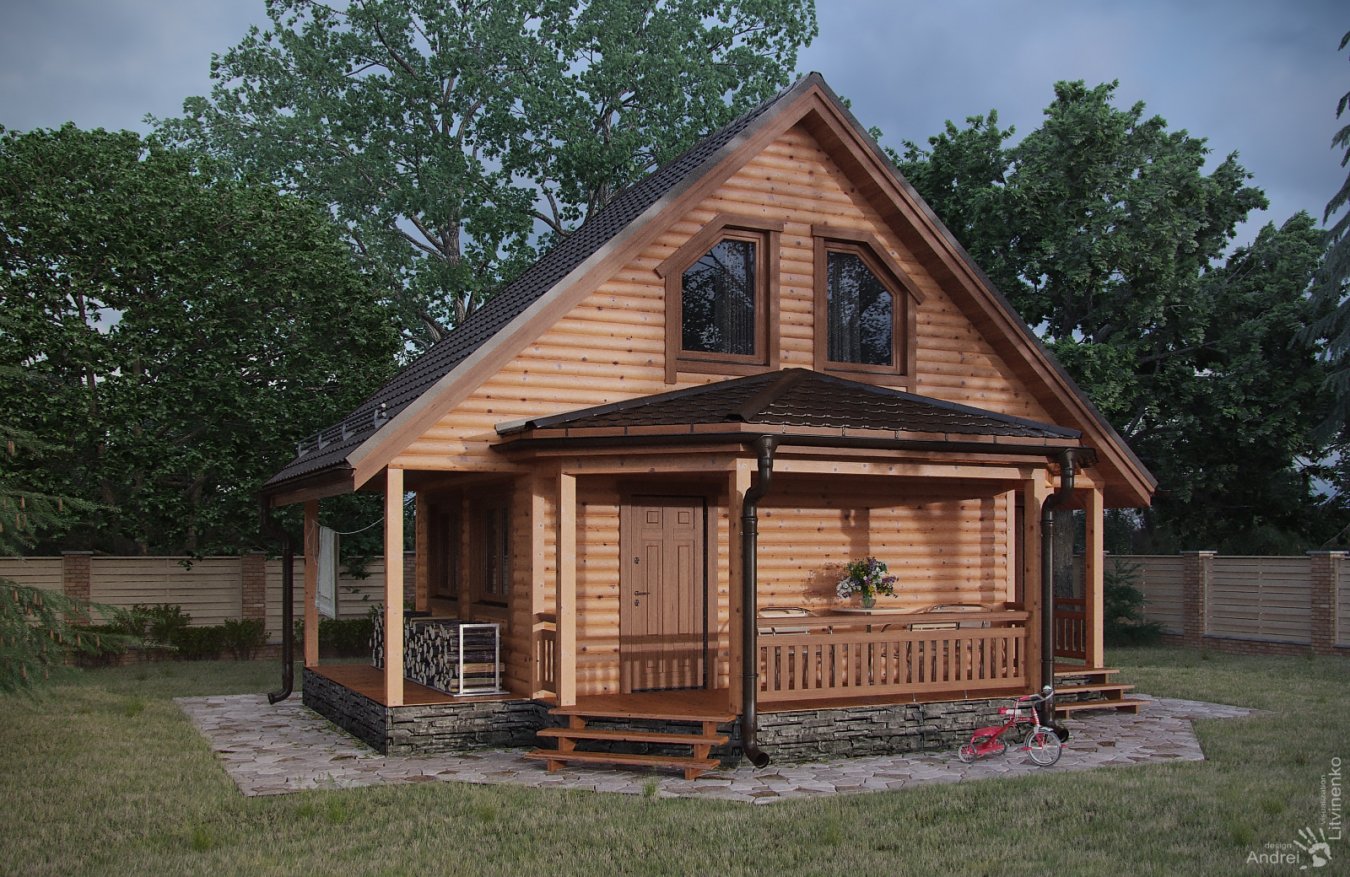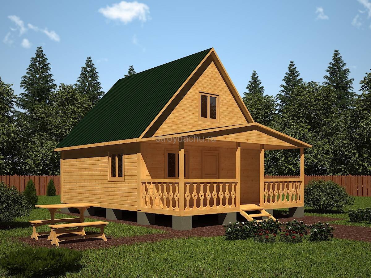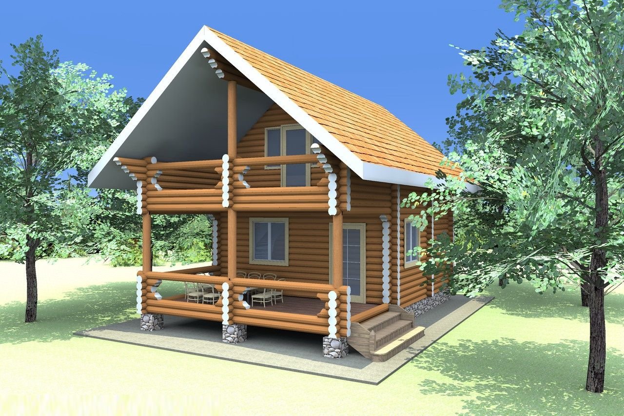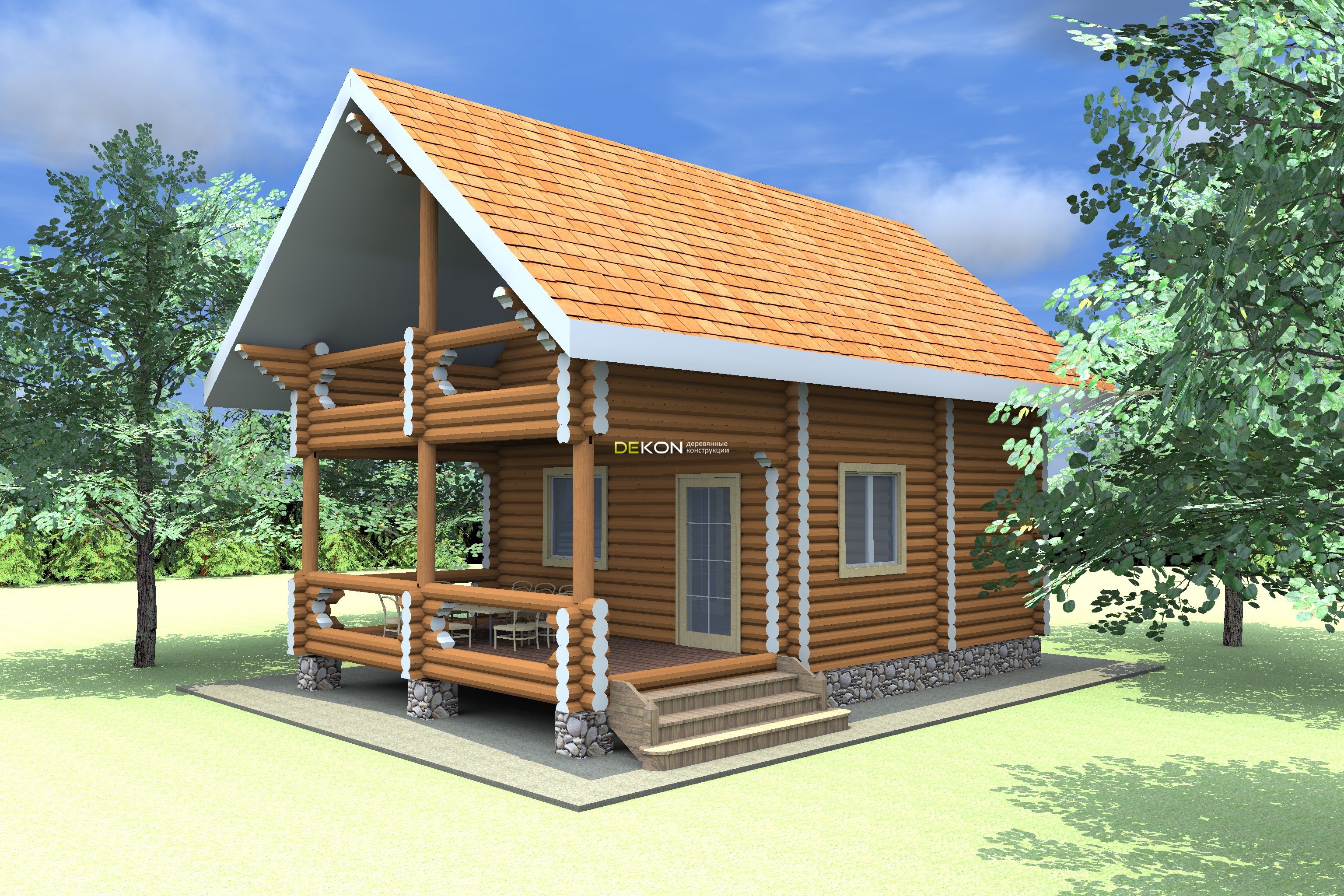 Сруб баня-дом 6х6 с мансардой и верандой из бруса