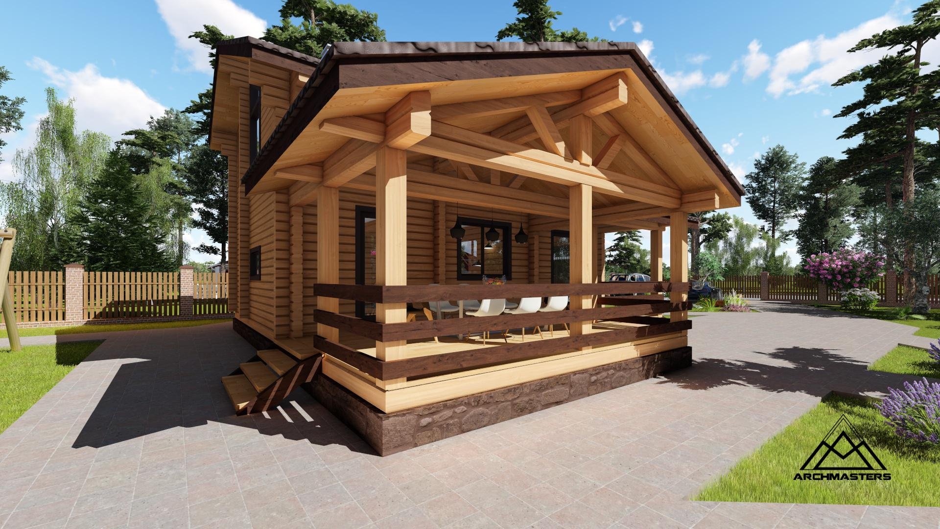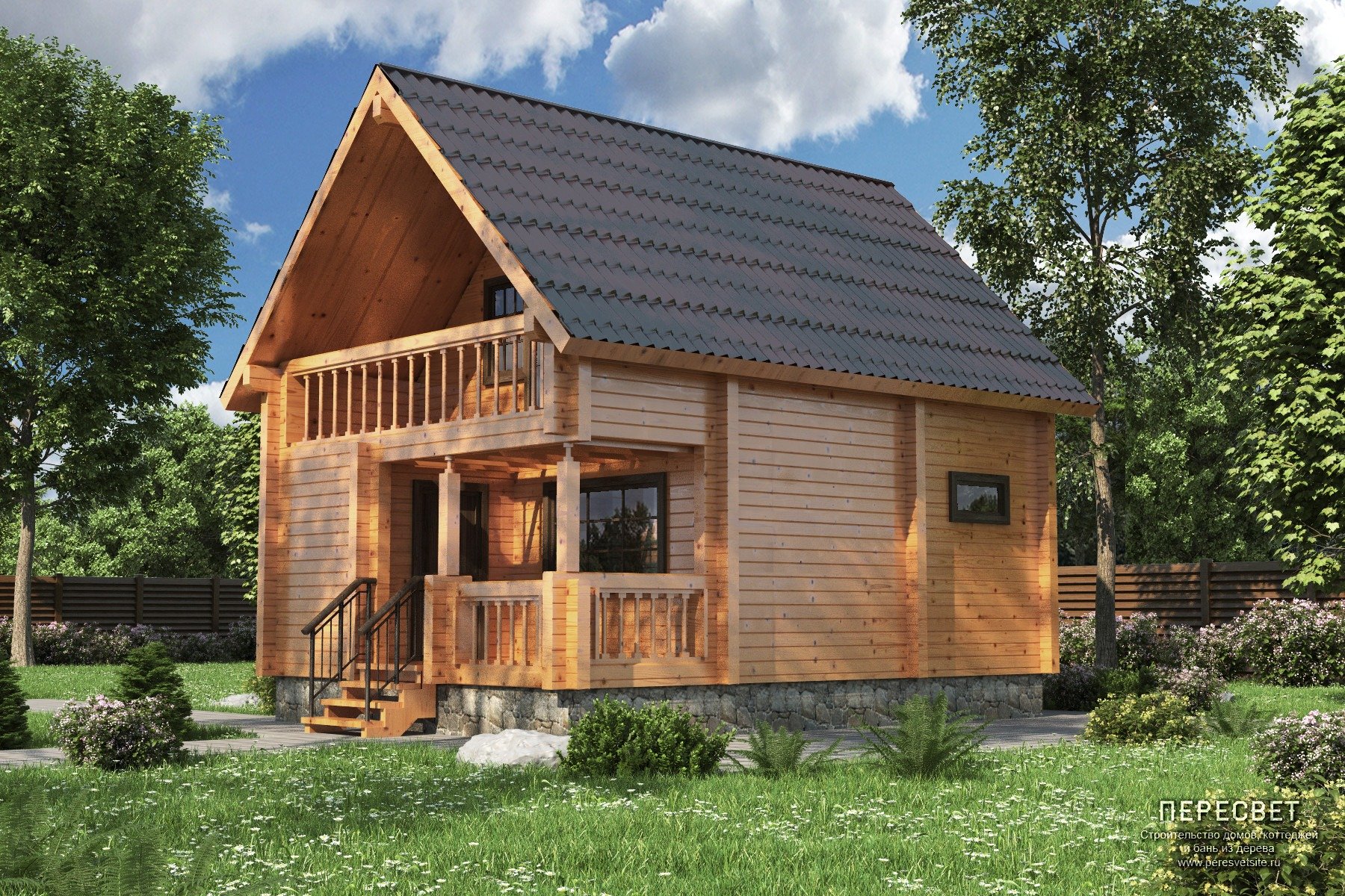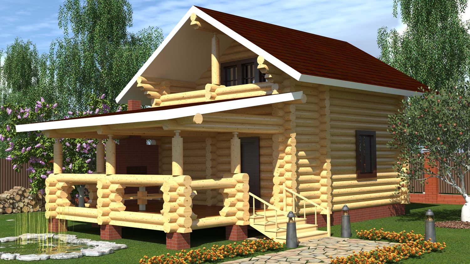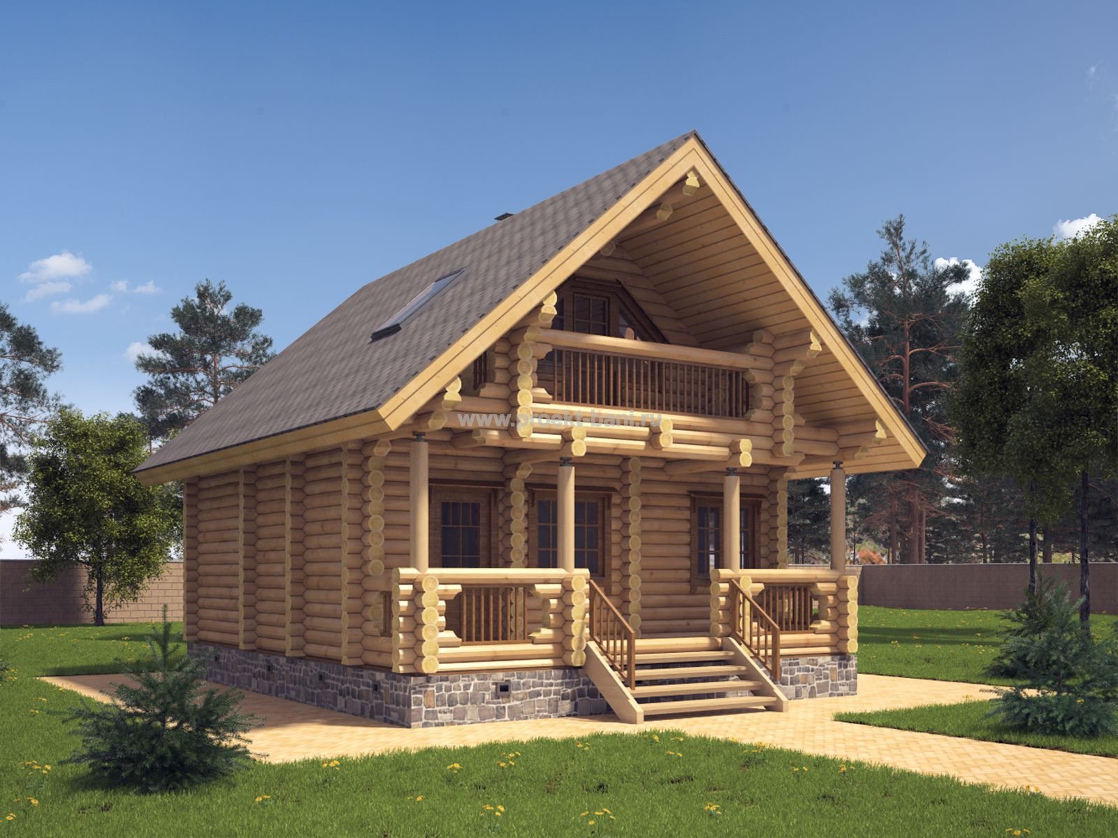 Сруб баня-дом 6х6 с мансардой и верандой из бруса