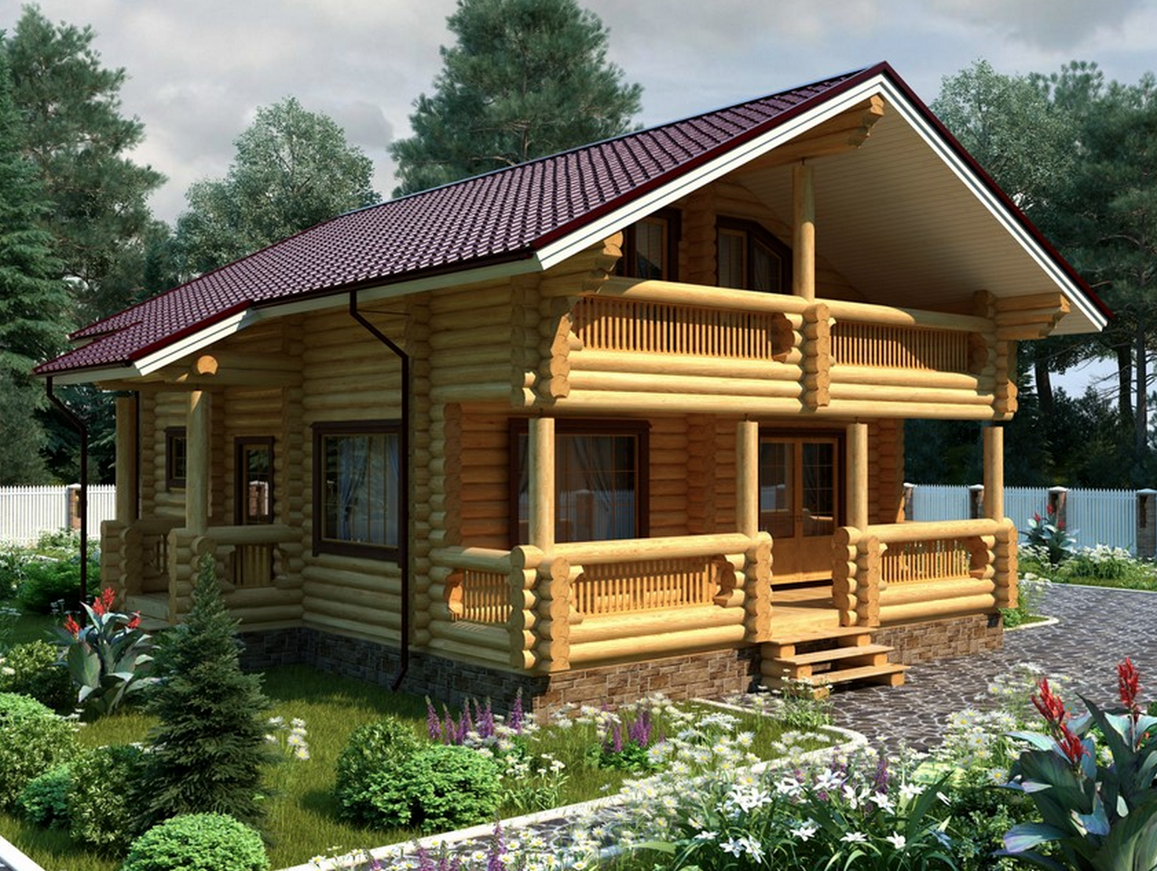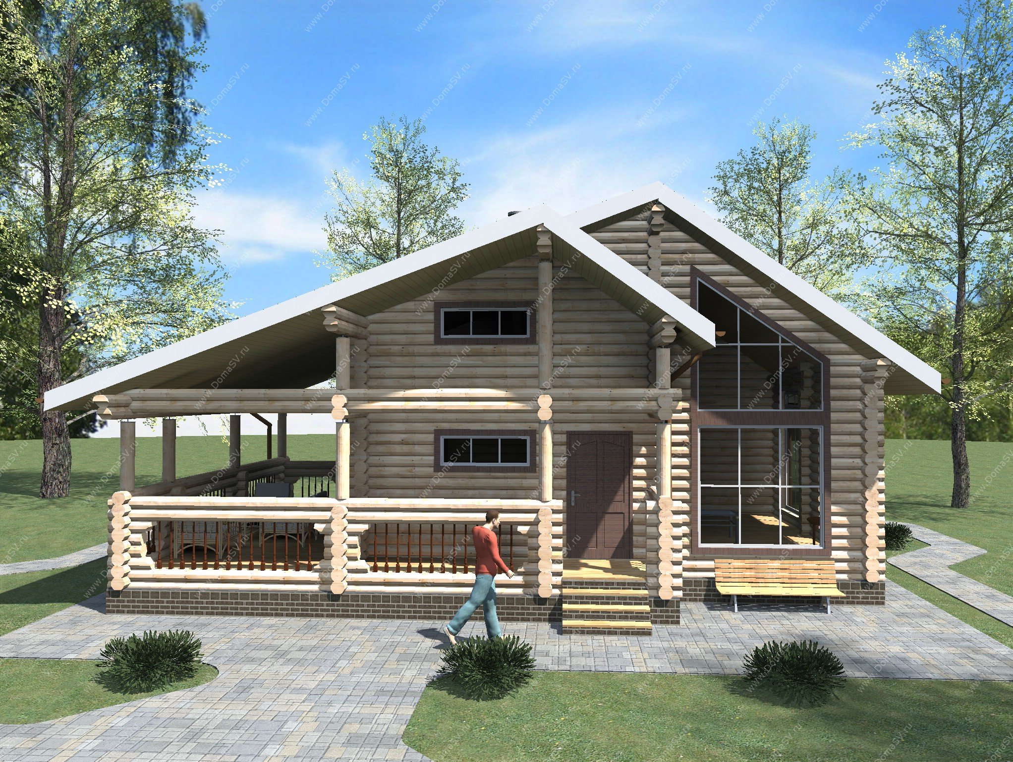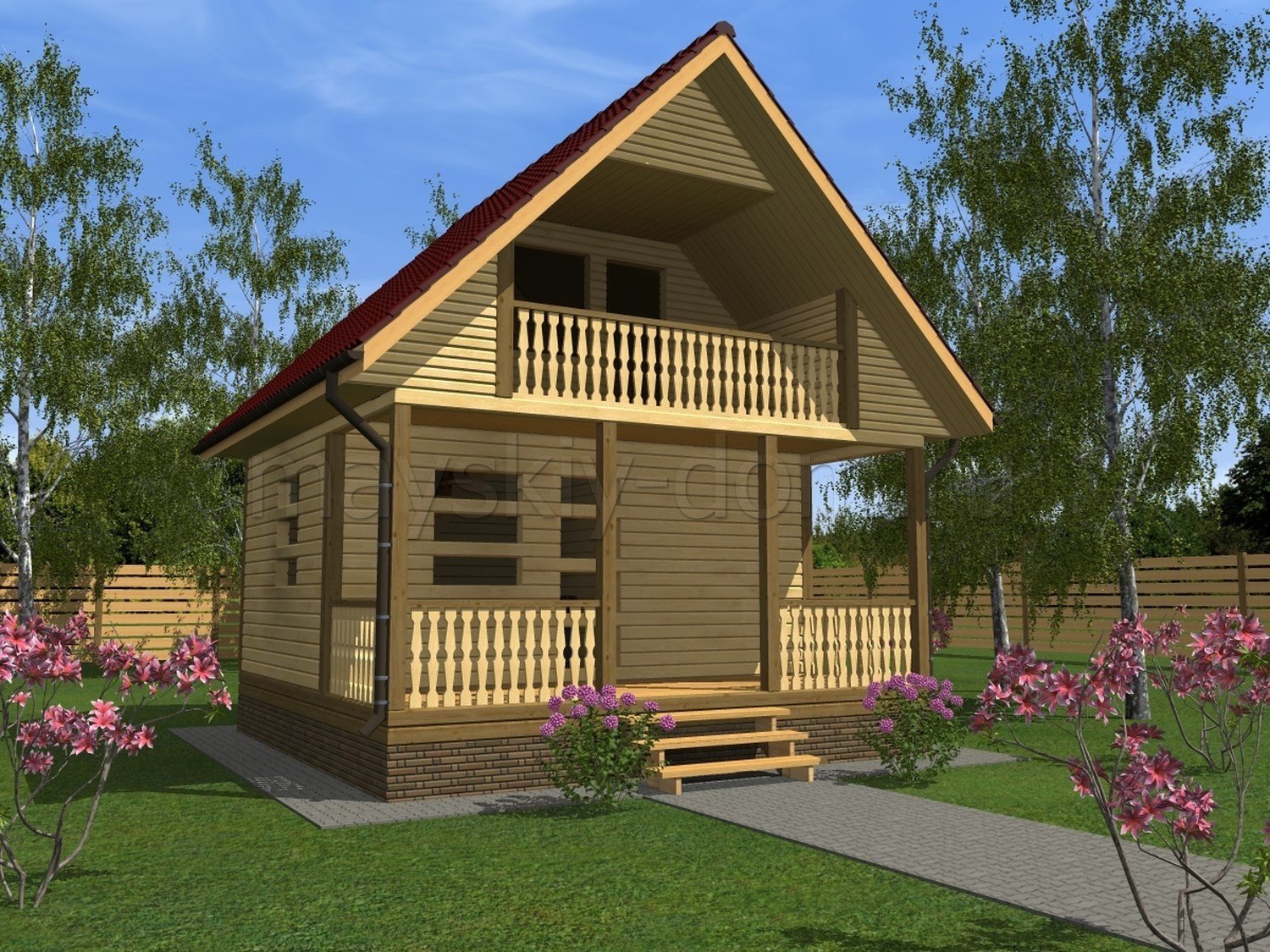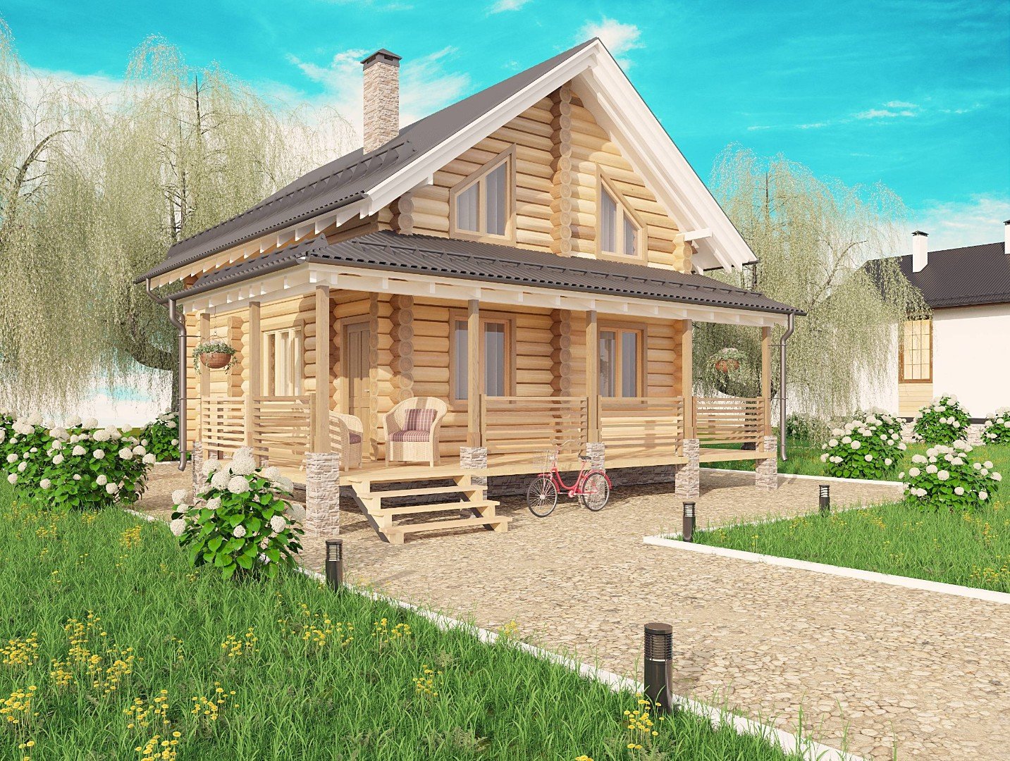 Сруб баня-дом 6х6 с мансардой и верандой из бруса