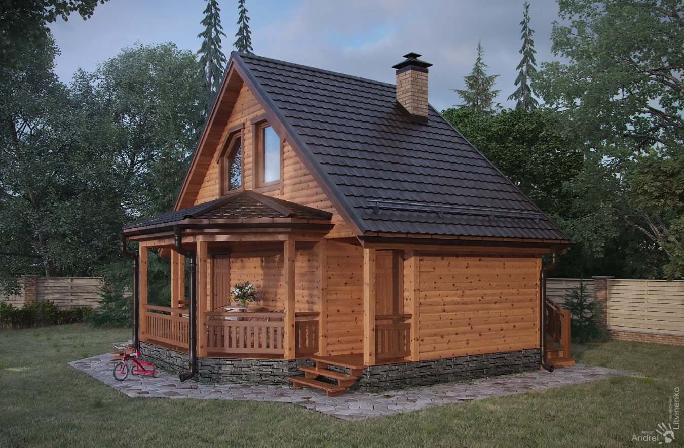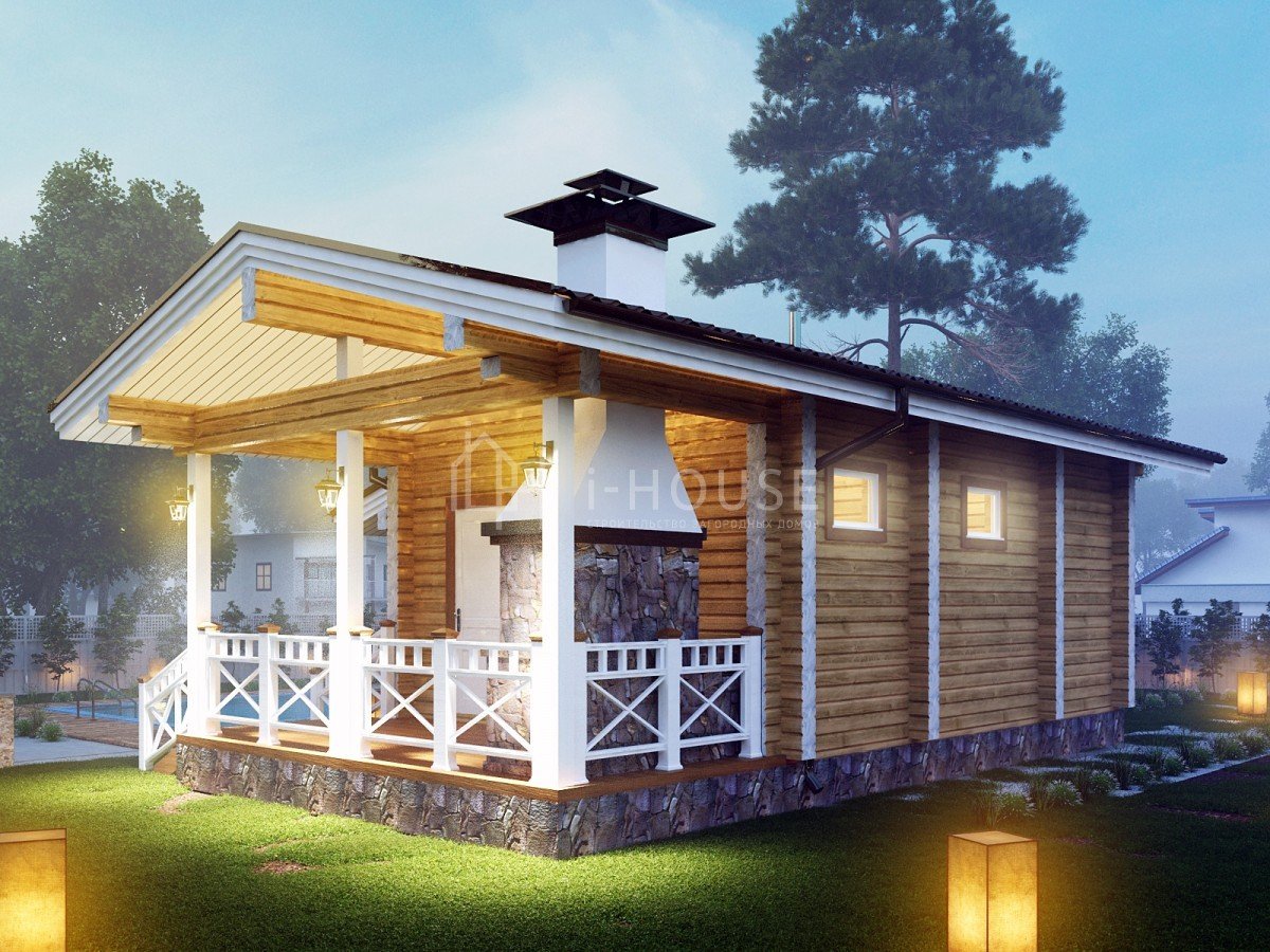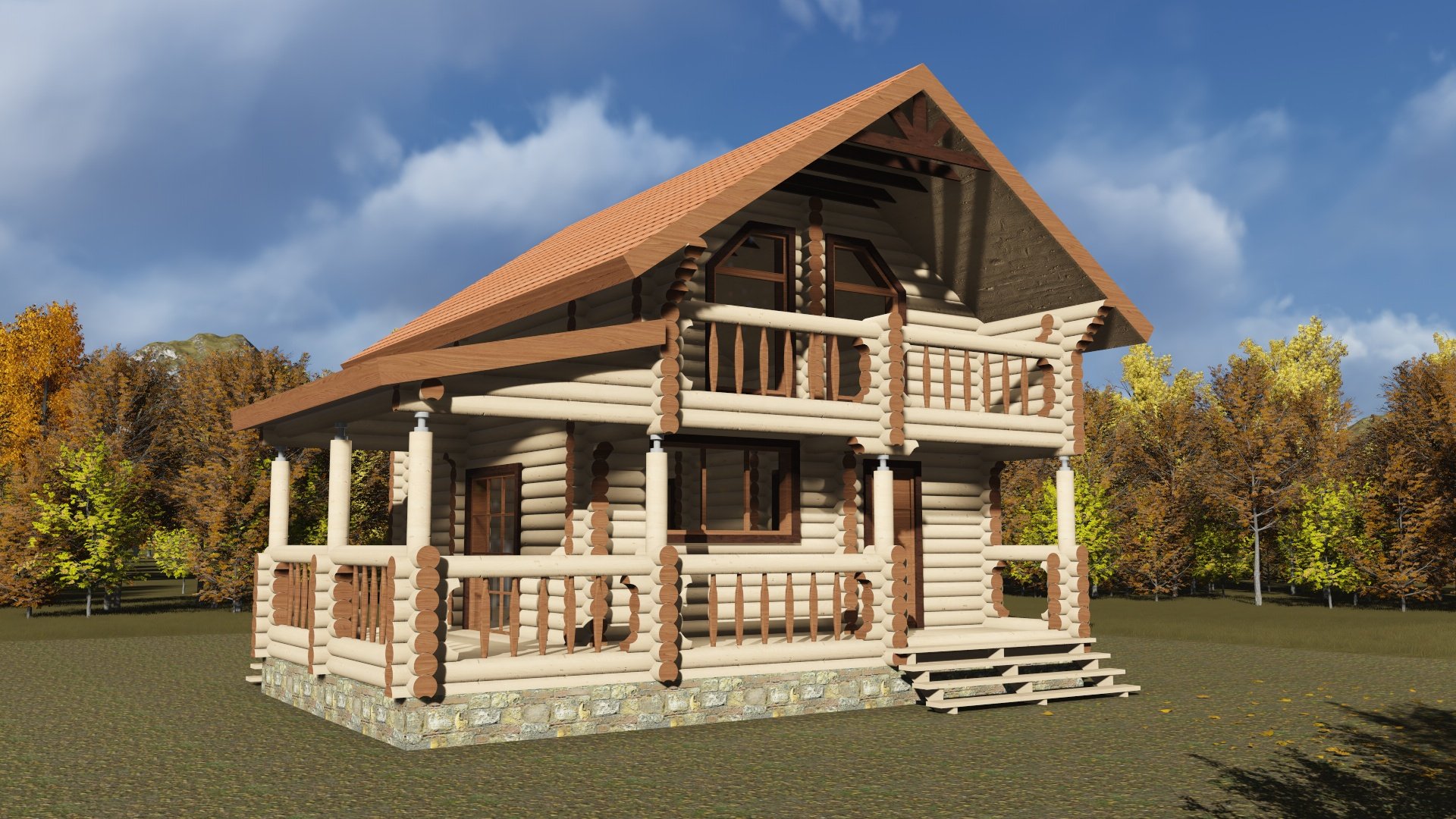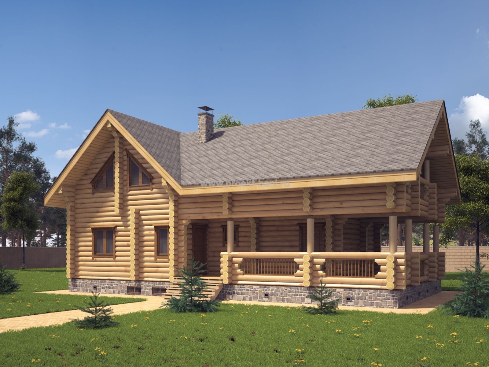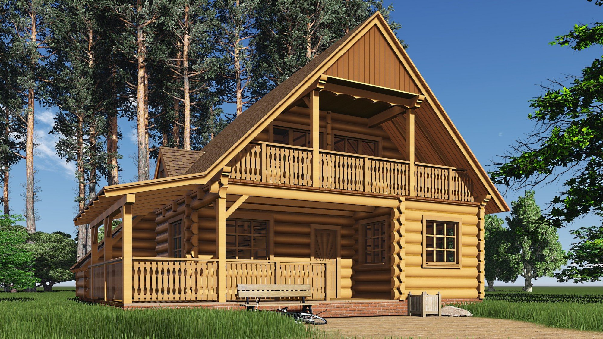 Сруб баня-дом 6х6 с мансардой и верандой из бруса