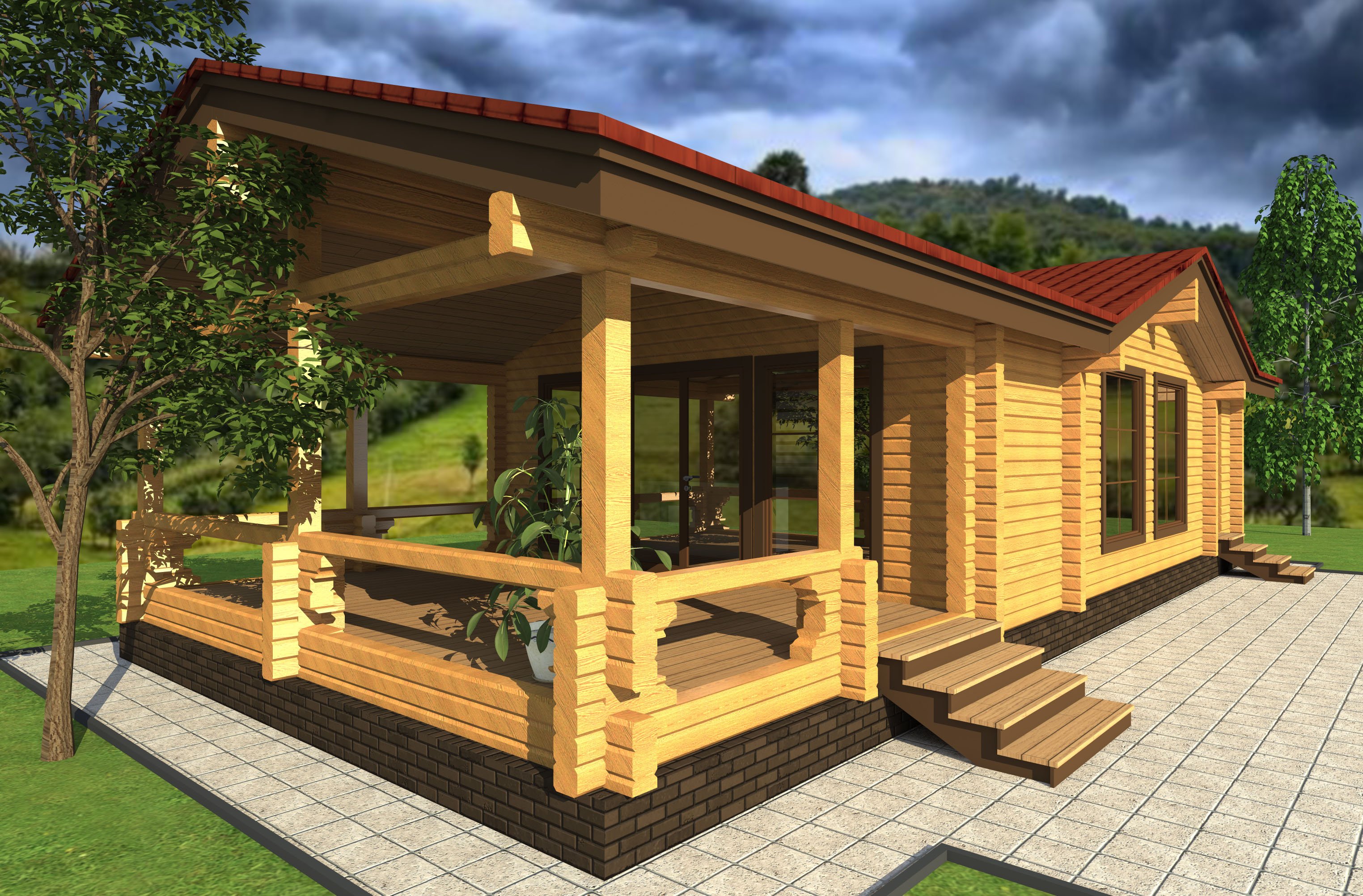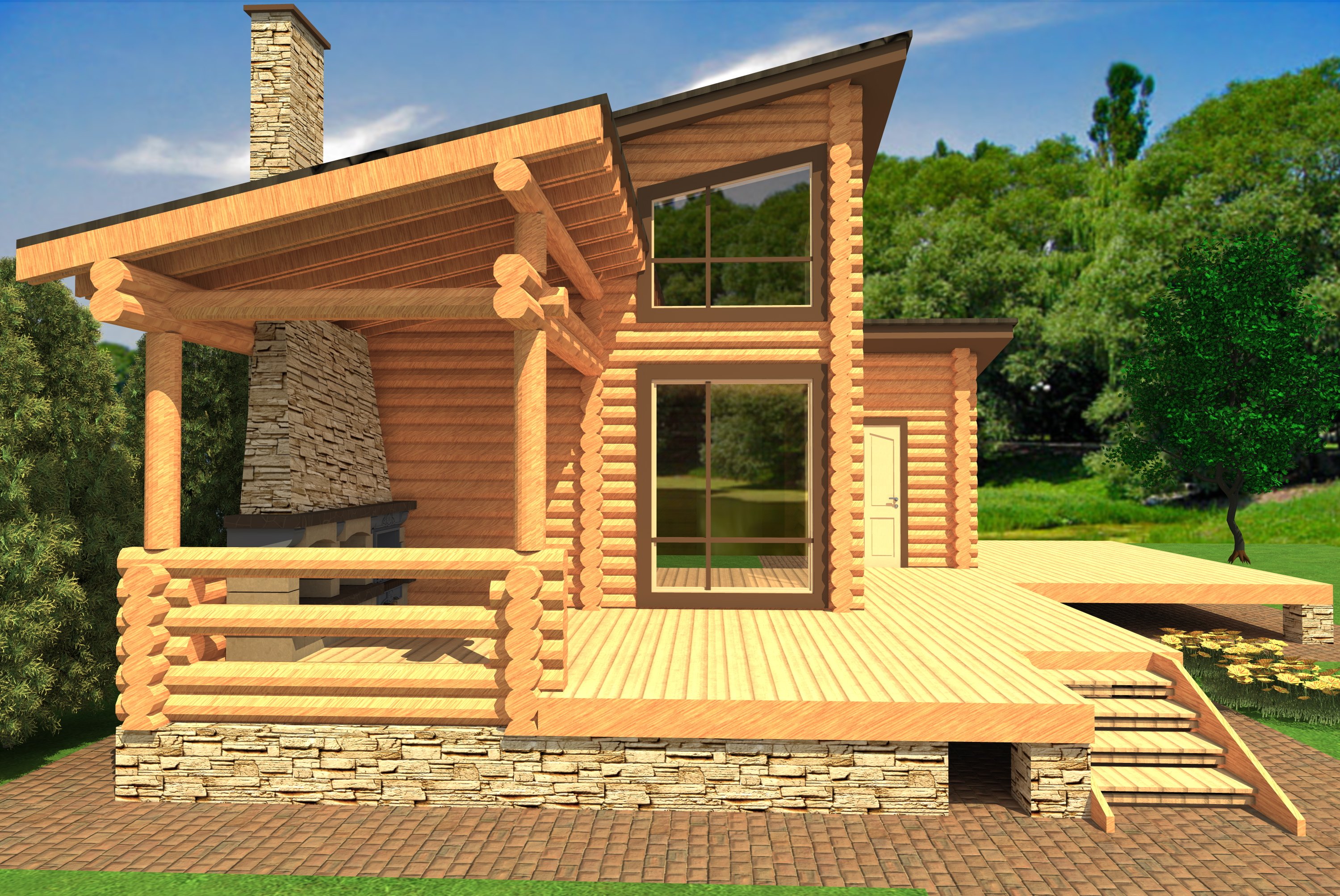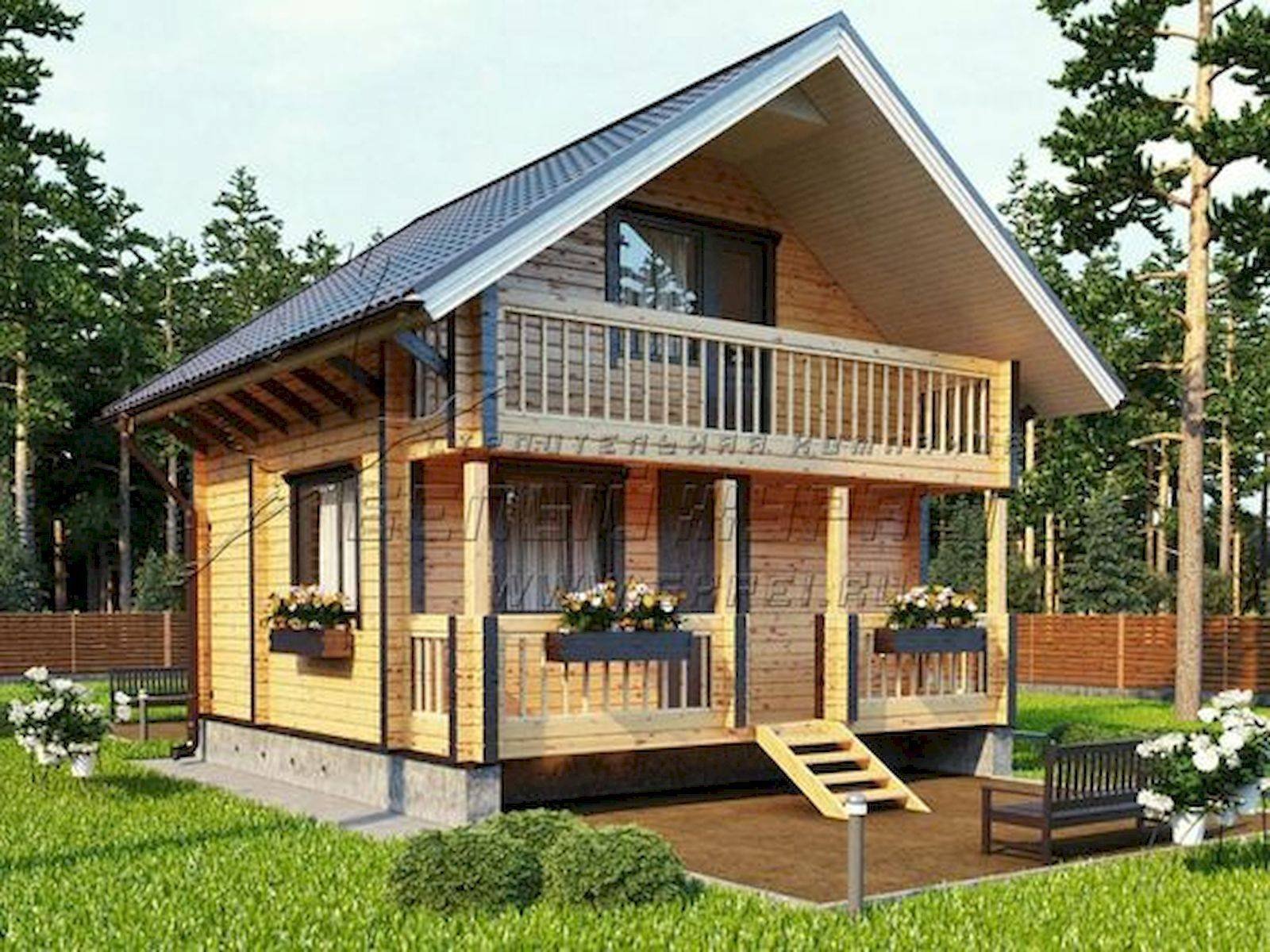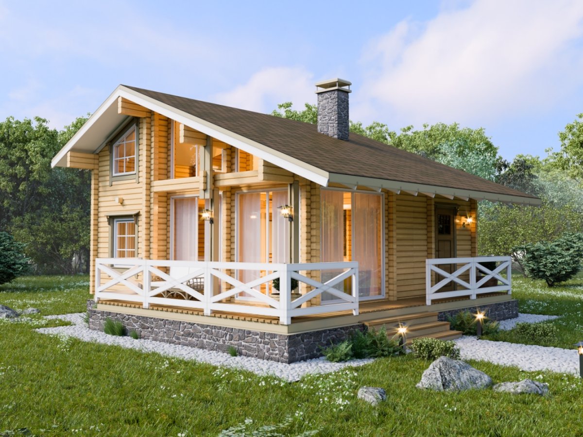 Сруб баня-дом 6х6 с мансардой и верандой из бруса