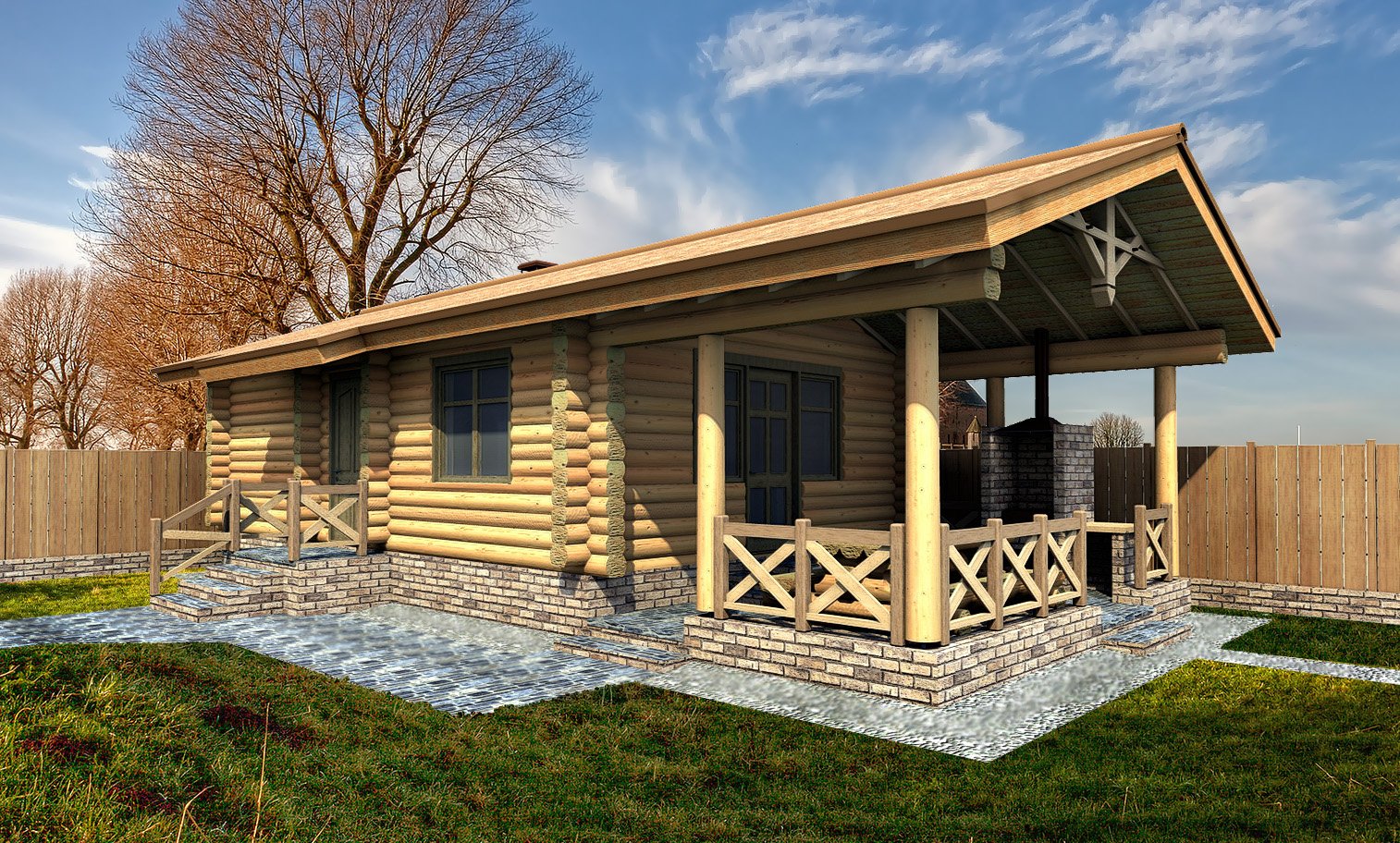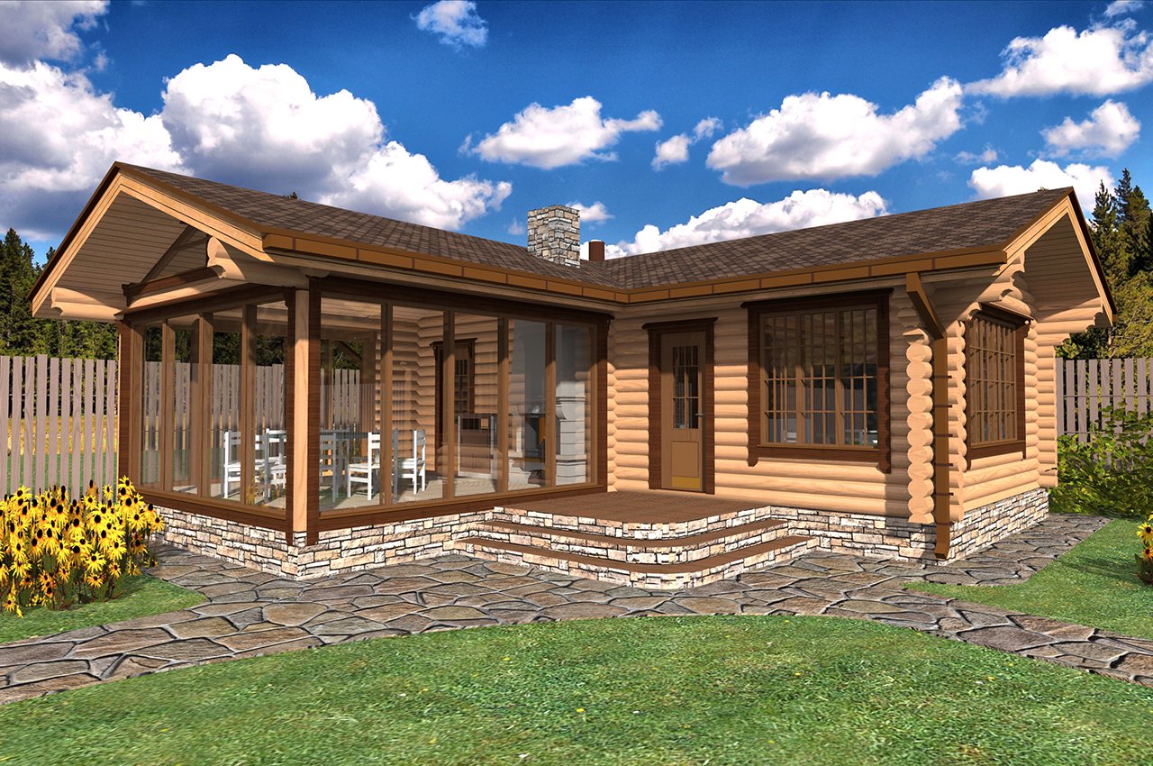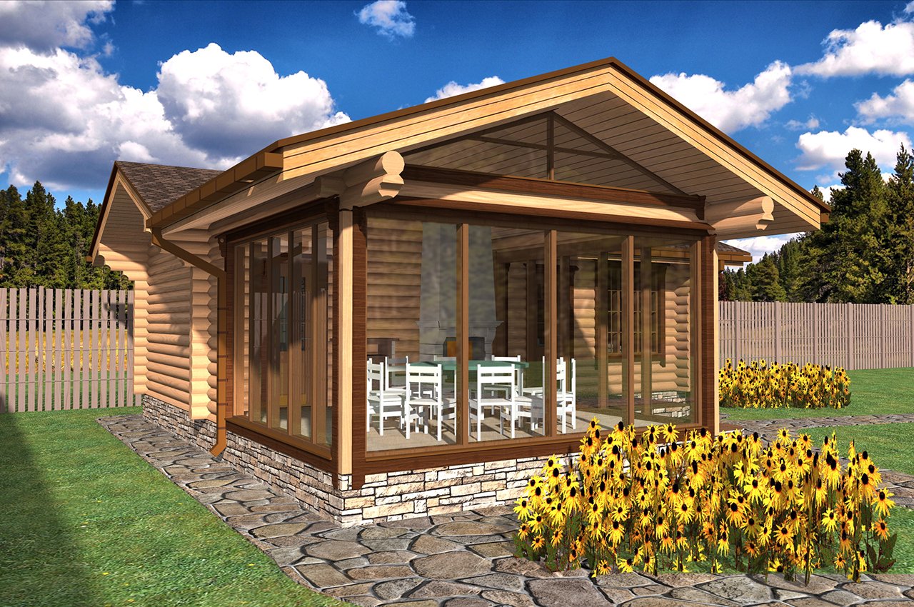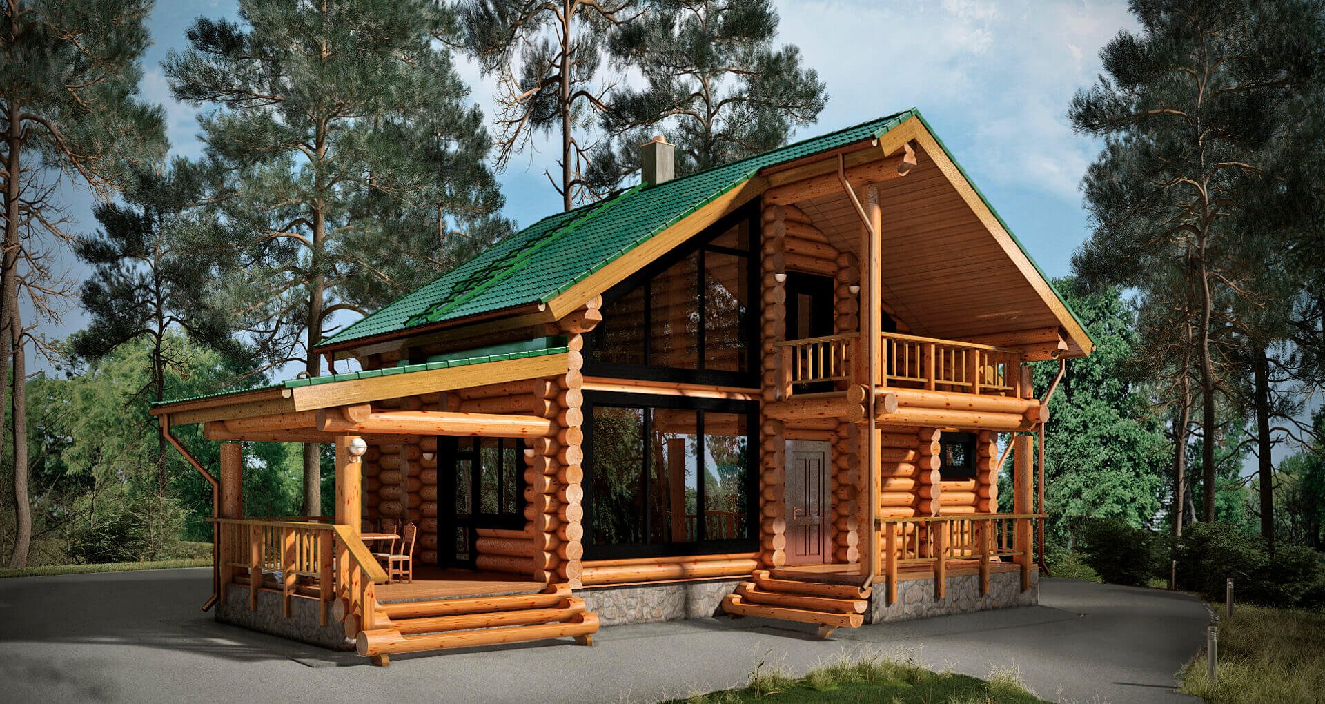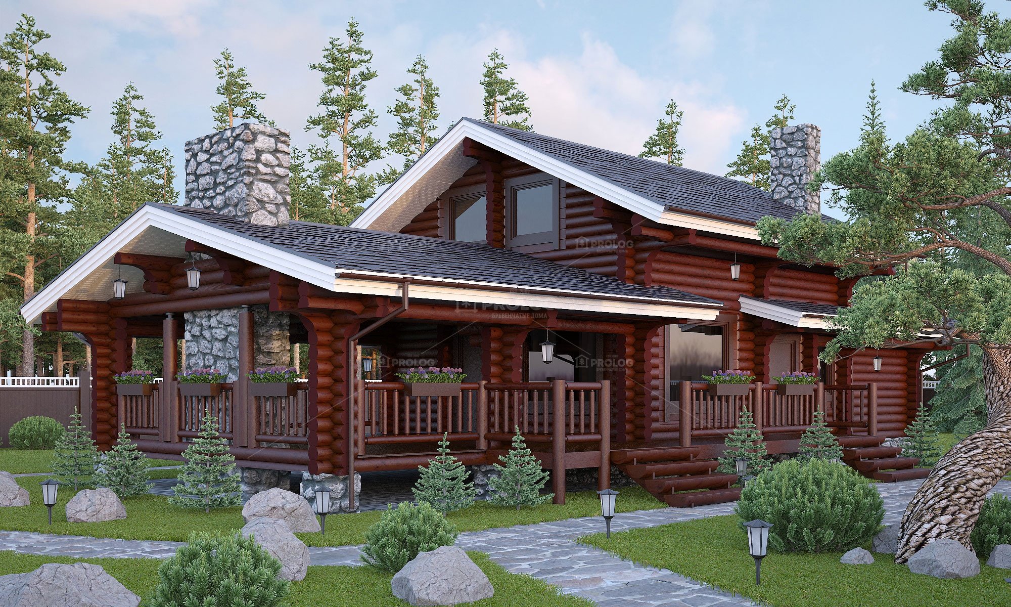 Сруб баня-дом 6х6 с мансардой и верандой из бруса