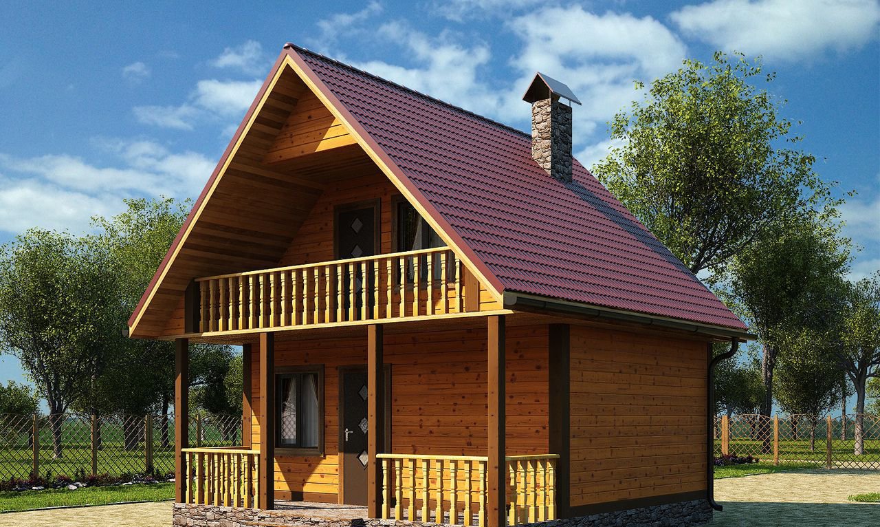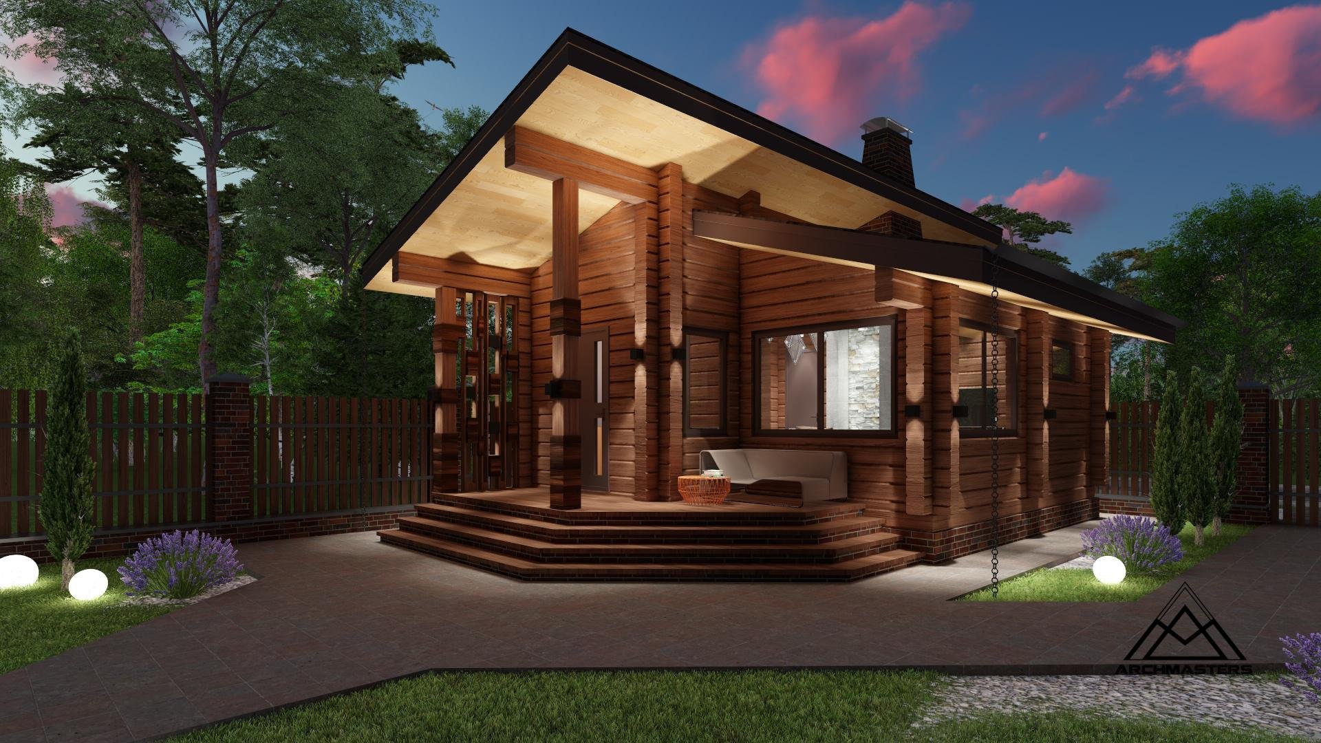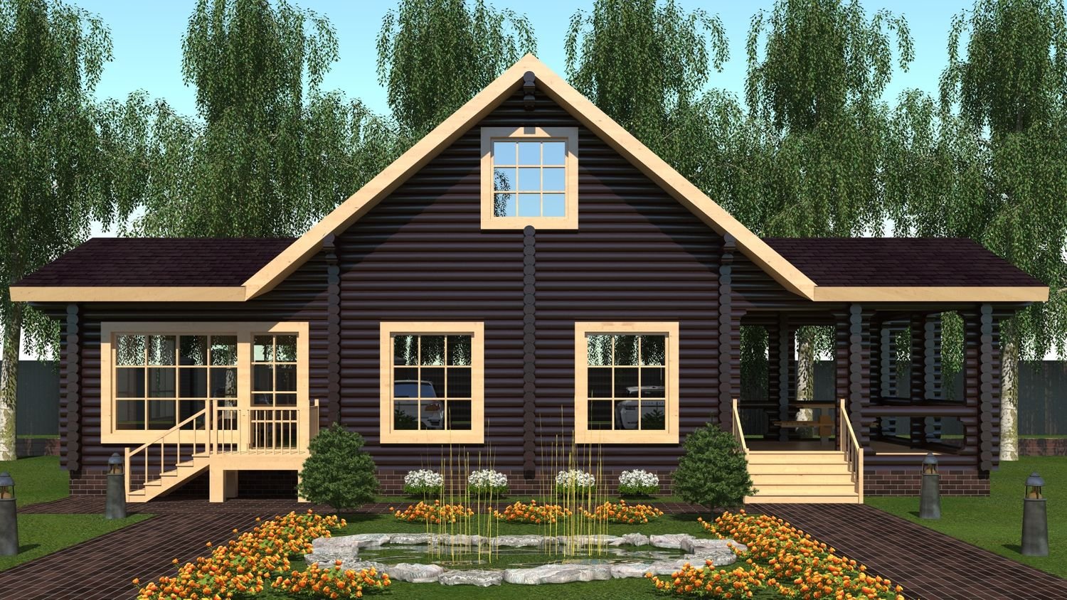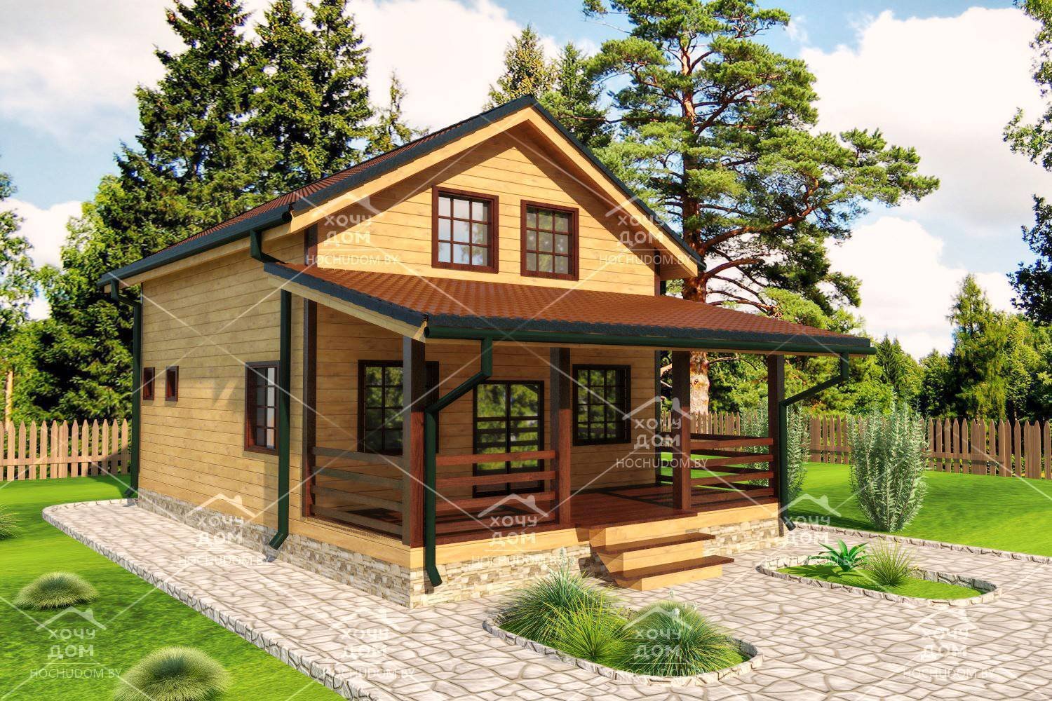 Дом-баня из бруса 8х8 с мансардой и верандой