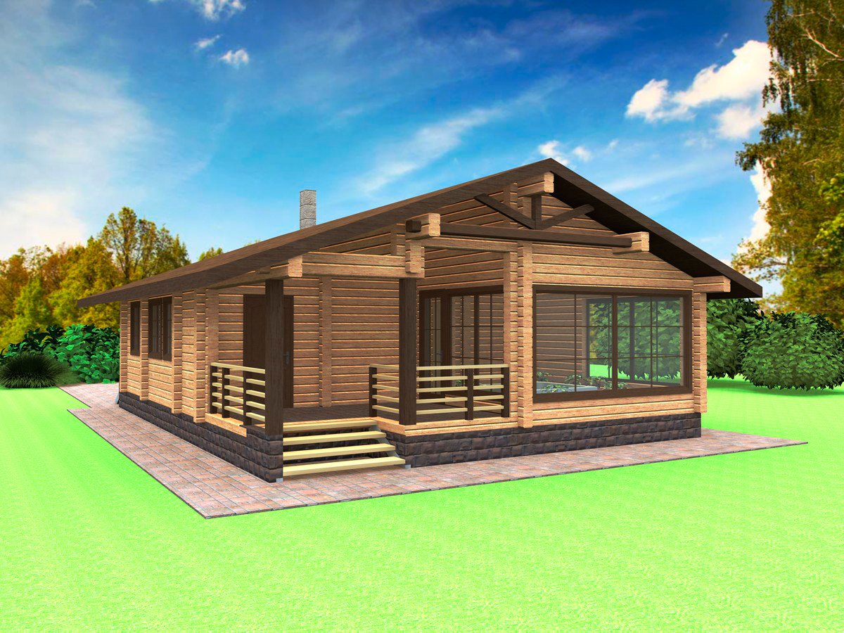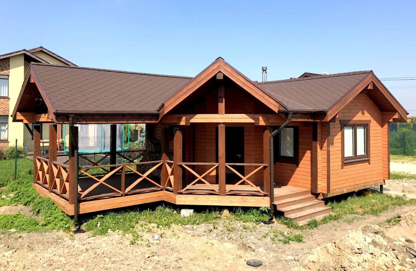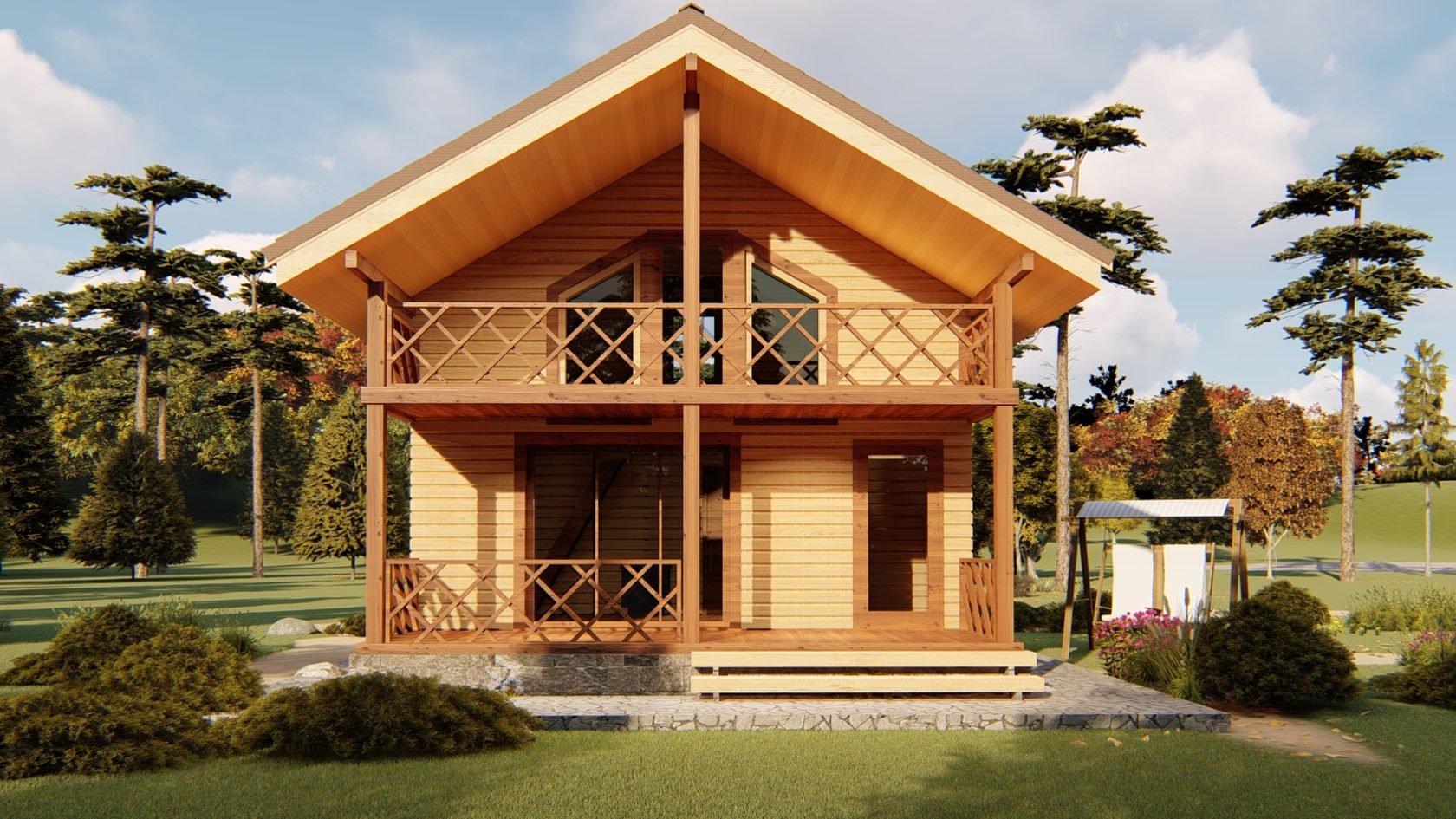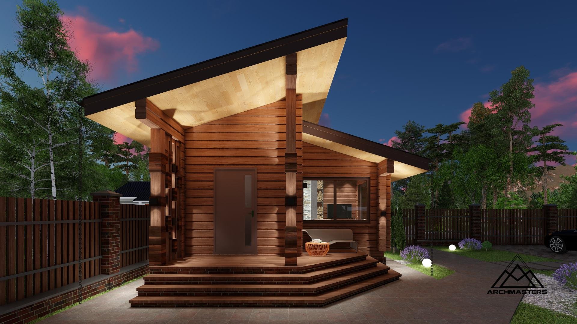 Дом-баня из бруса 8х8 с мансардой и верандой