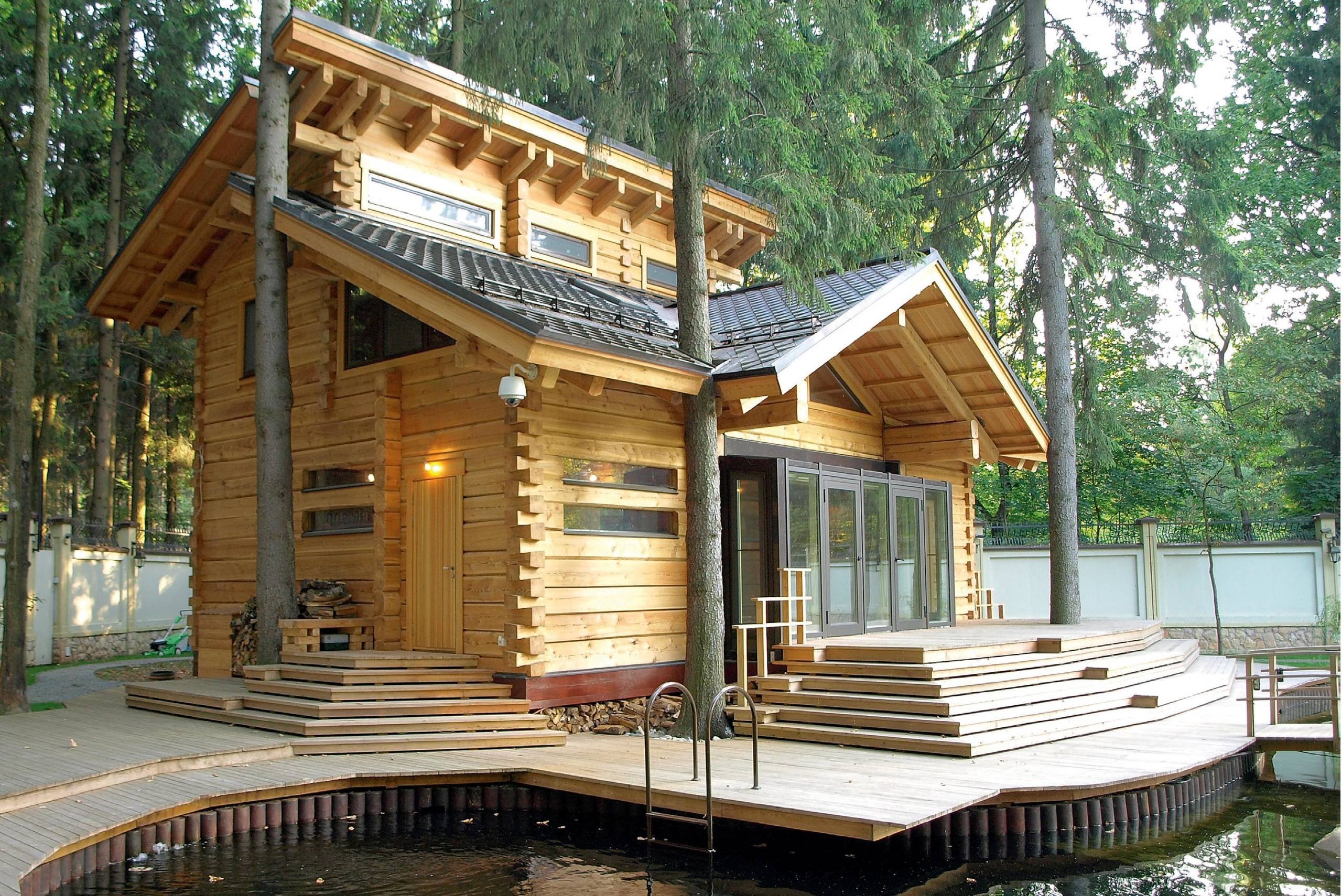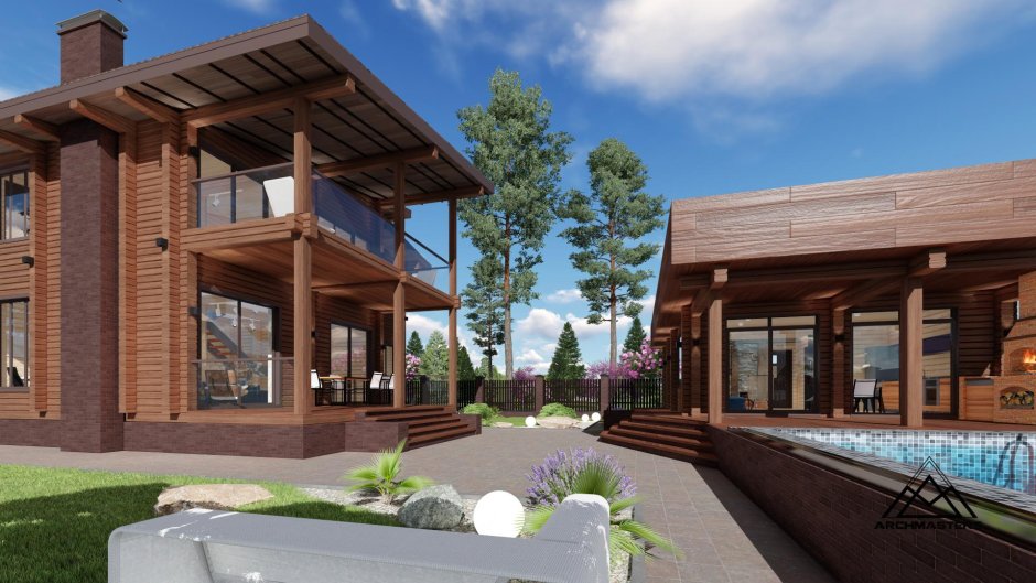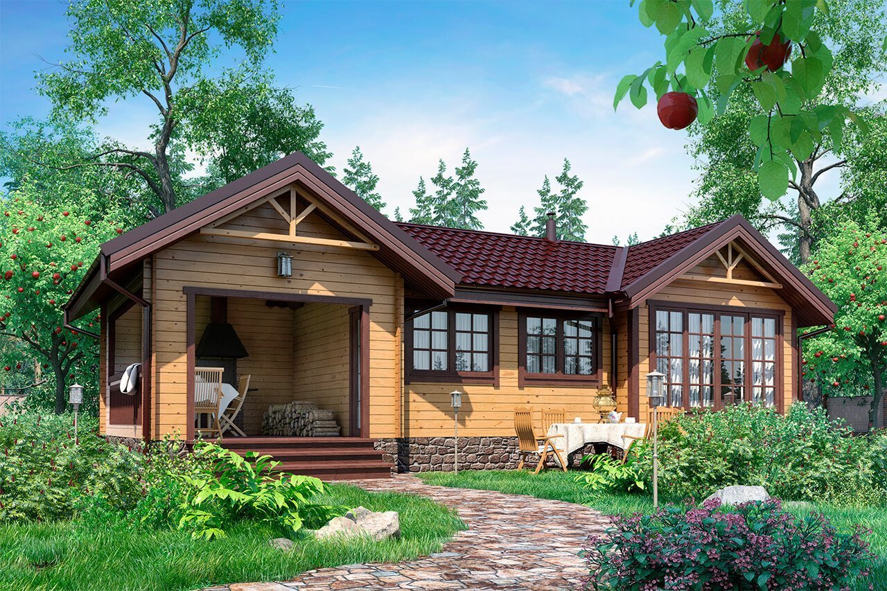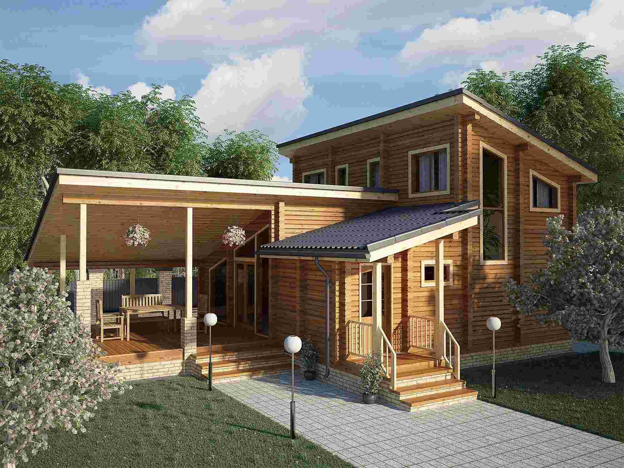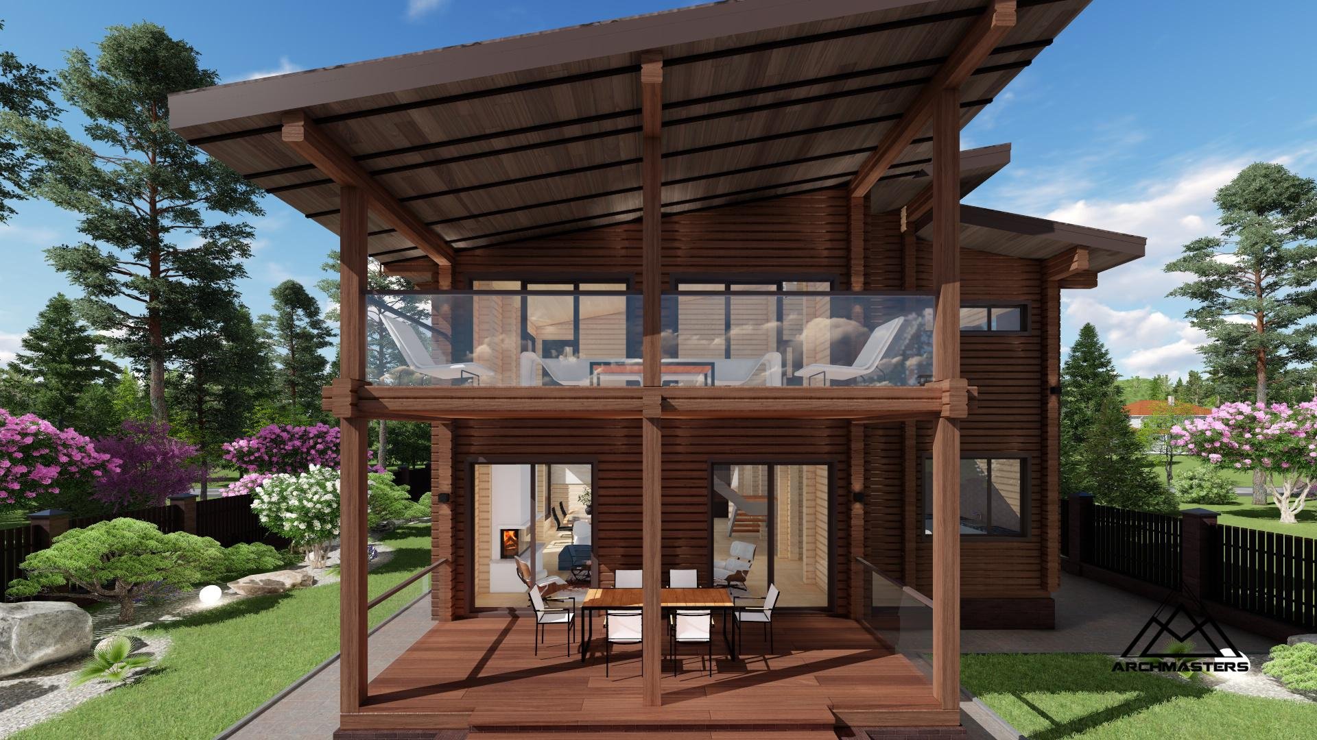 Дом-баня из бруса 8х8 с мансардой и верандой