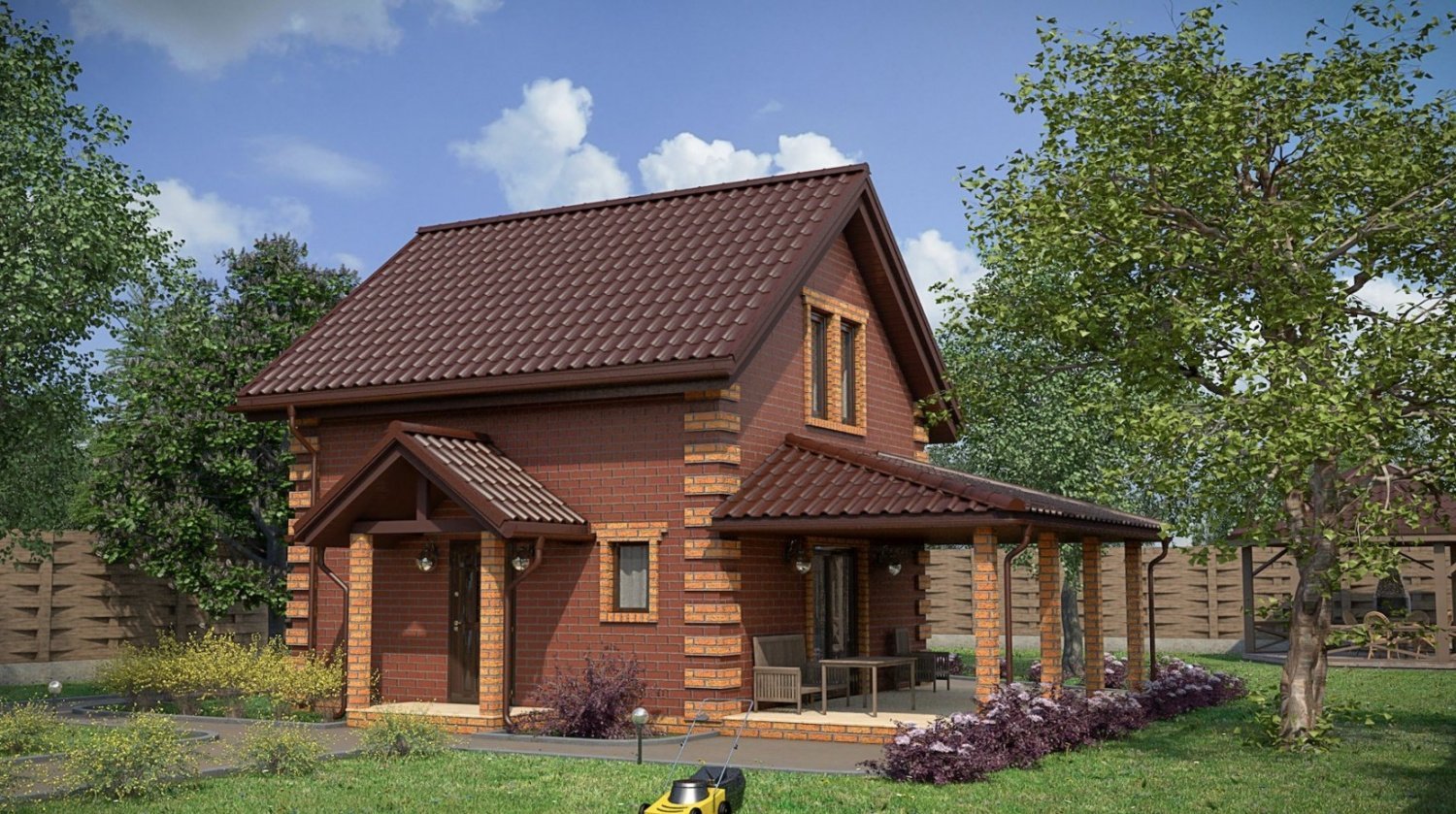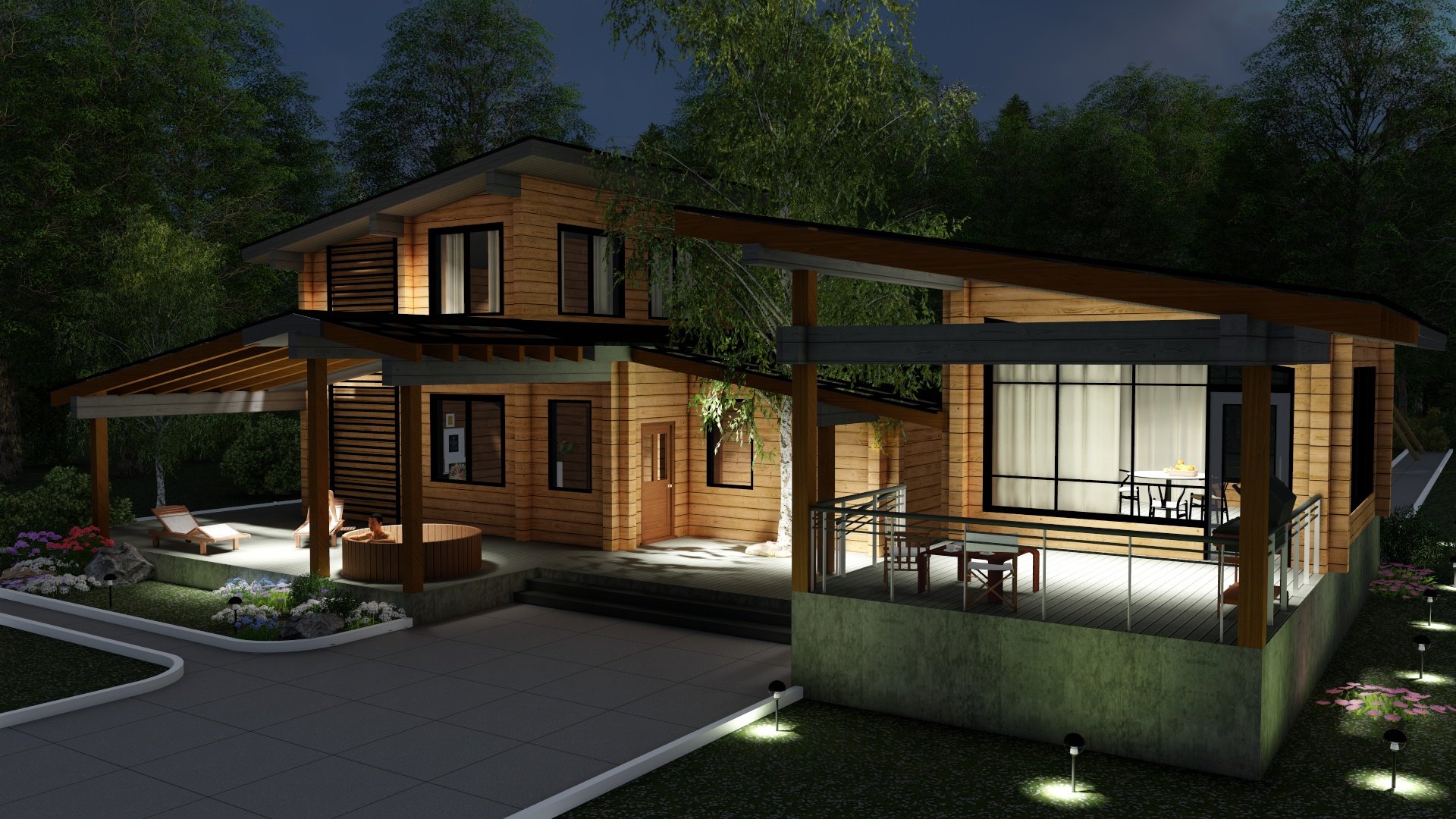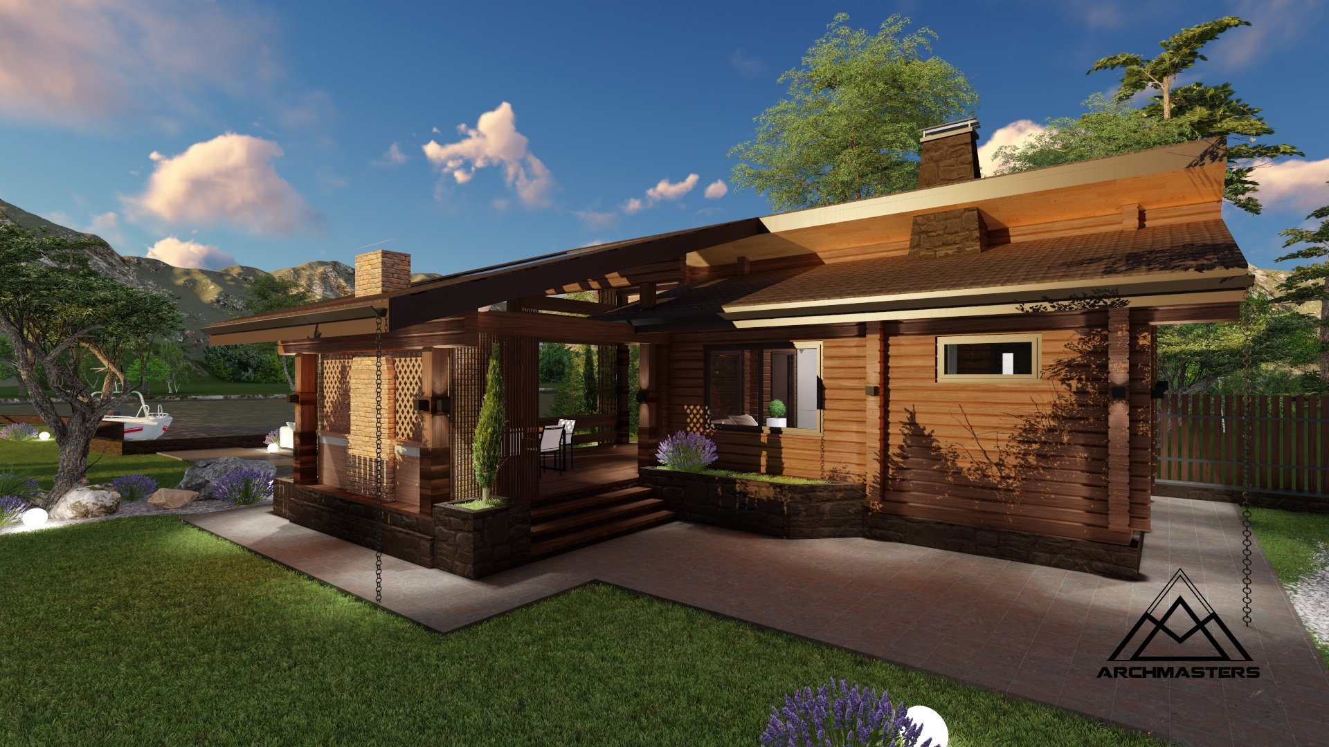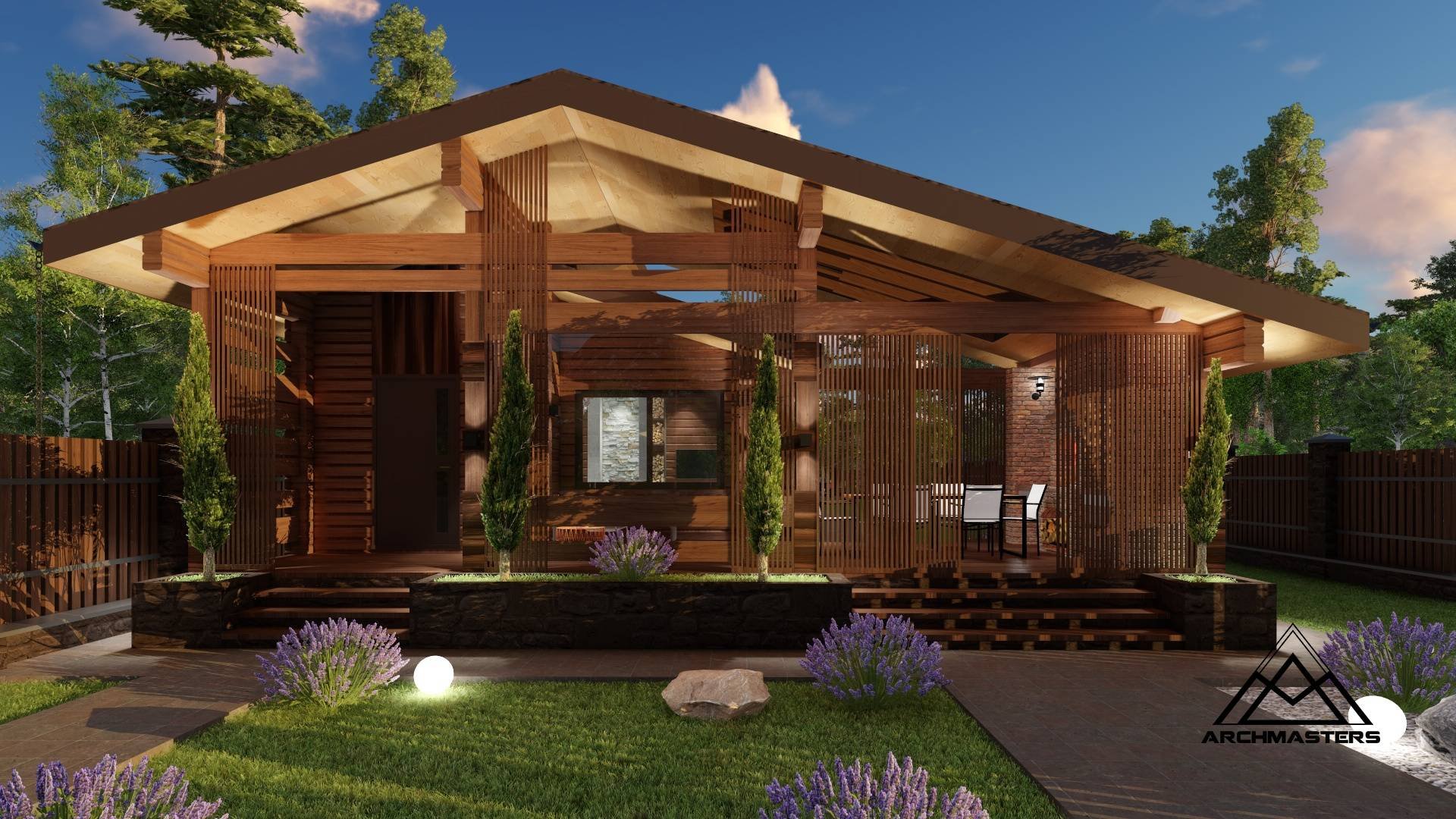 Дом-баня из бруса 8х8 с мансардой и верандой
