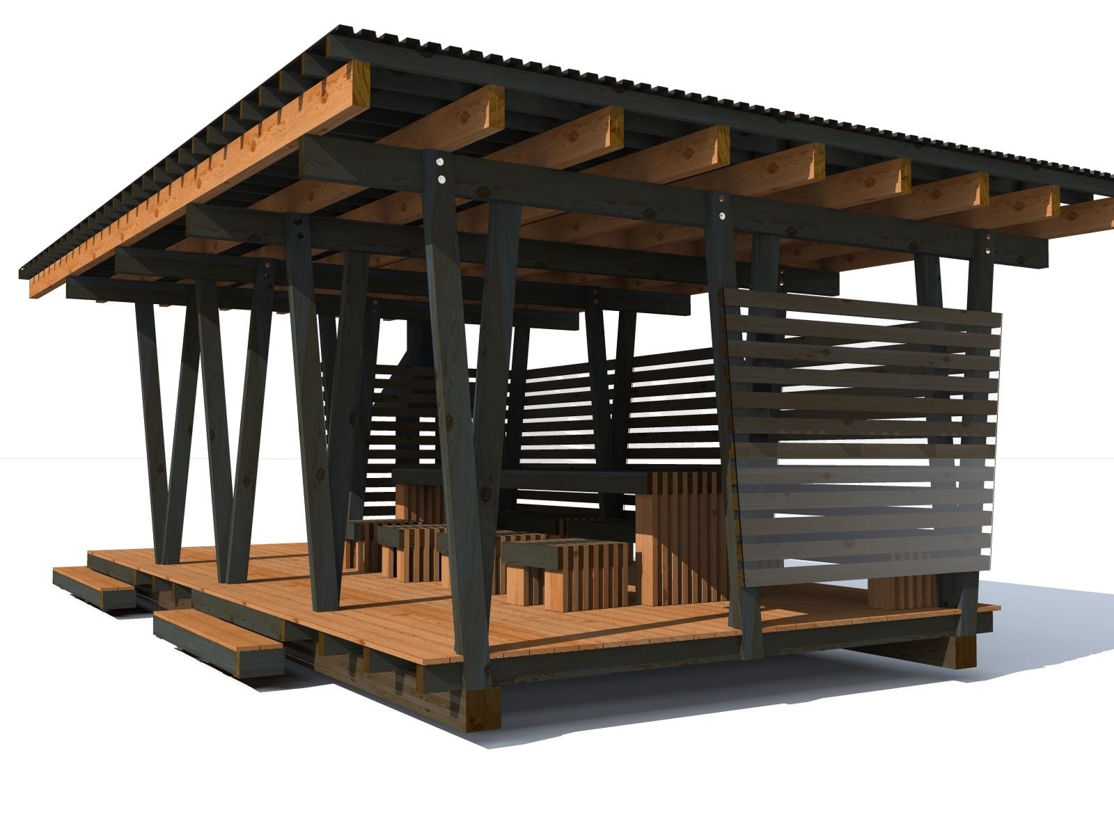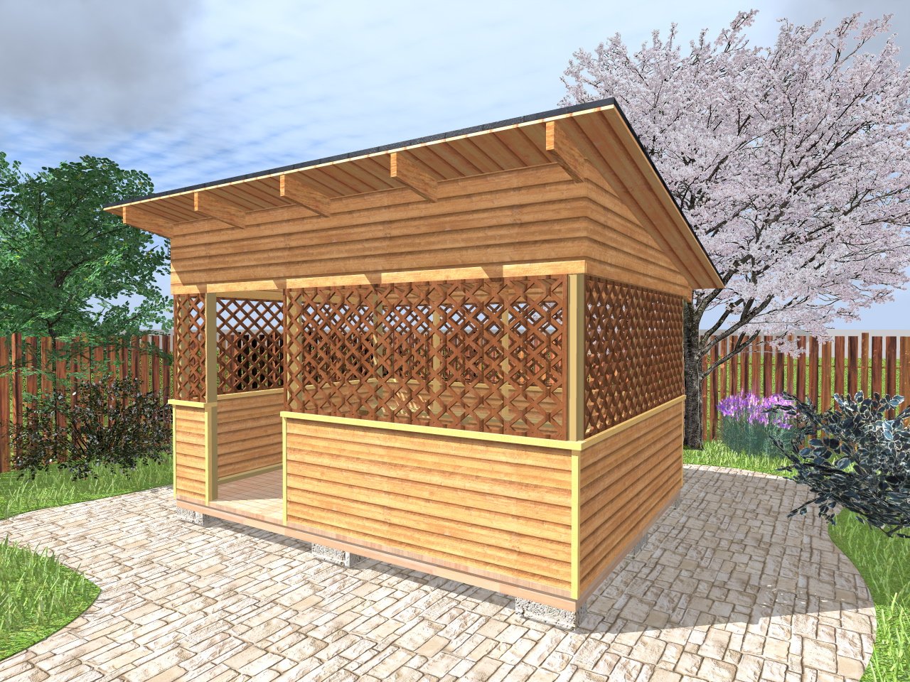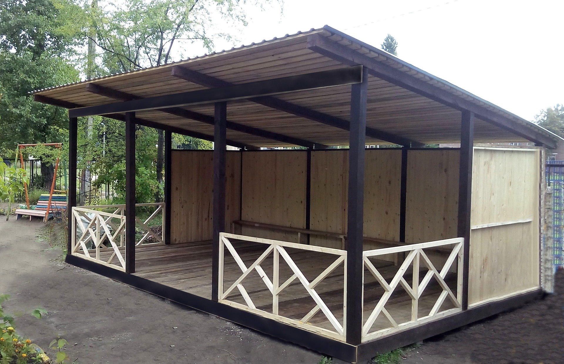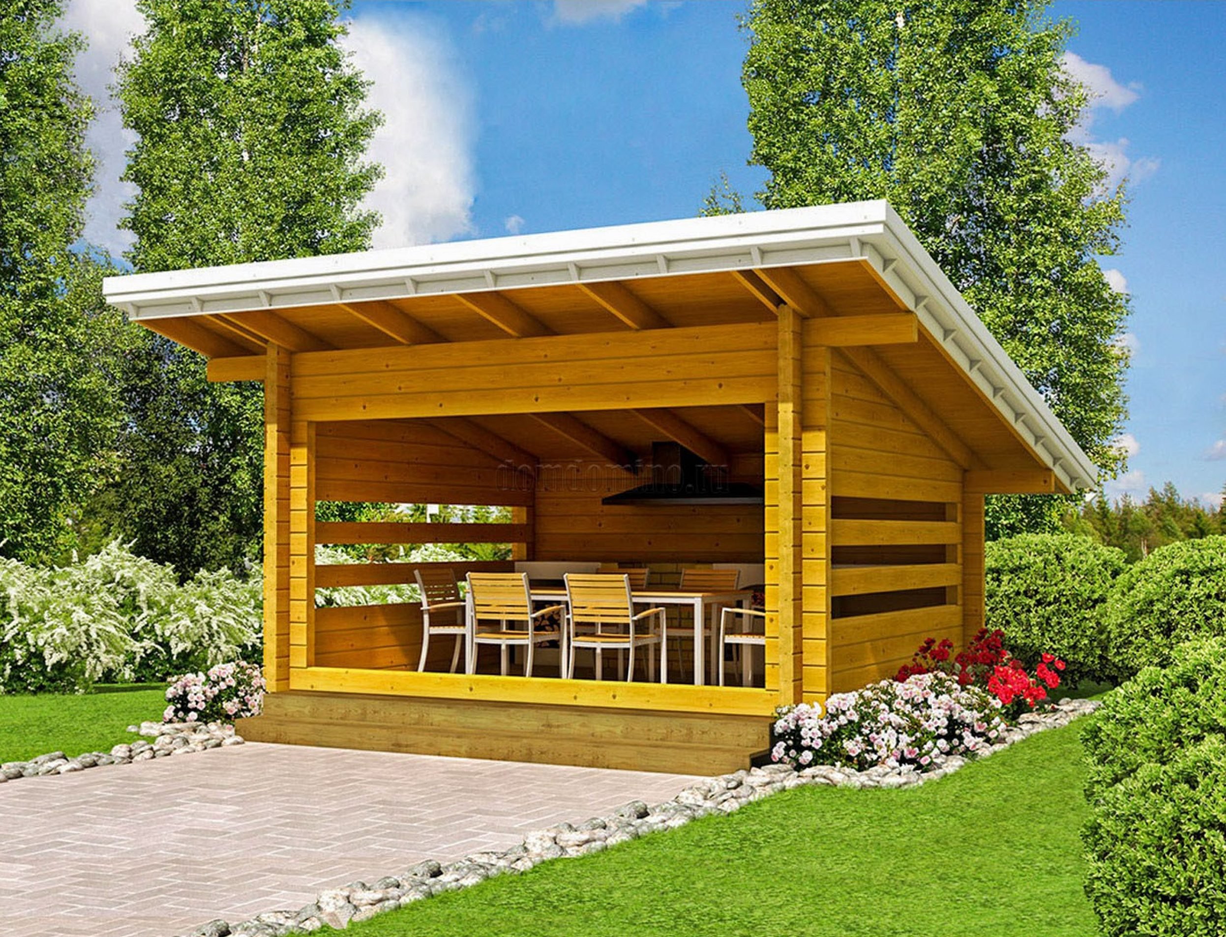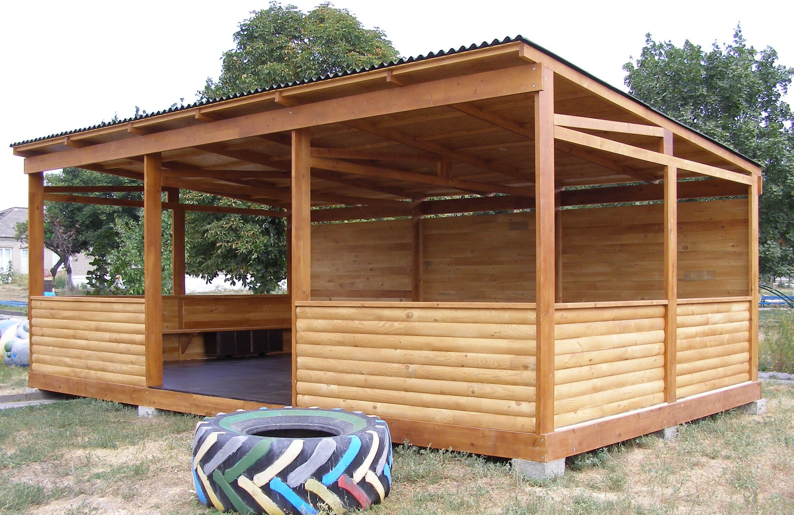 Беседка из дерева односкатная