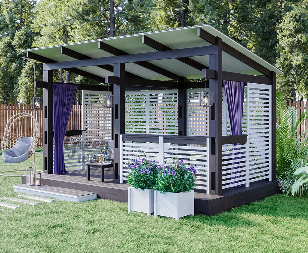 Беседка из дерева односкатная «Грин Вуд»