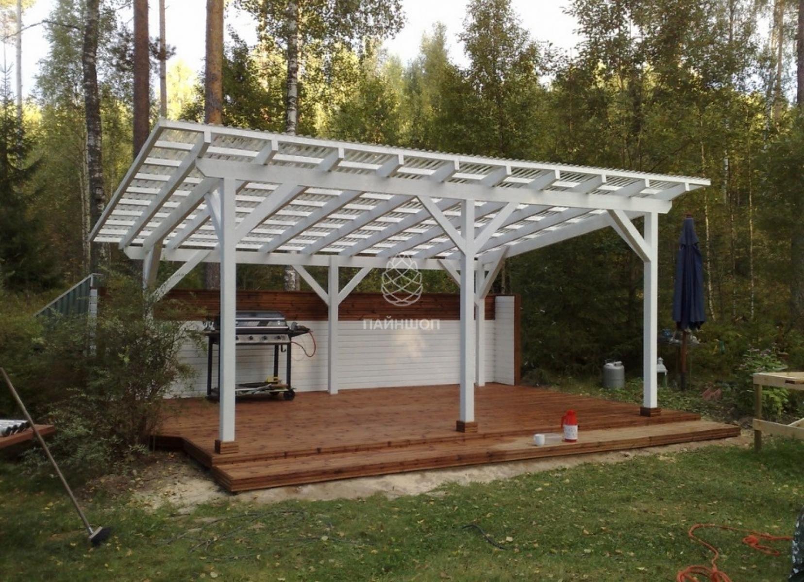Деревянный навес под мангал