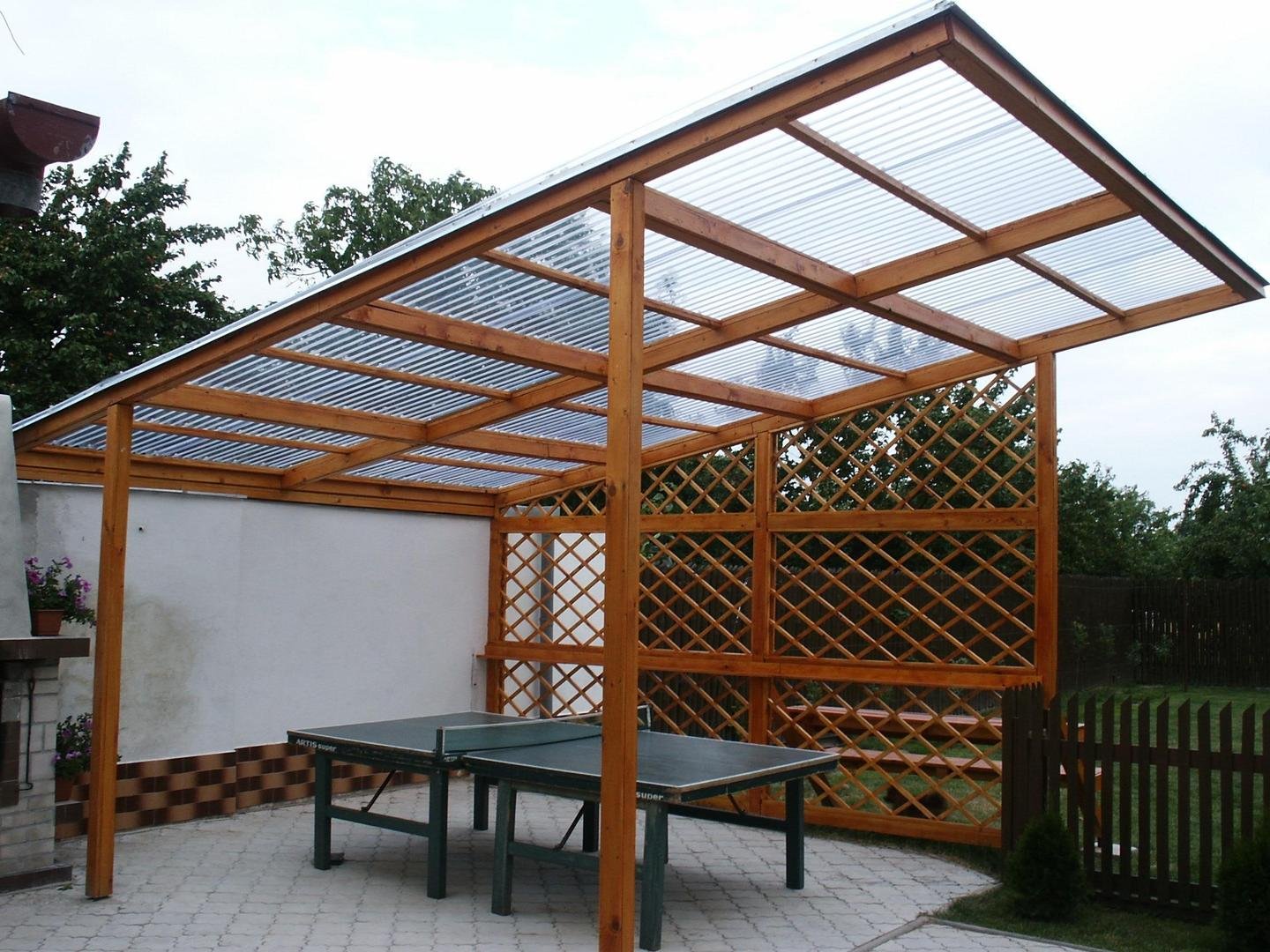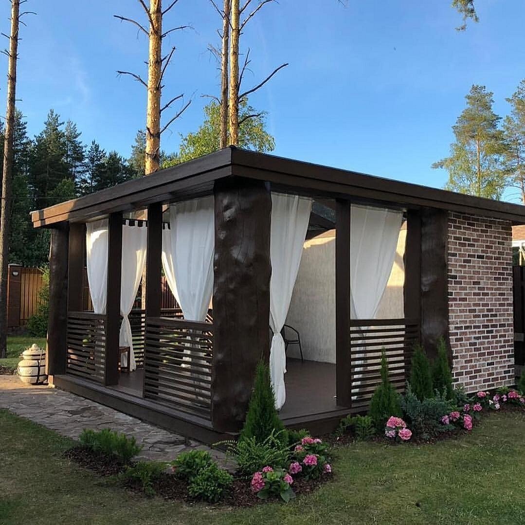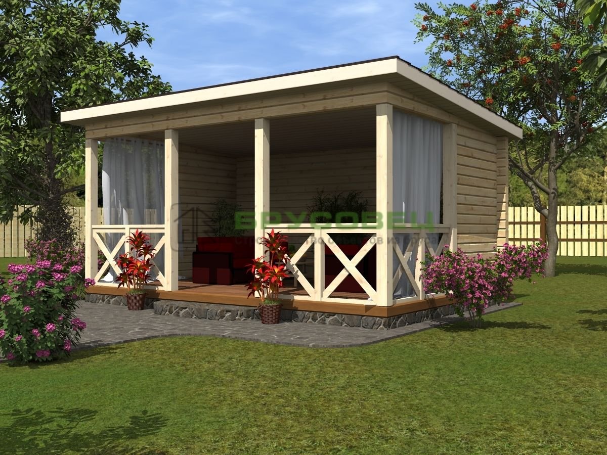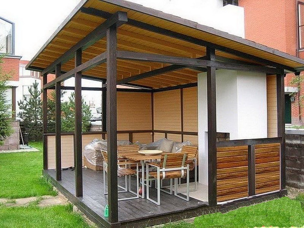 Беседка пристроенная к дому с односкатной крышей