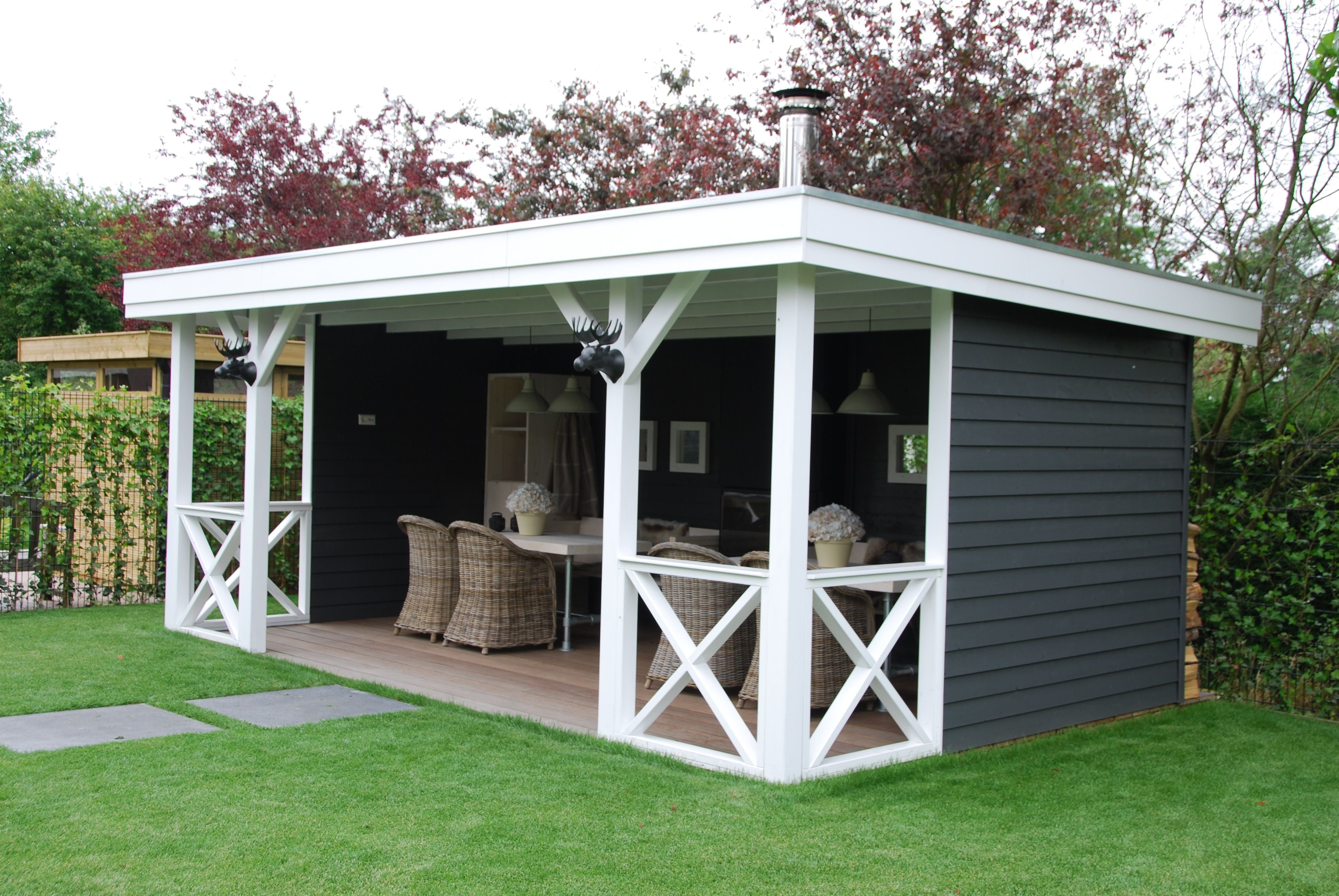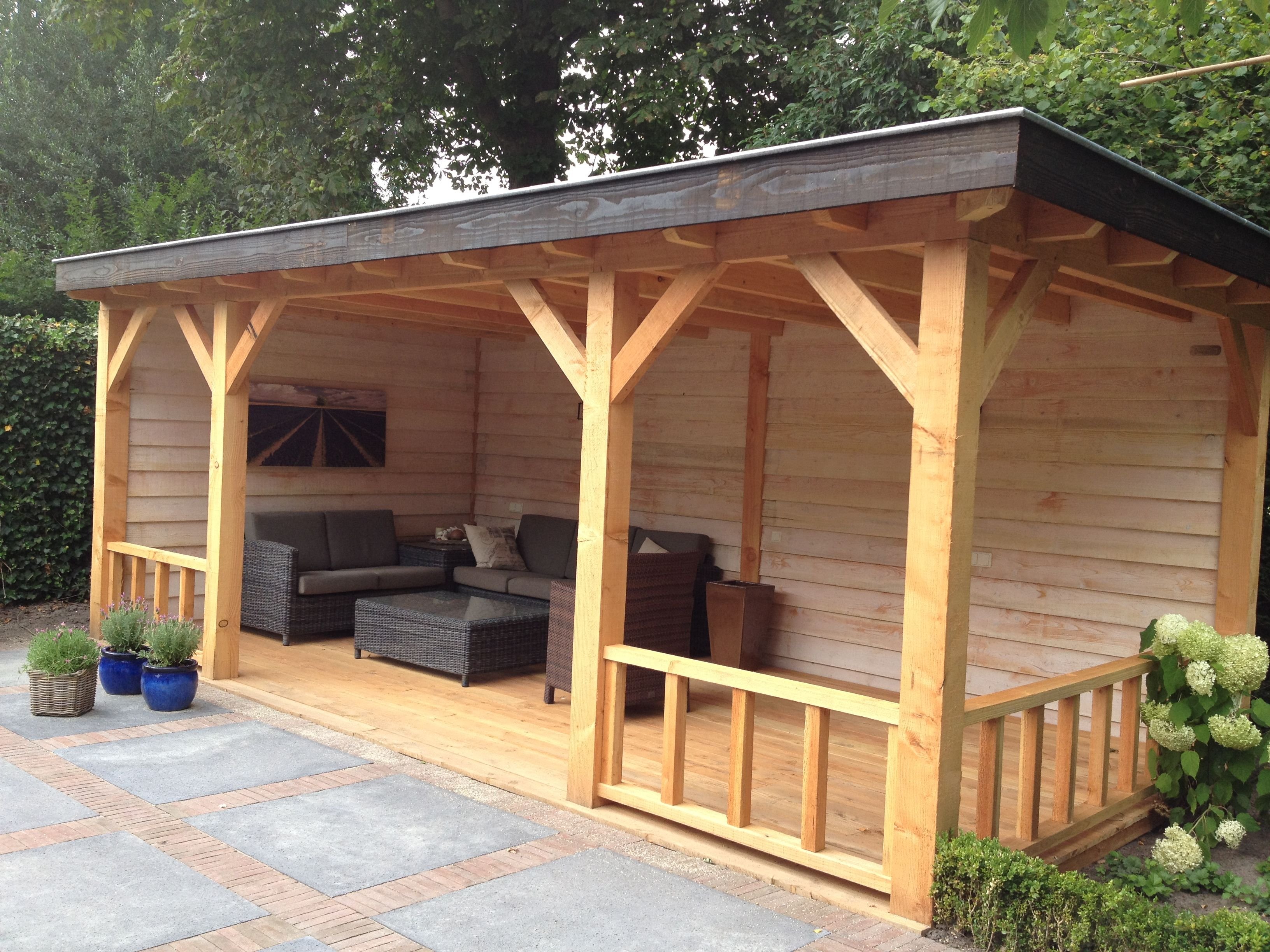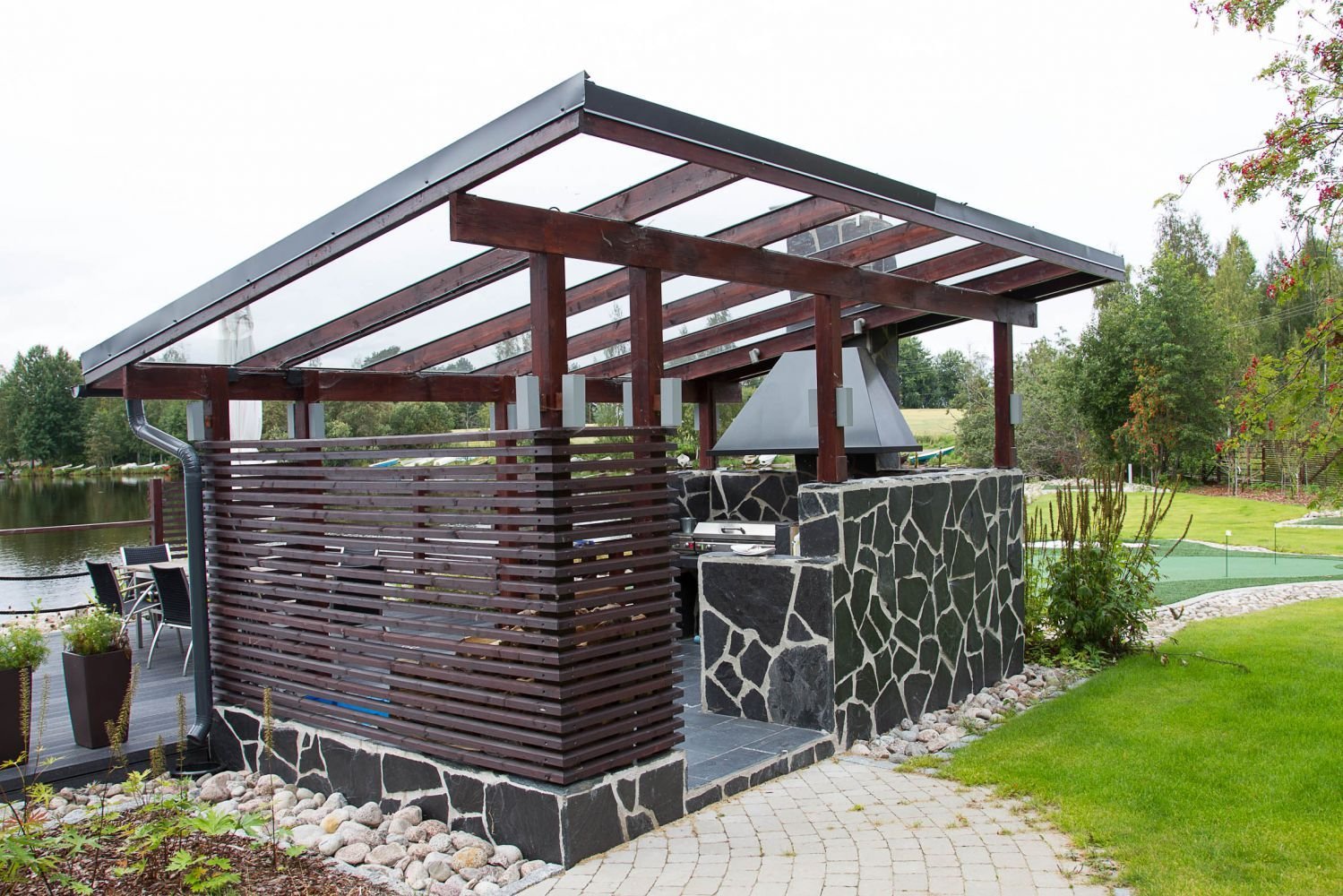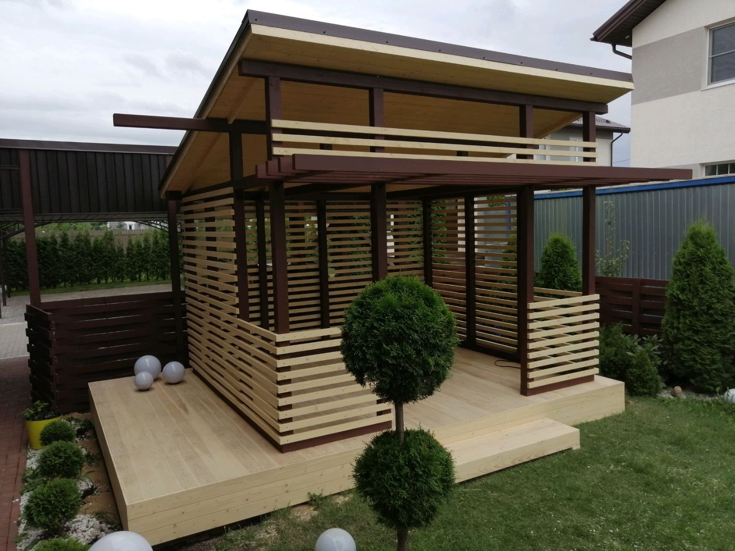 Беседка пристроенная к дому с односкатной крышей