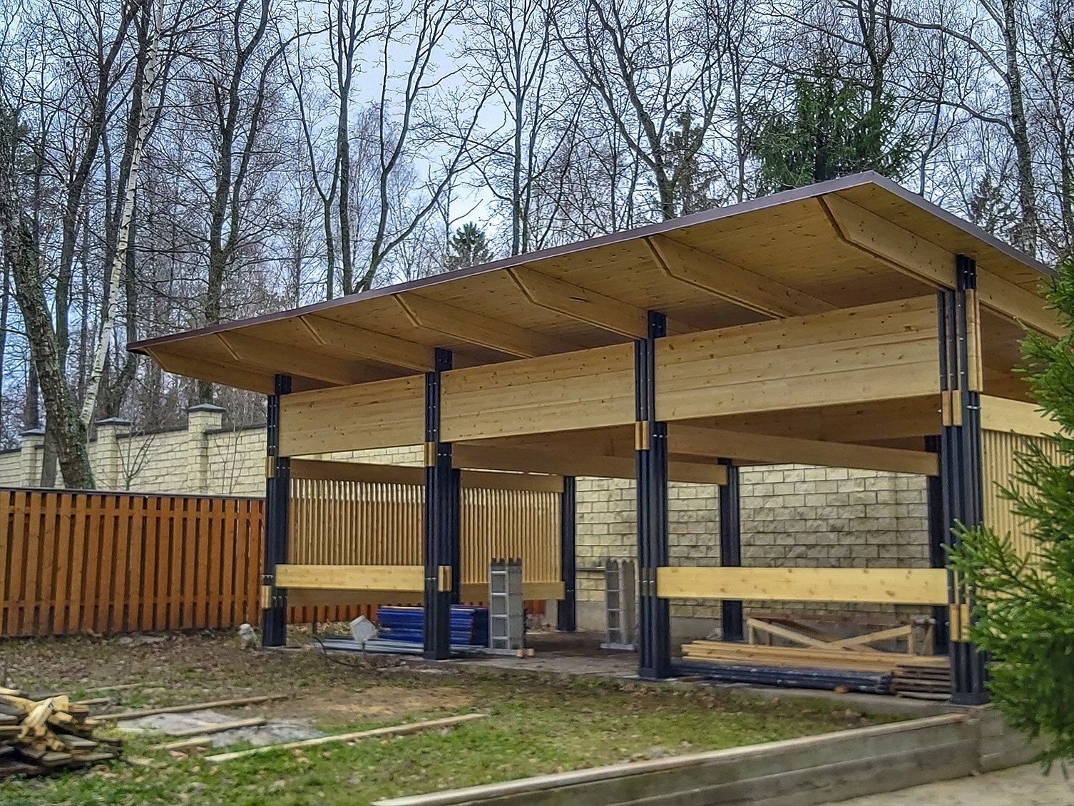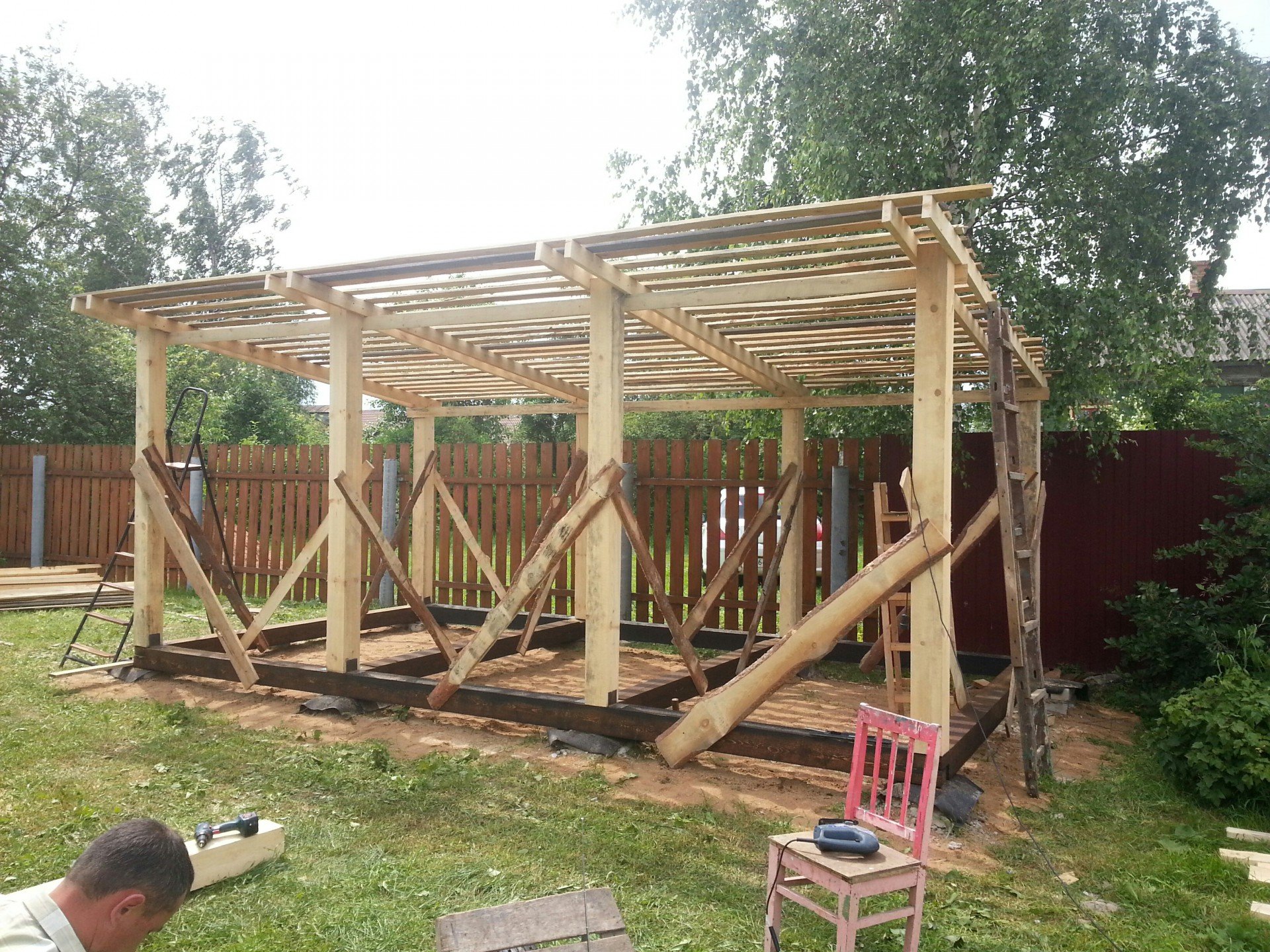 Навес деревянный односкатный 42 МХ 5м