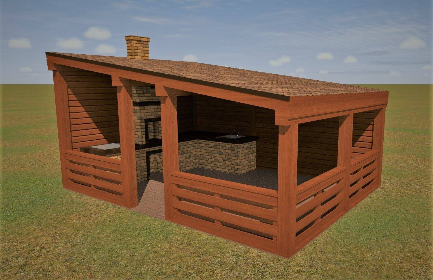 Беседка с барбекю и мангалом с односкатной крышей