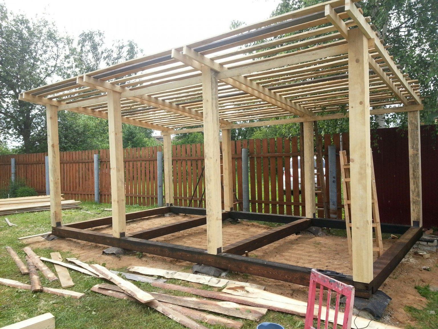 Навес из бруса 100х100 односкатный