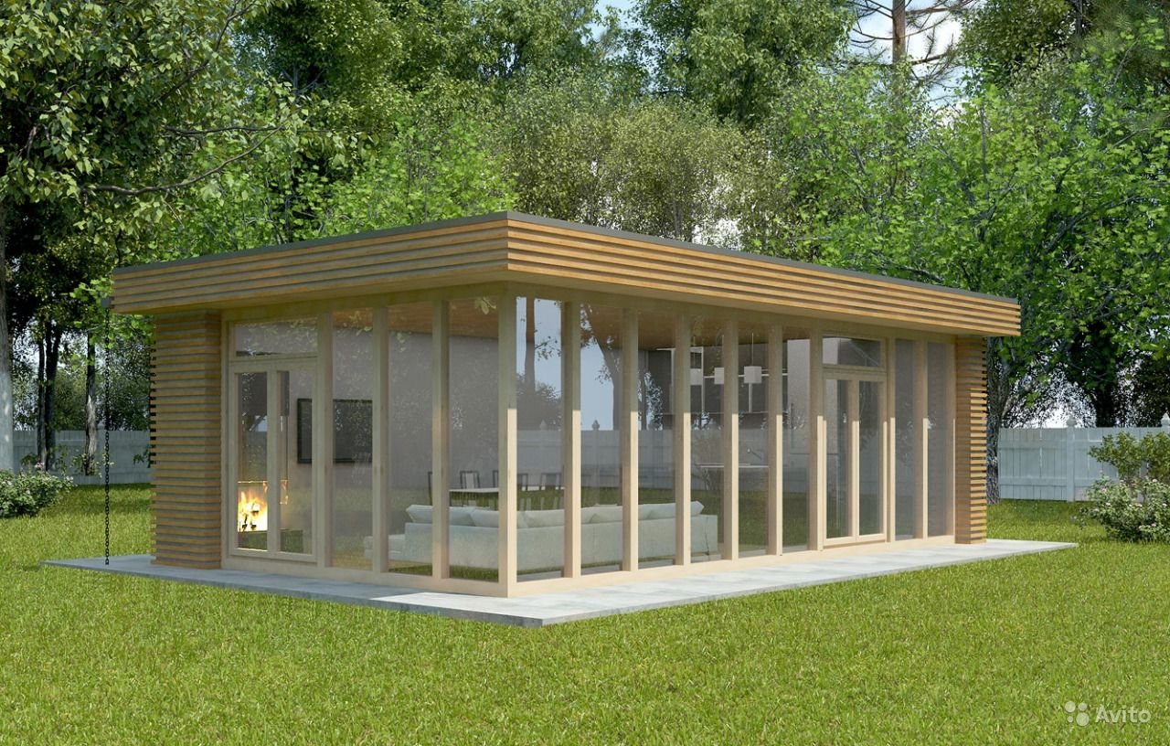Застекленная беседка с односкатной крышей