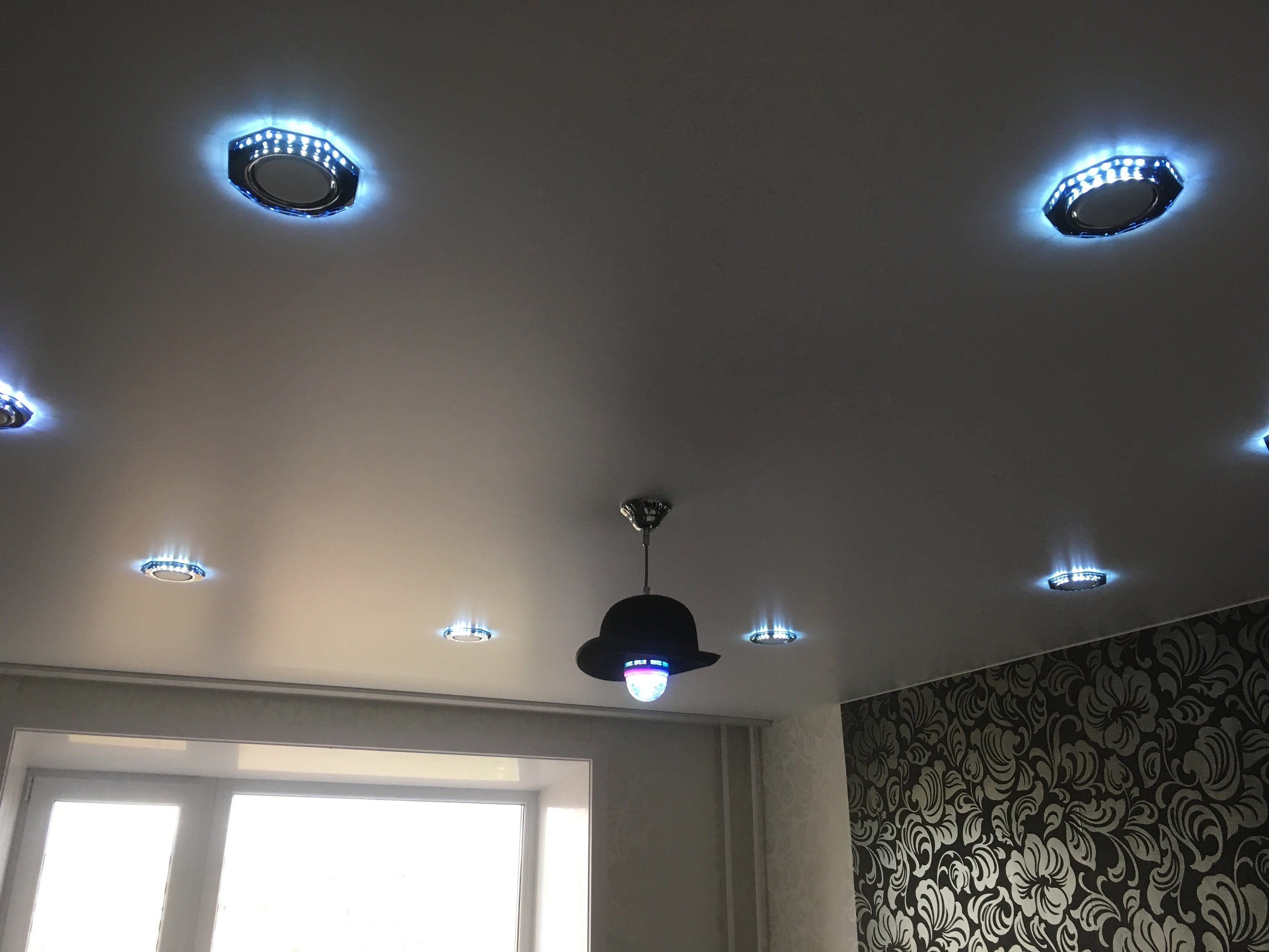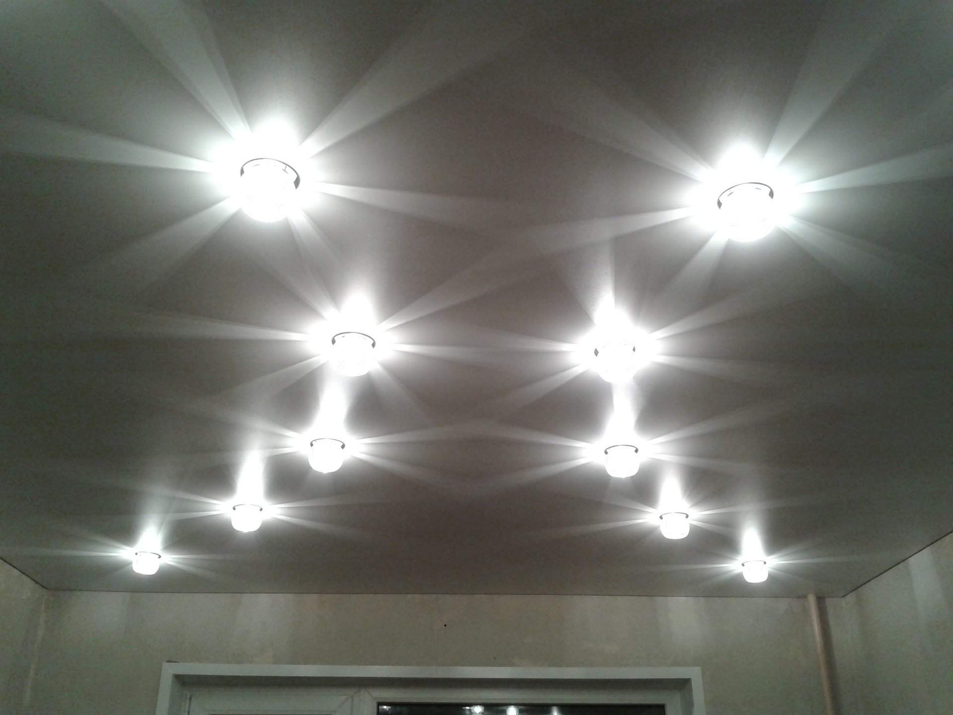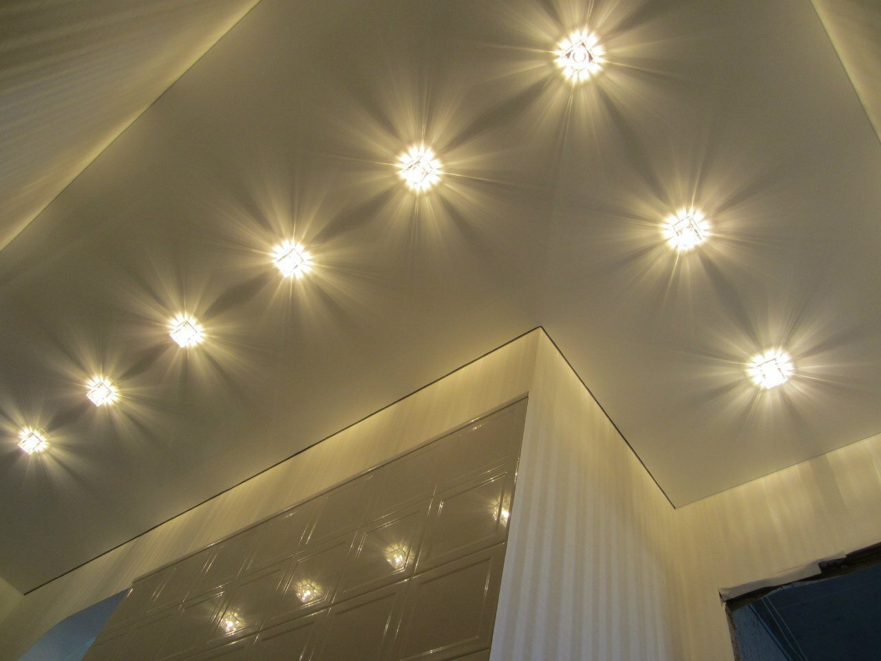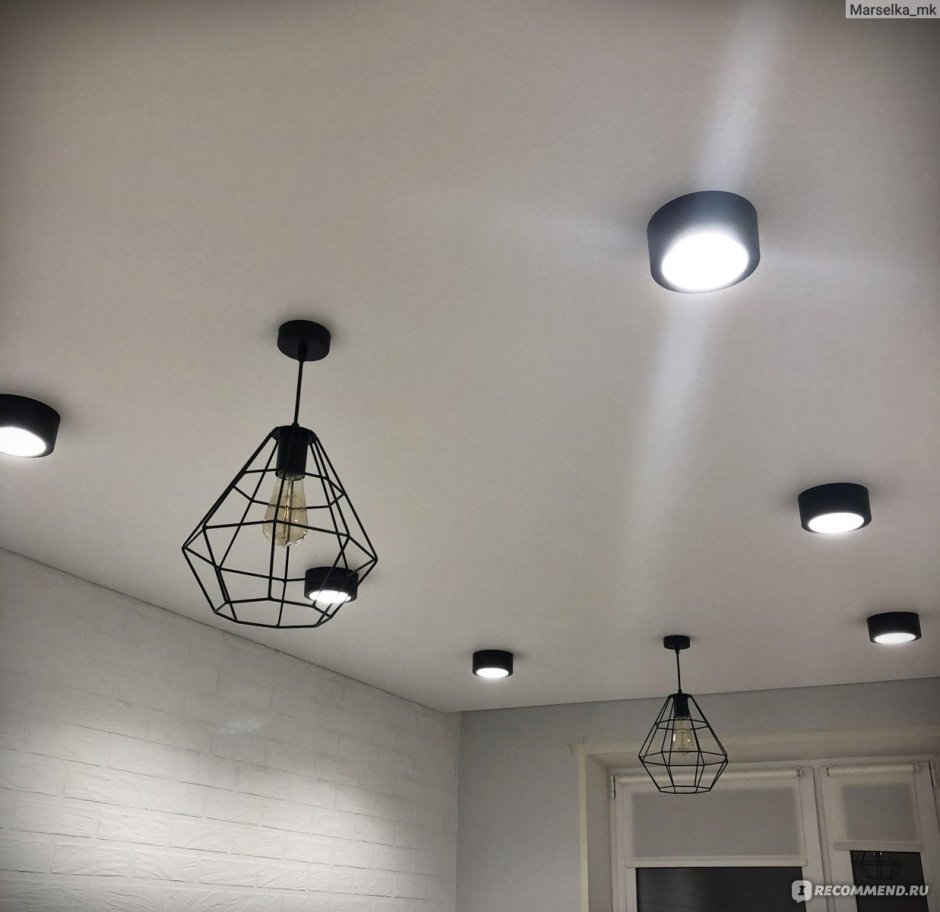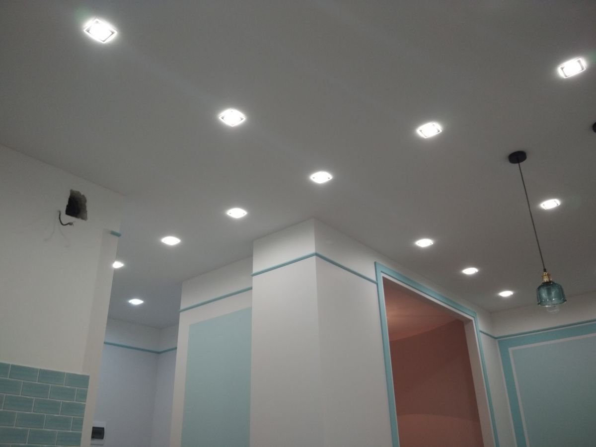 Светодиодные светильники Экола gx53 в потолке в интерьере