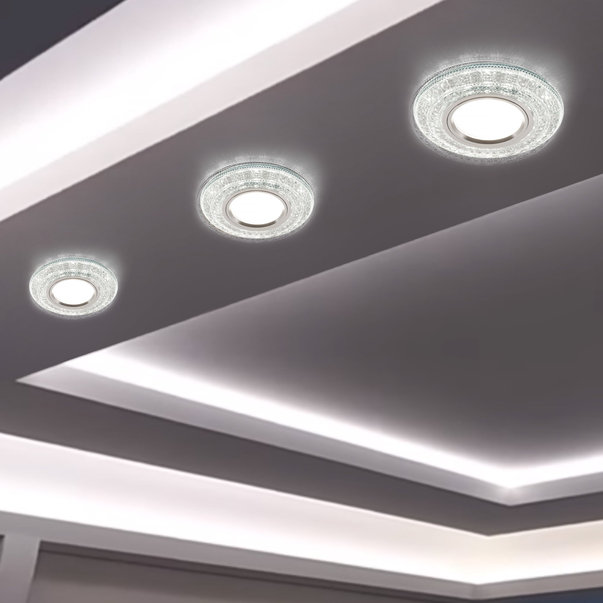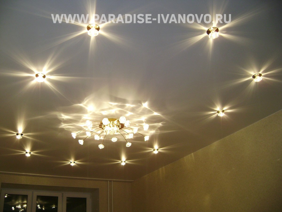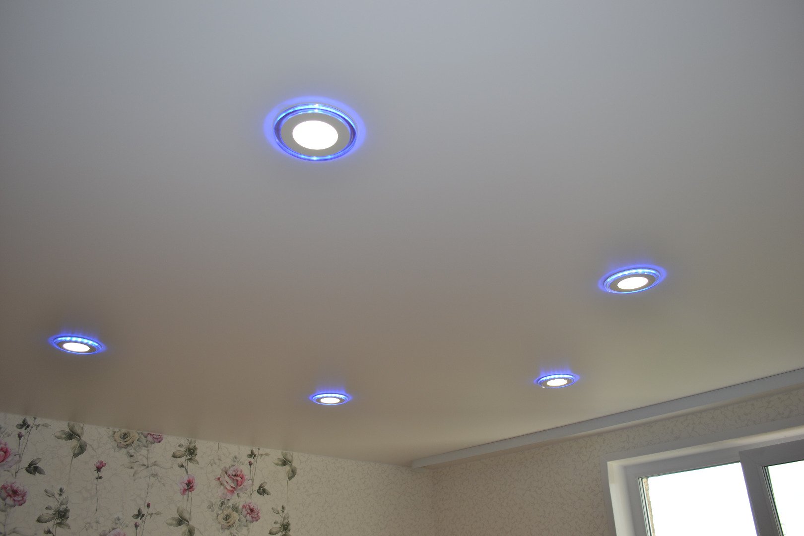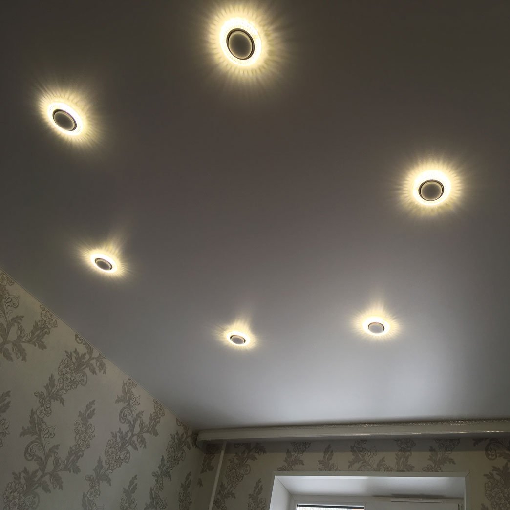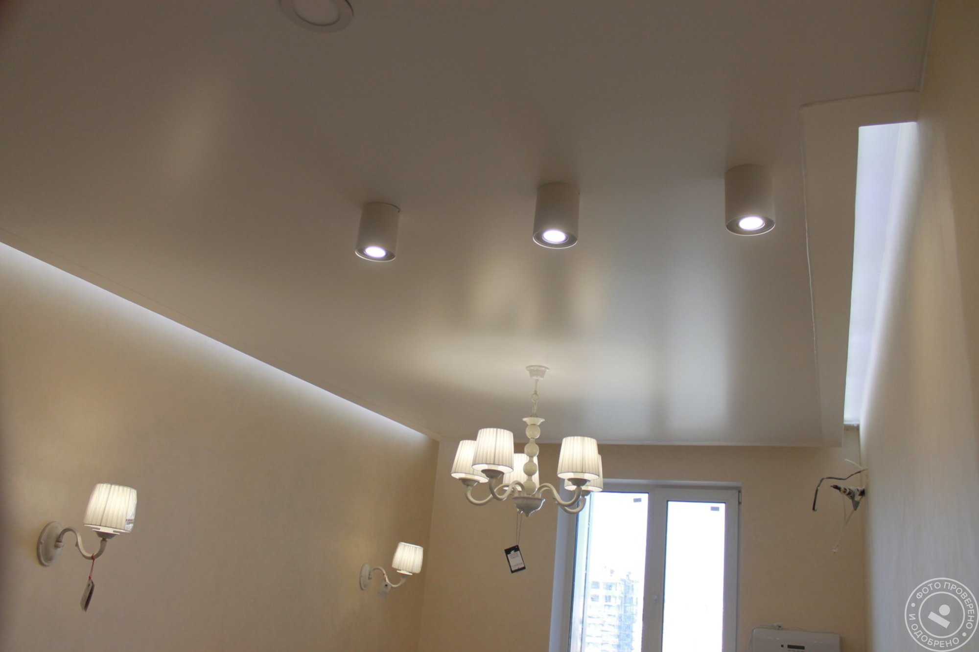 Светодиодные светильники Экола gx53 в потолке в интерьере