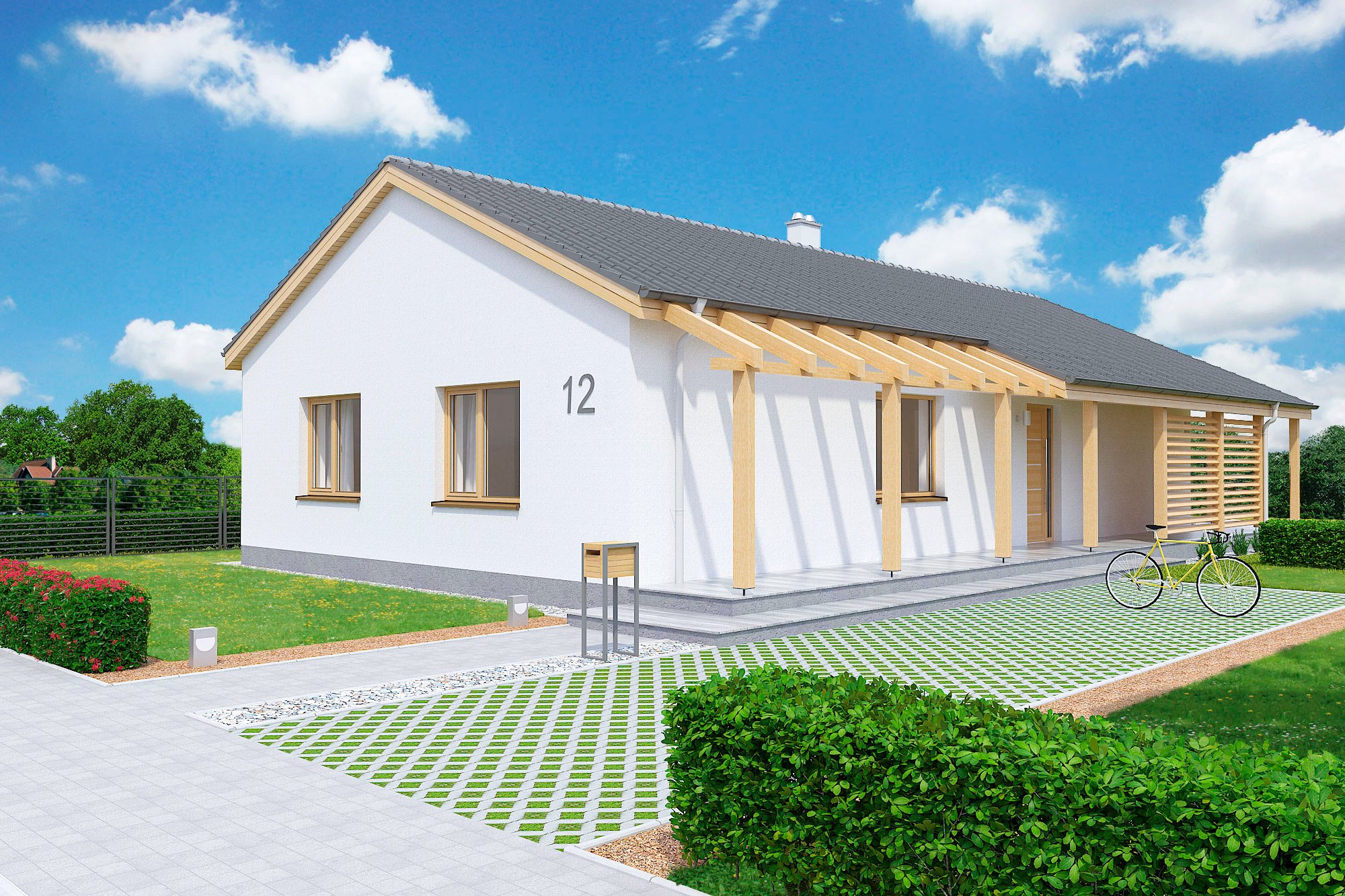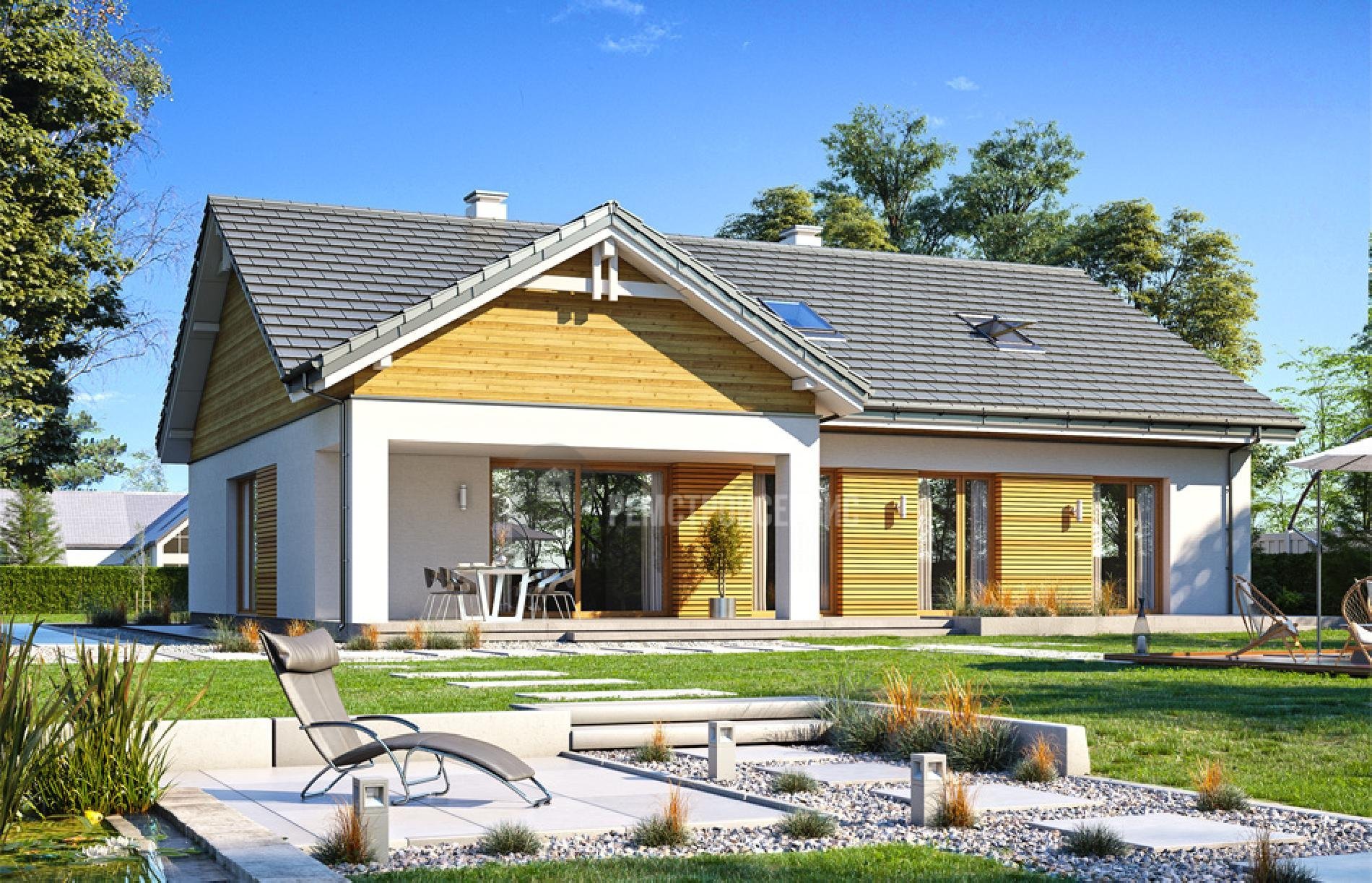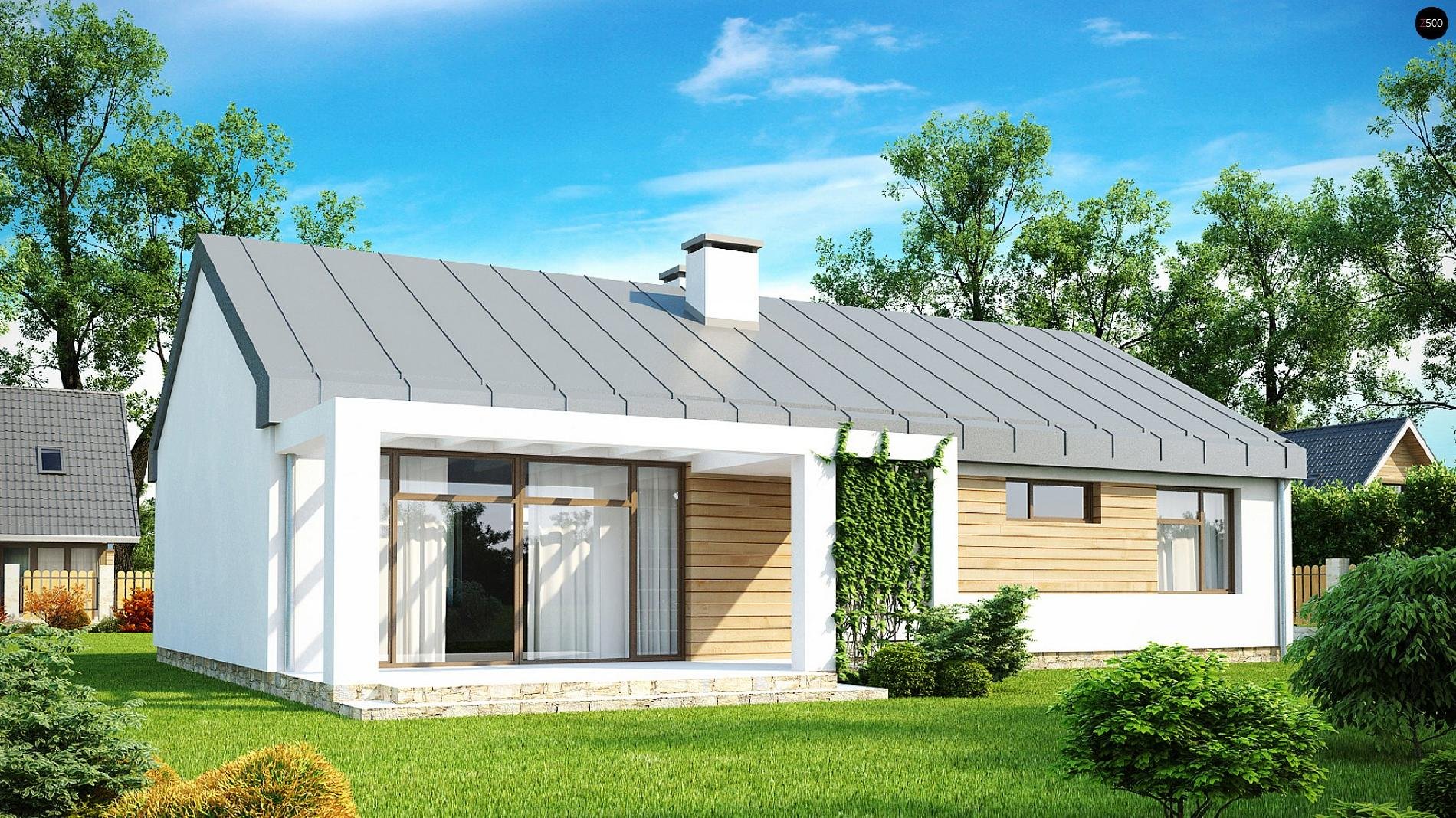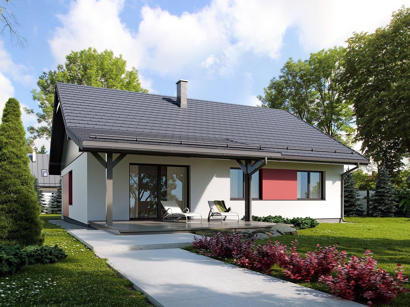 Одноэтажный дом с двухскатной крышей в современном стиле